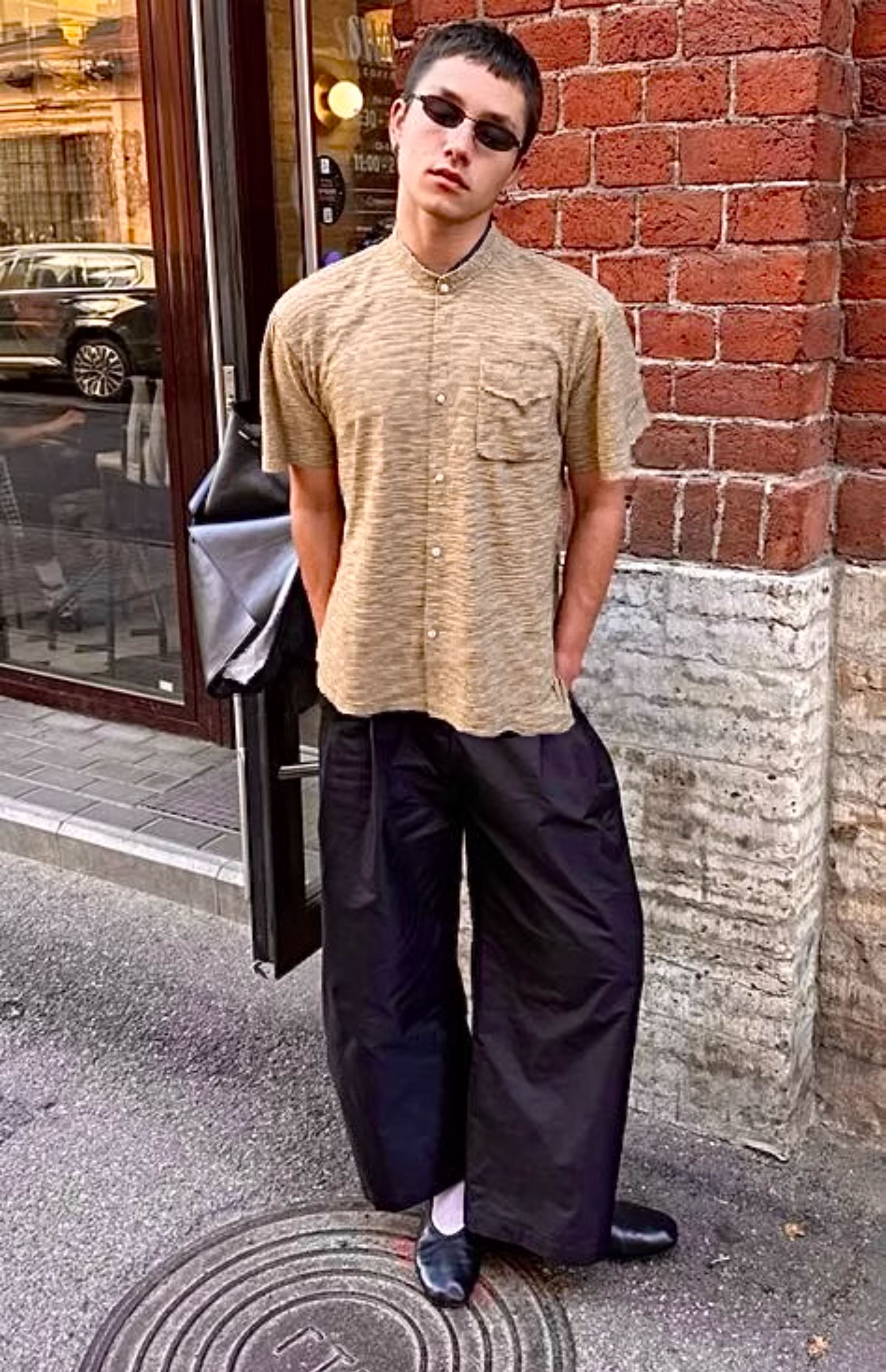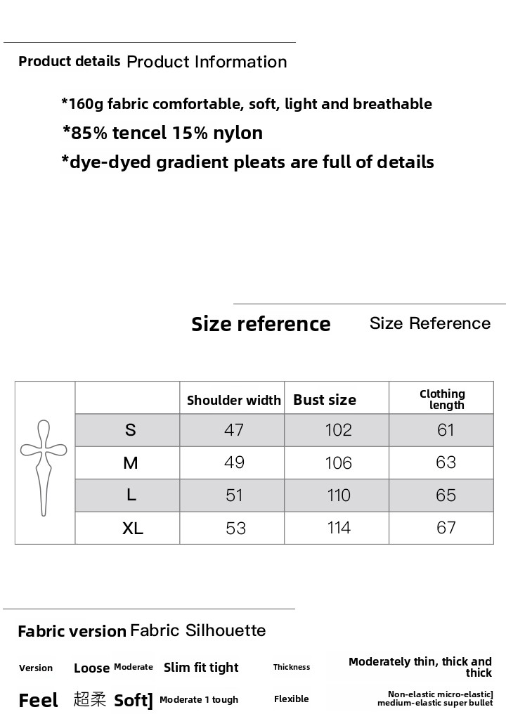 Imdelusion Tencel Retro Printing Tie-dye Gradual Change Pleated Stand-up Collar Shirt