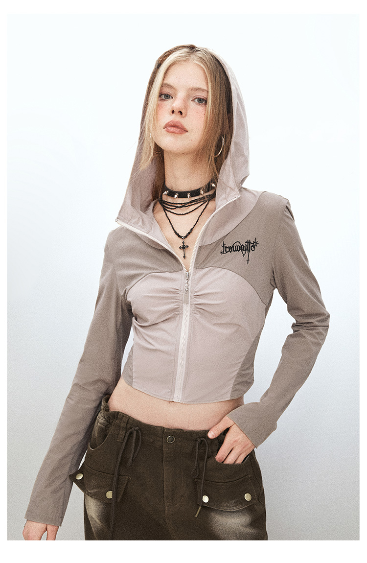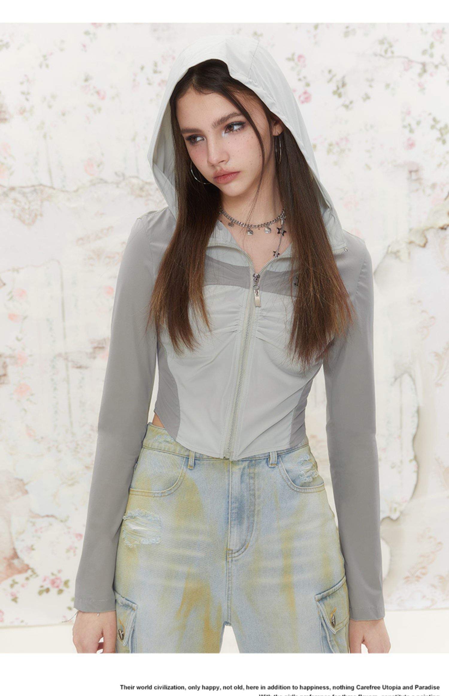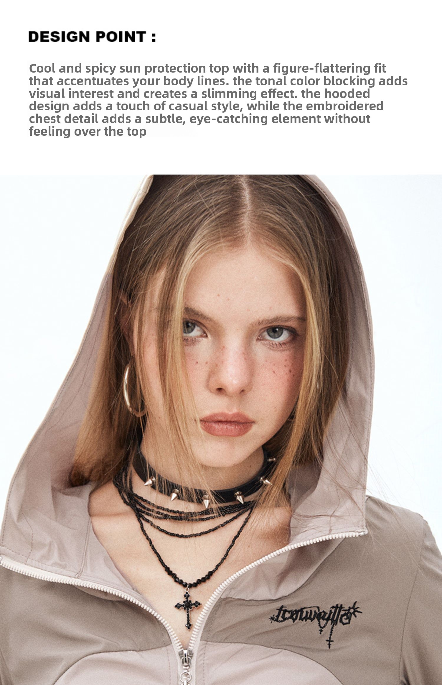 Imone Contrasting Color Splicing Hooded Sunscreen Shirt