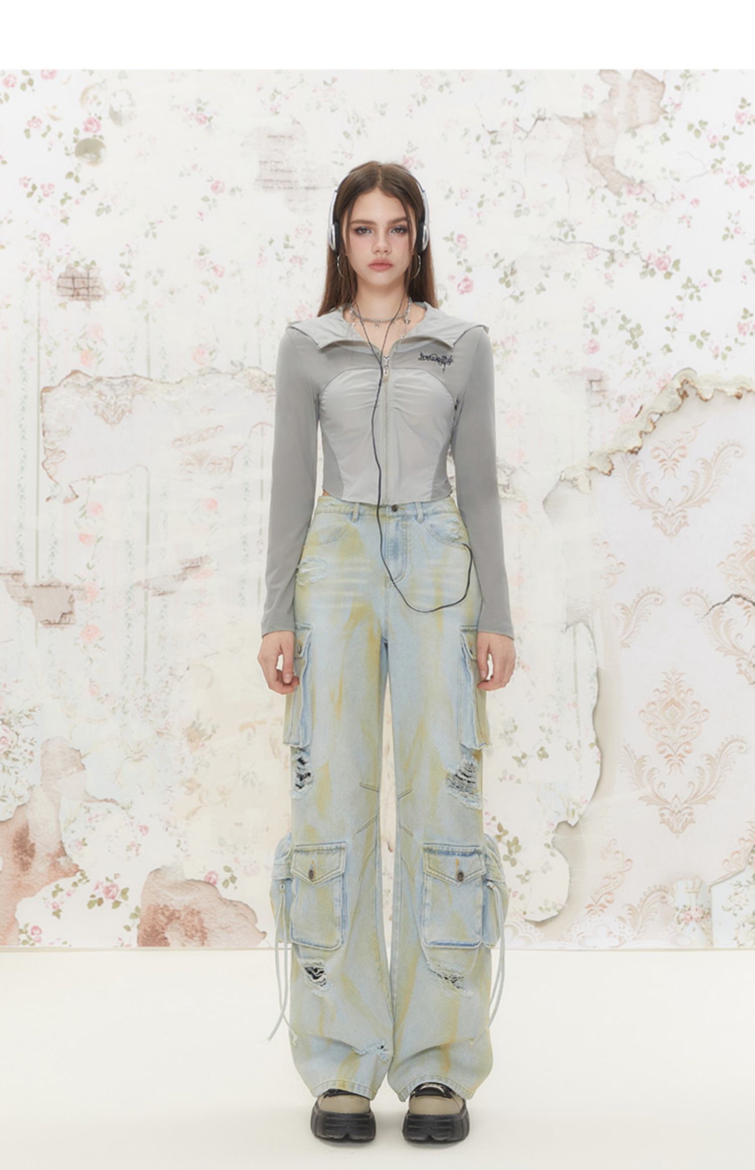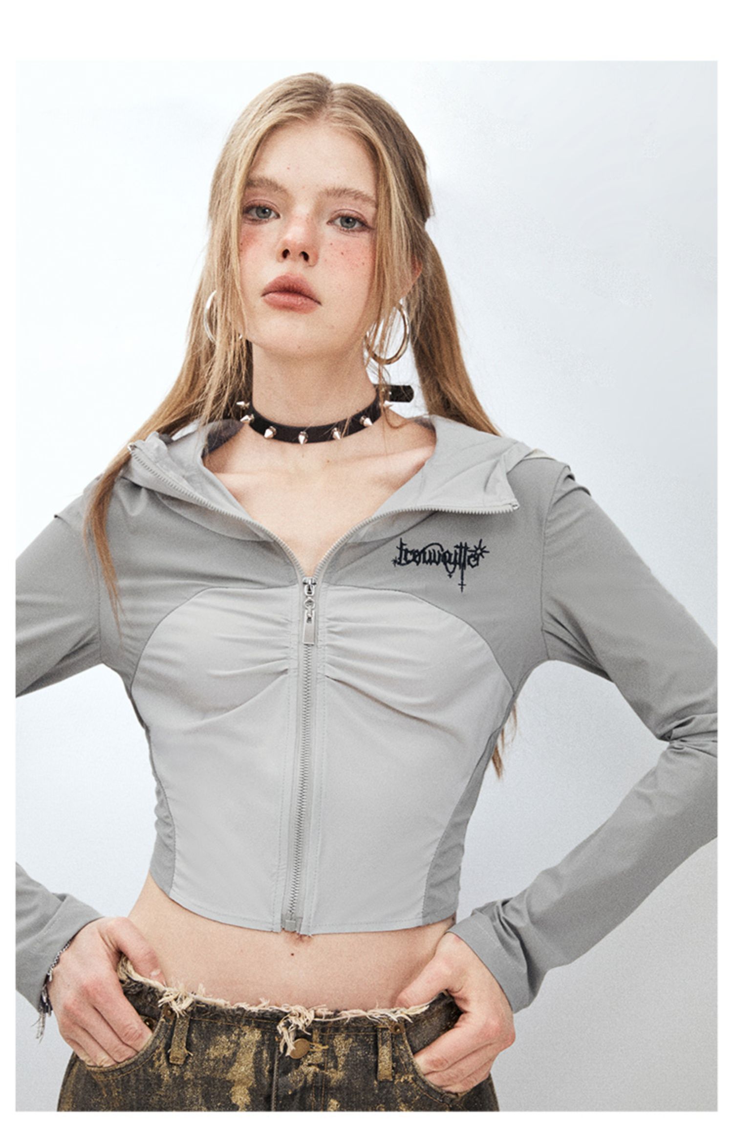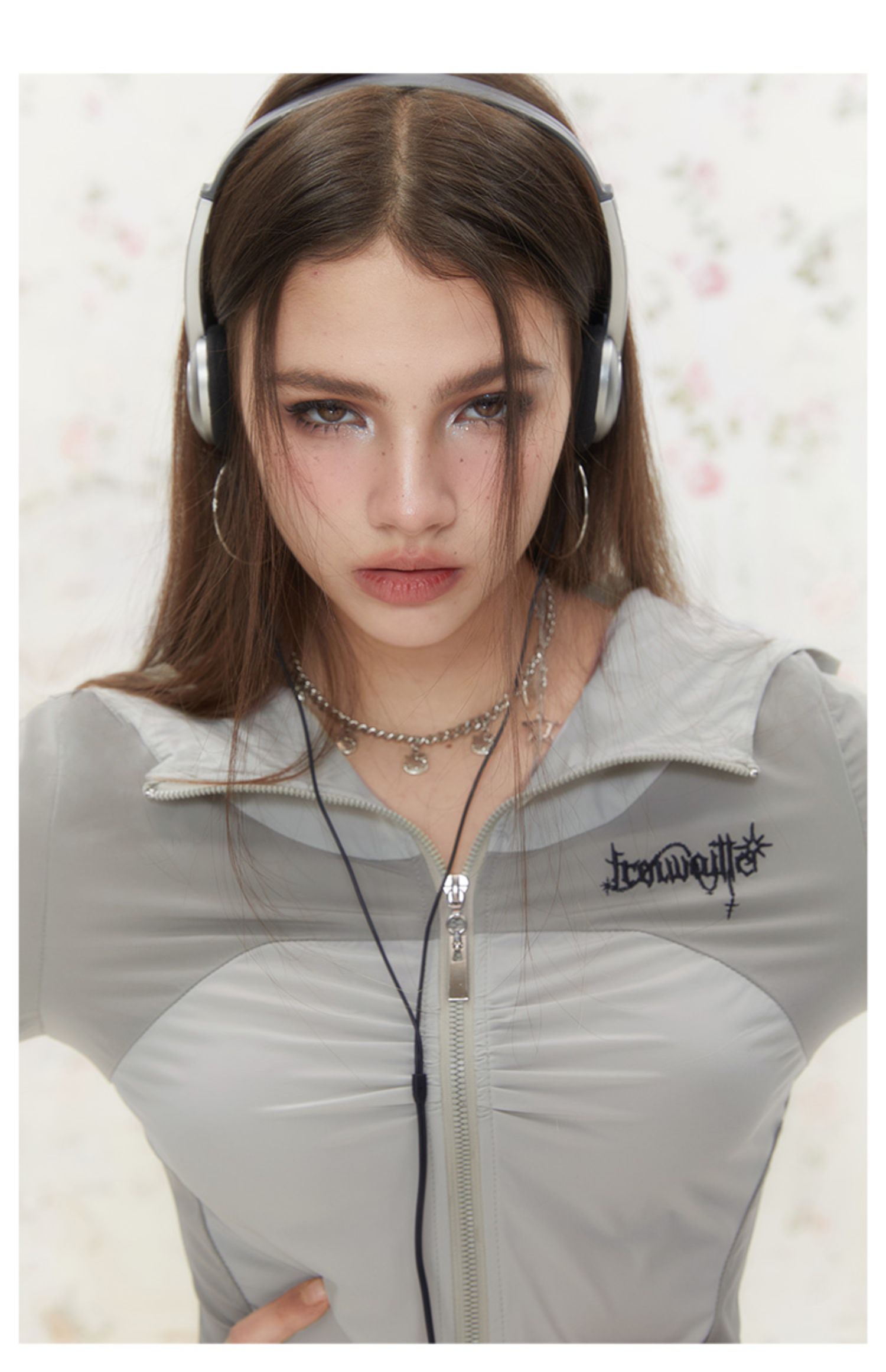 Imone Contrasting Color Splicing Hooded Sunscreen Shirt