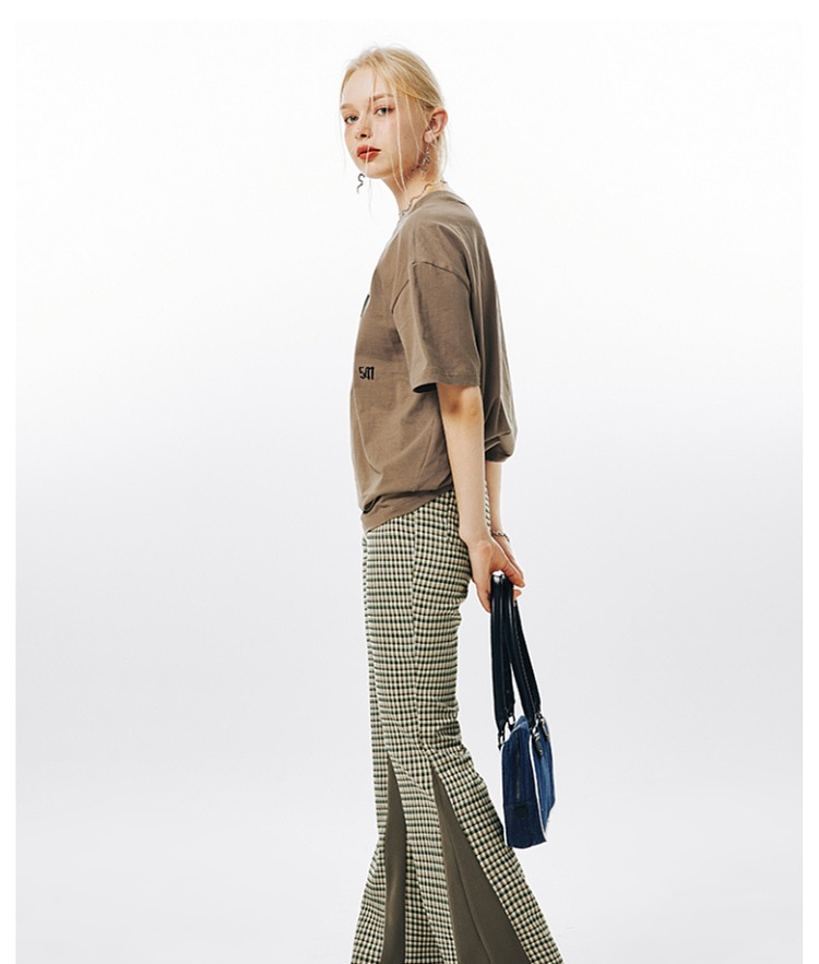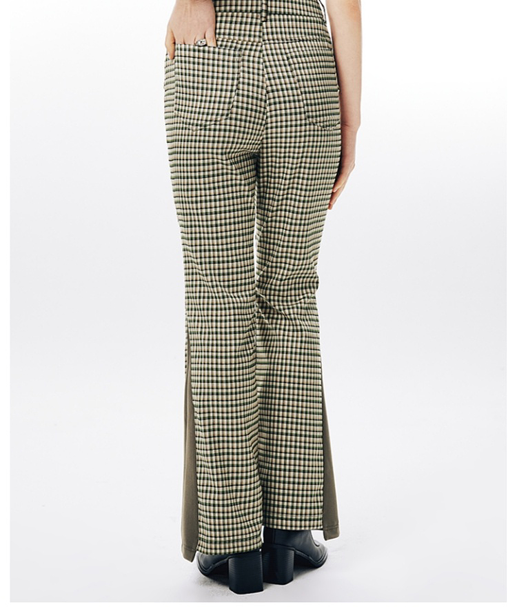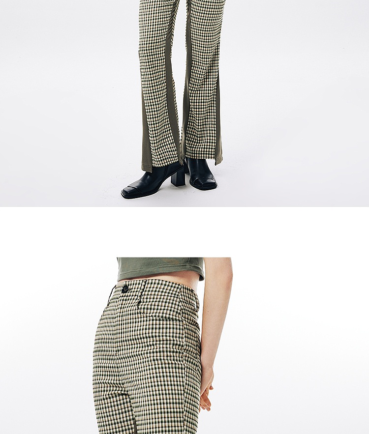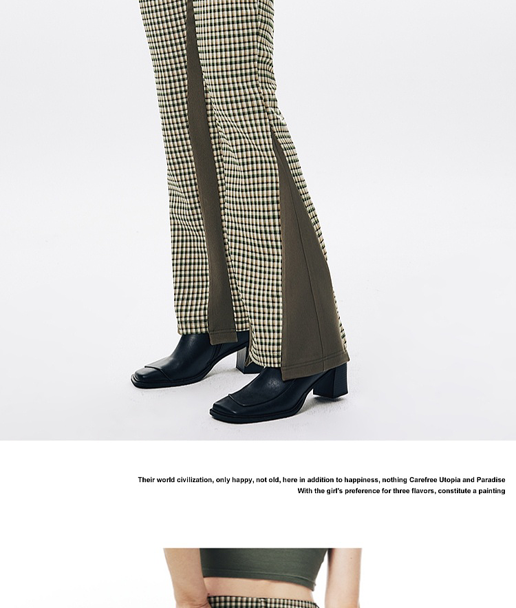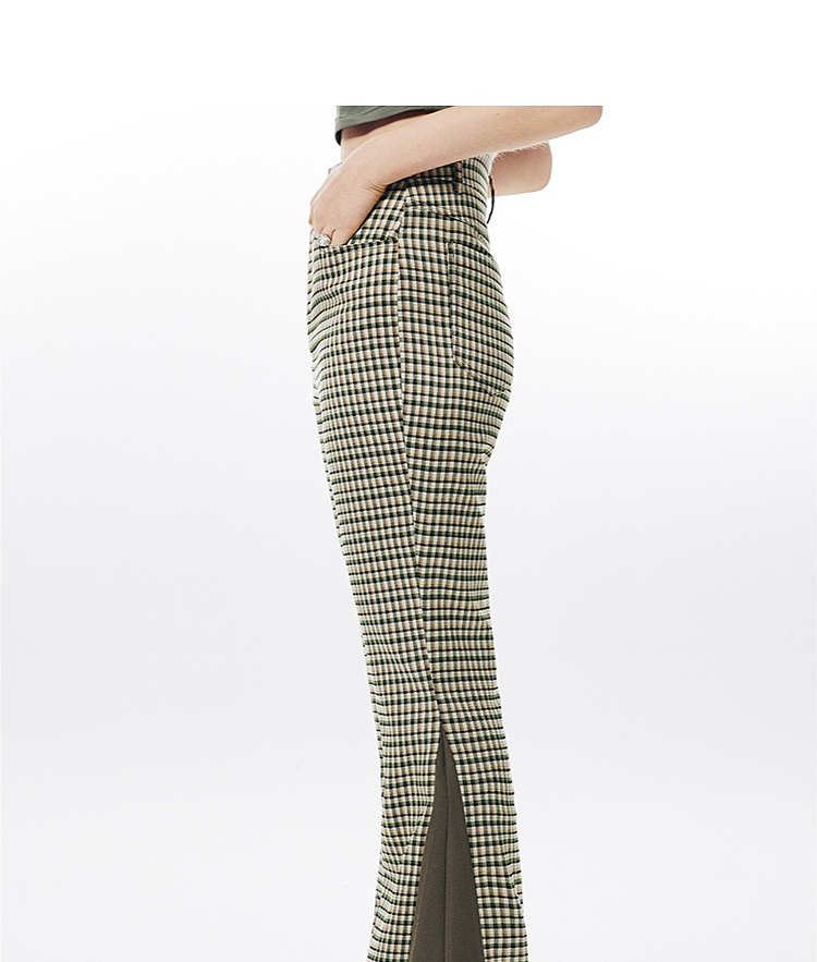 Imone Retro Slim Plaid Splicing High-waisted Flared Pants