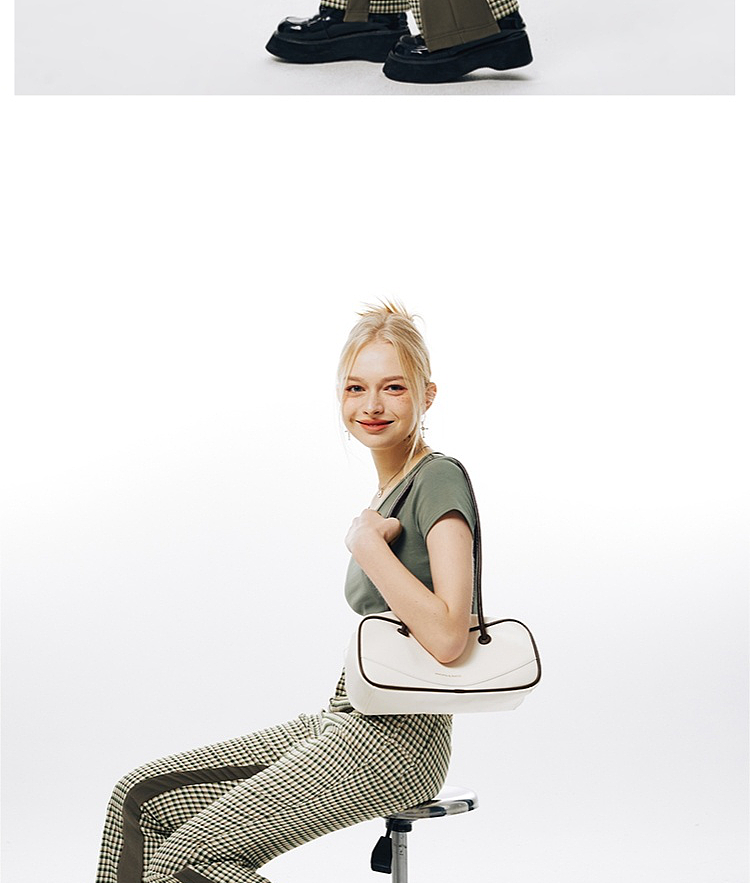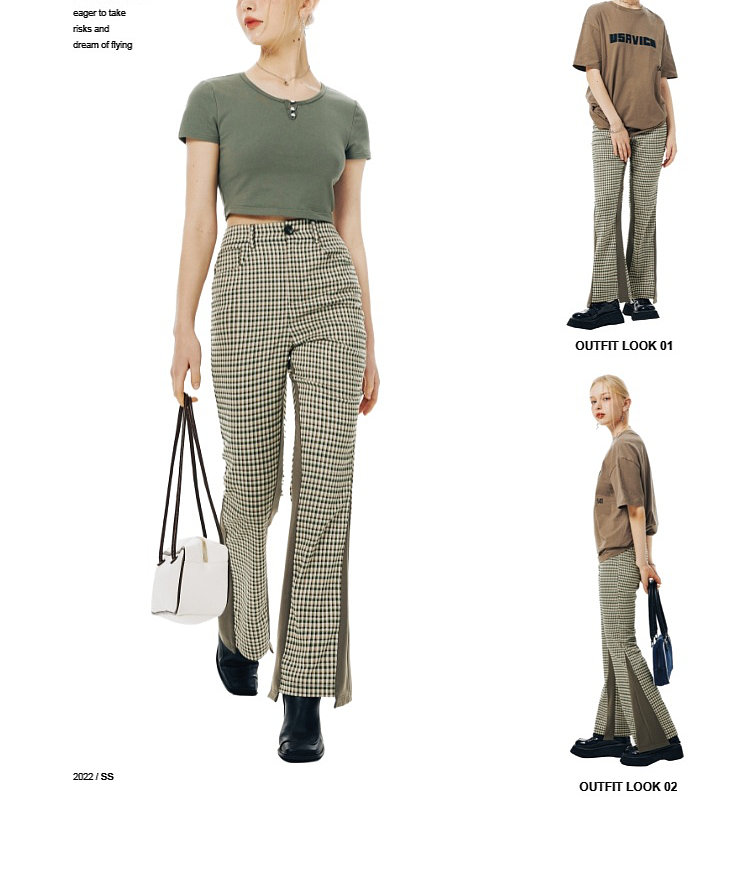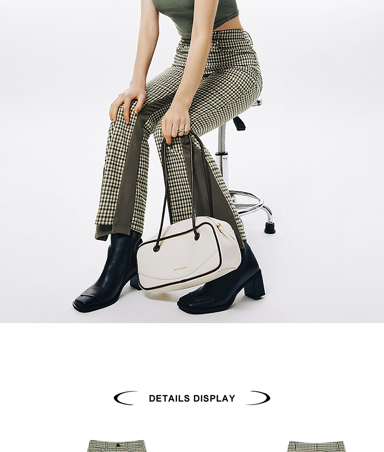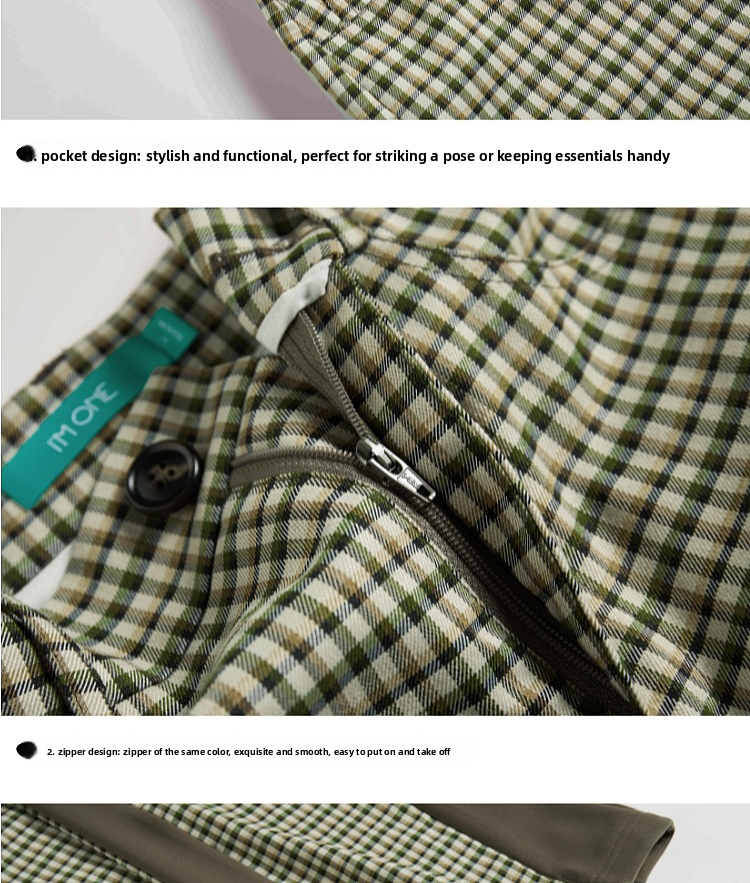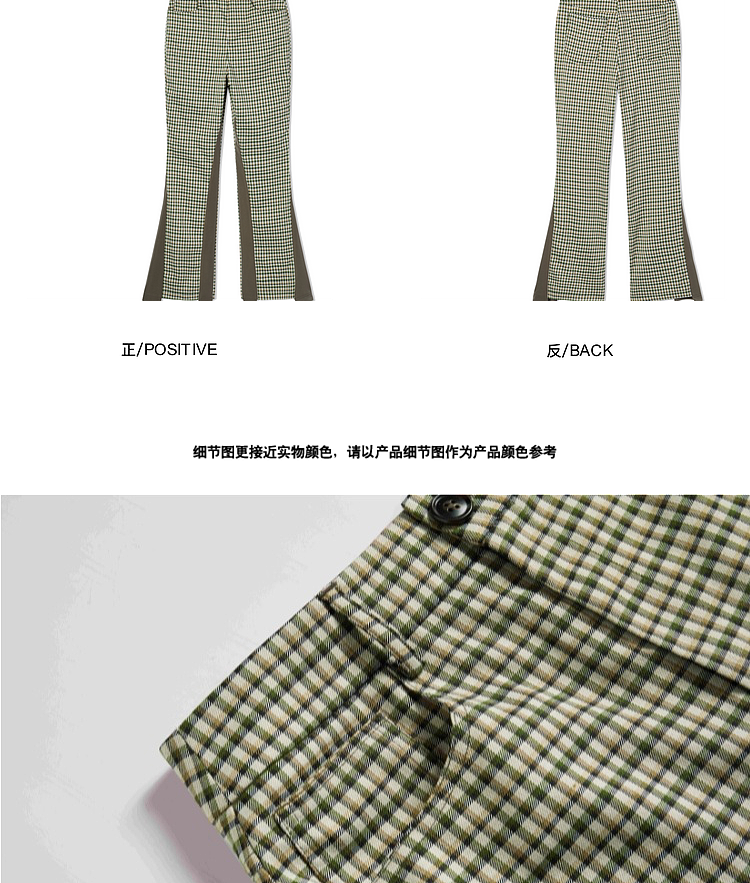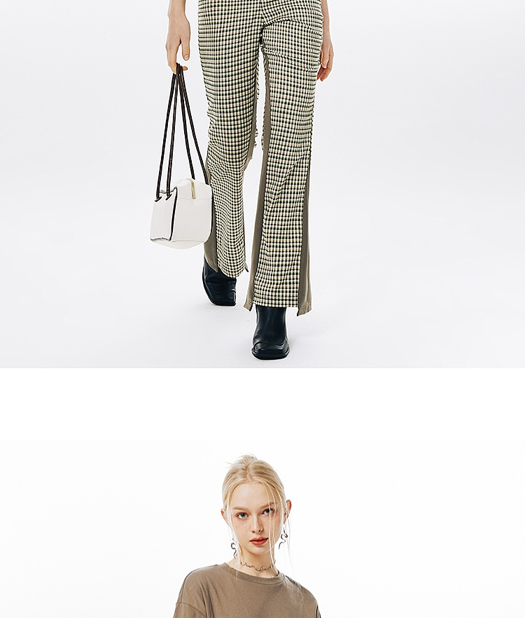 Imone Retro Slim Plaid Splicing High-waisted Flared Pants