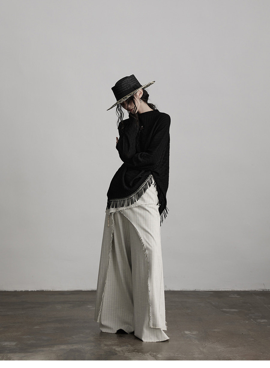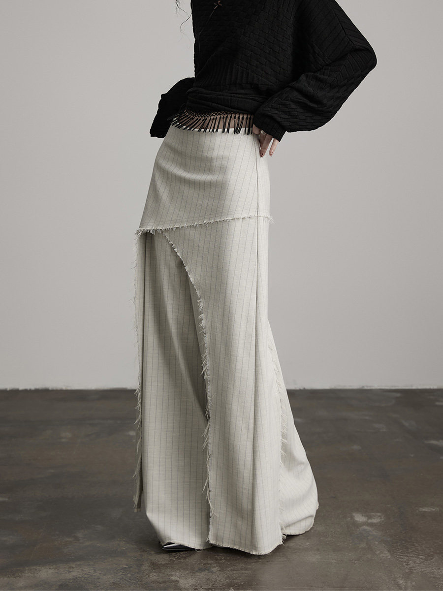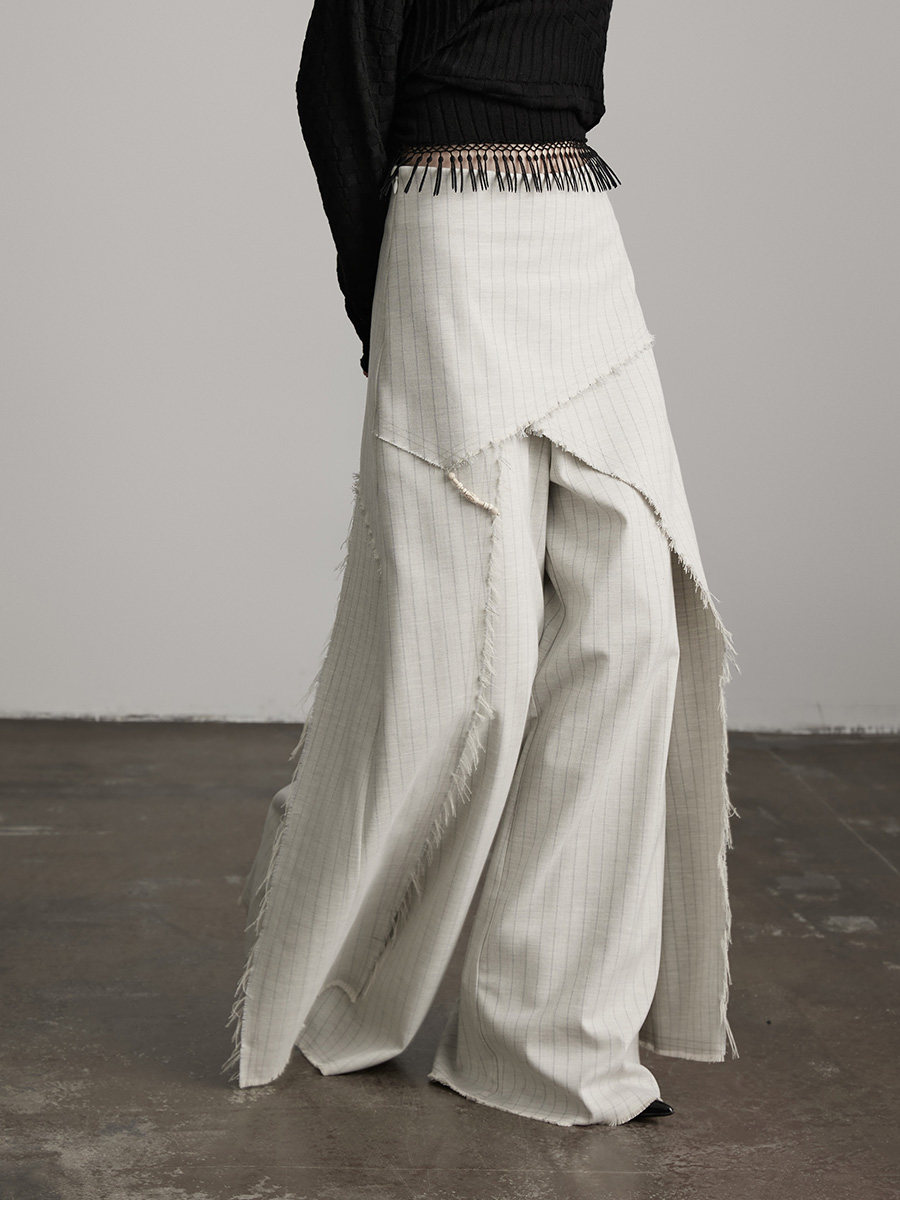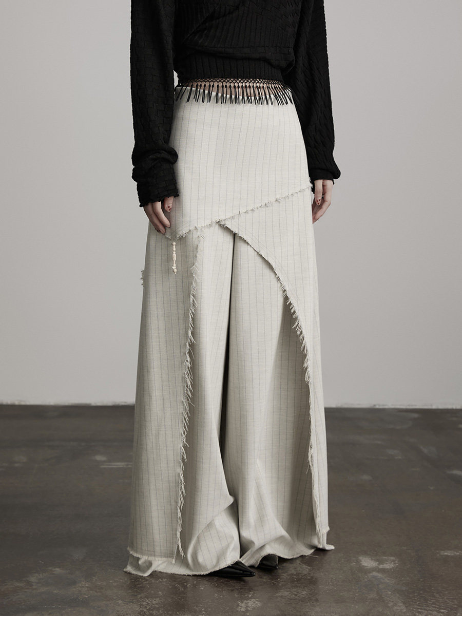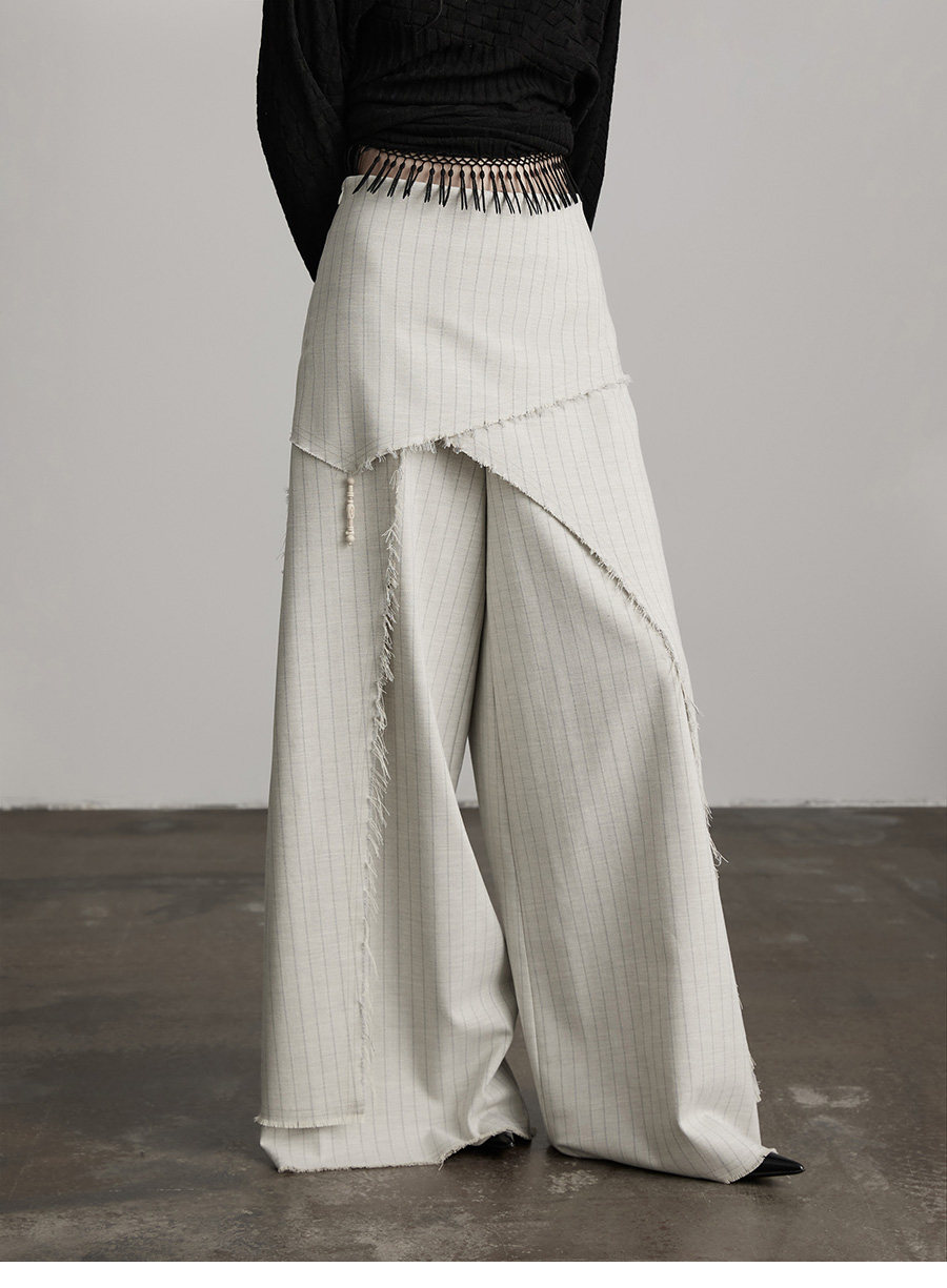 INDULGE Irregular Striped Scimitar Wide-leg Slacks