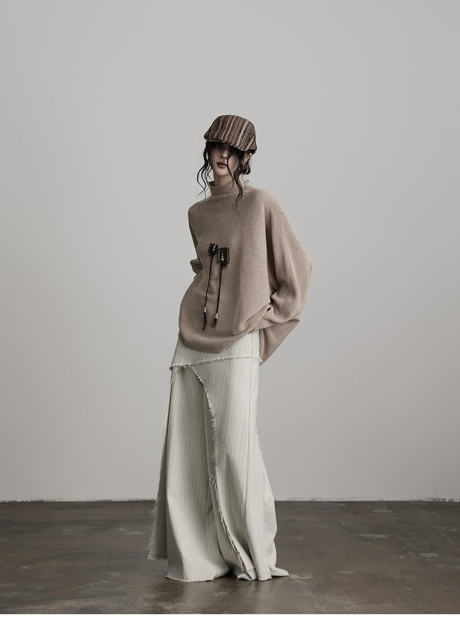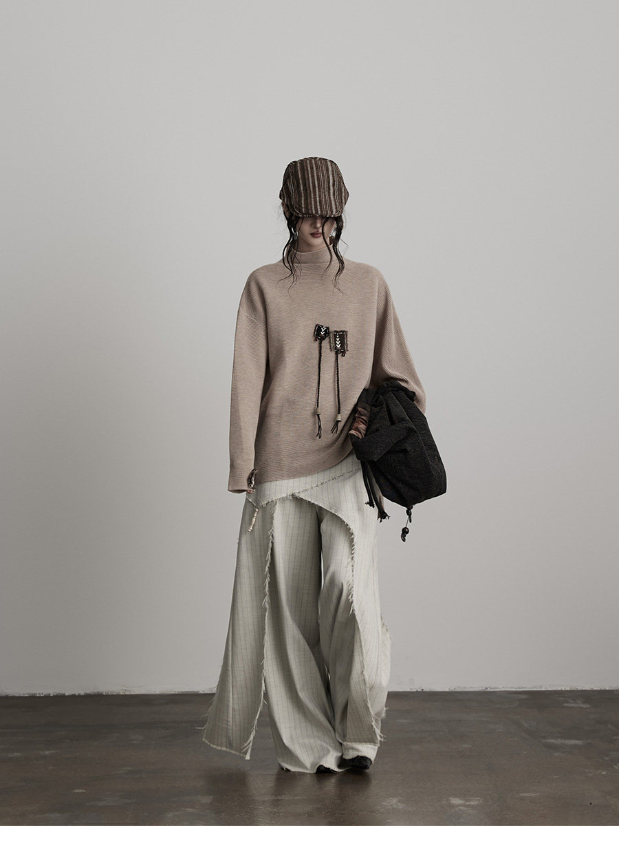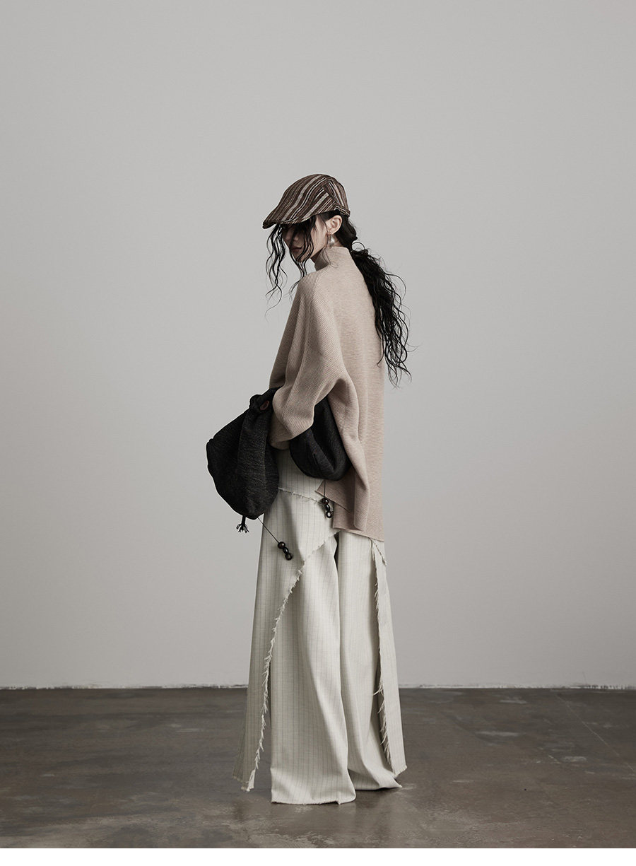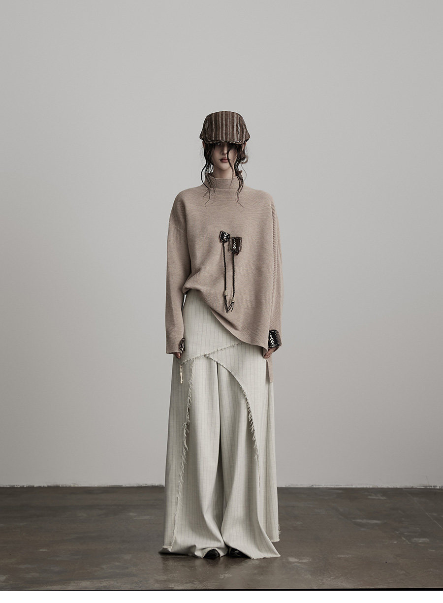 INDULGE Irregular Striped Scimitar Wide-leg Slacks