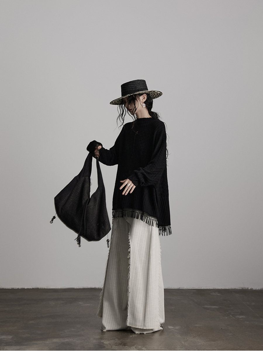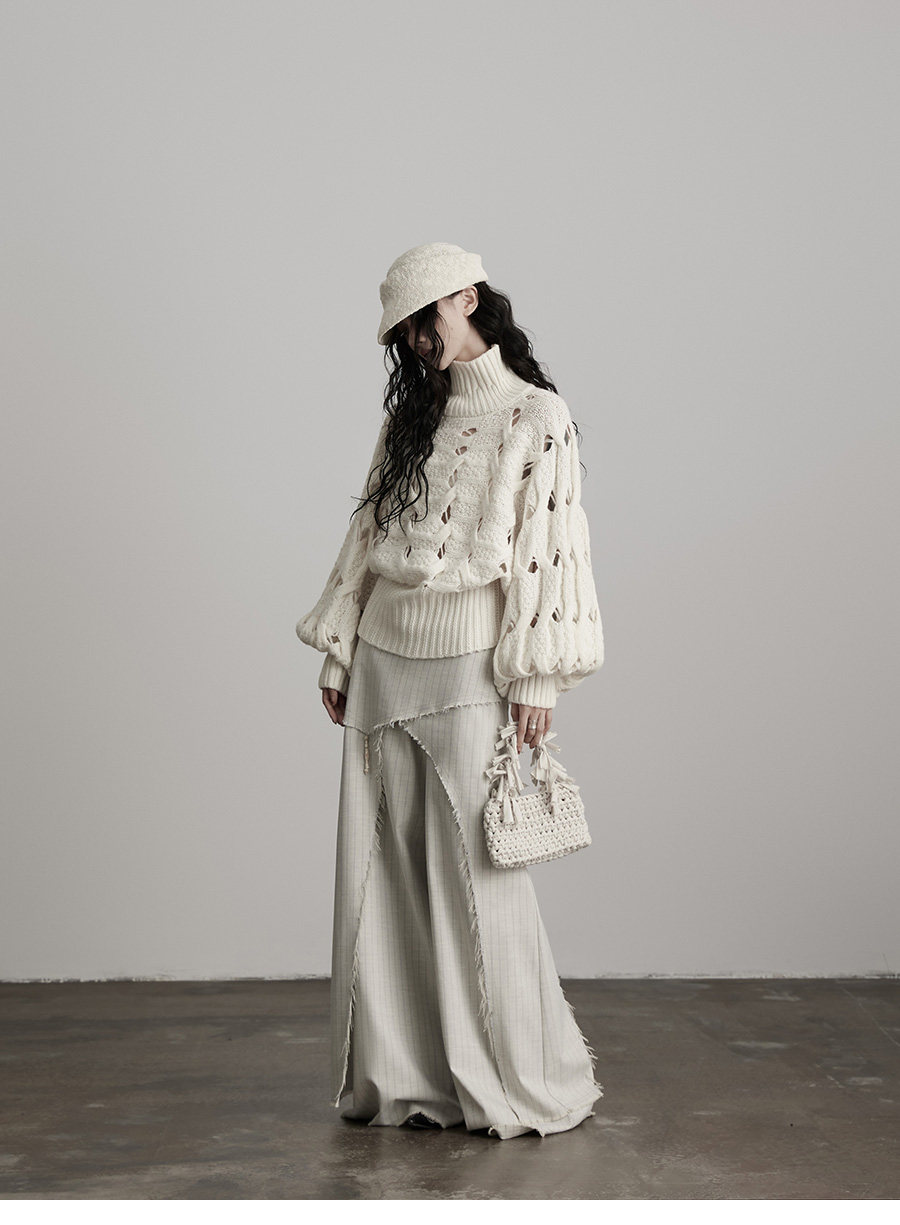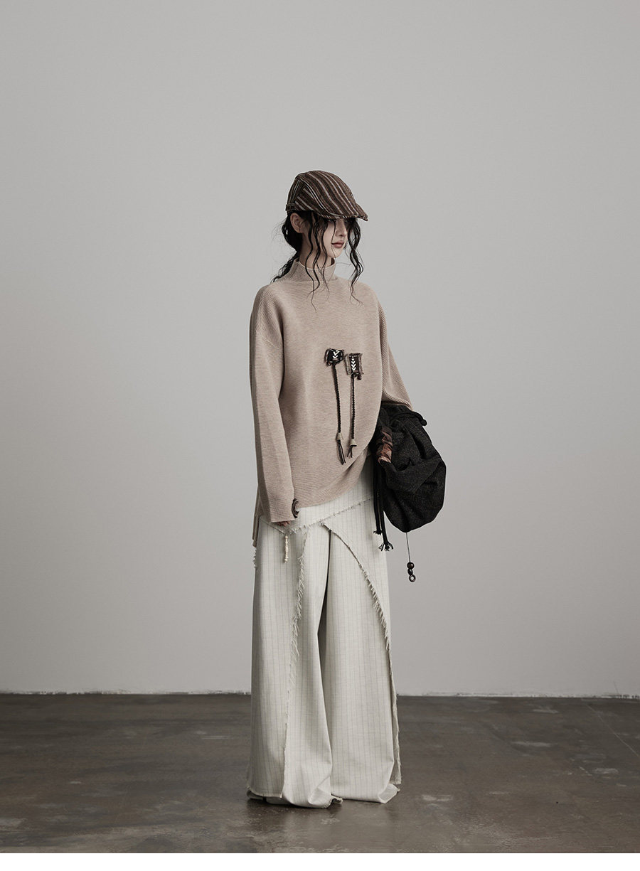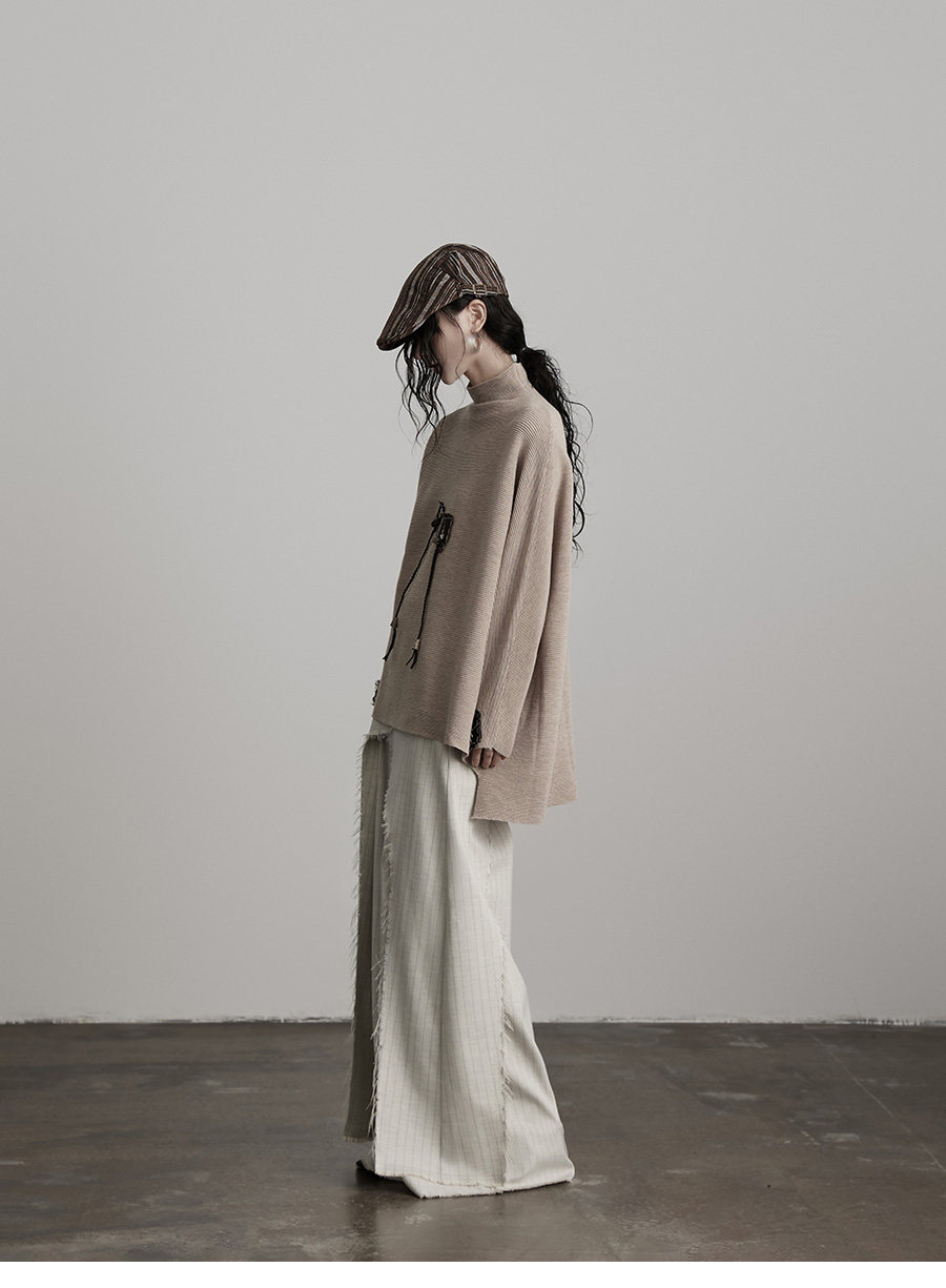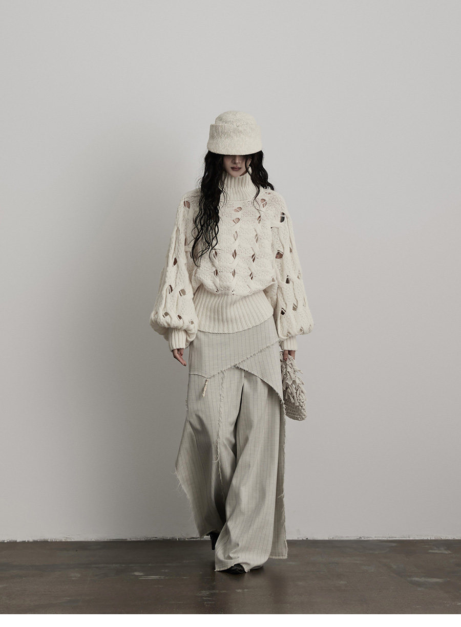 INDULGE Irregular Striped Scimitar Wide-leg Slacks