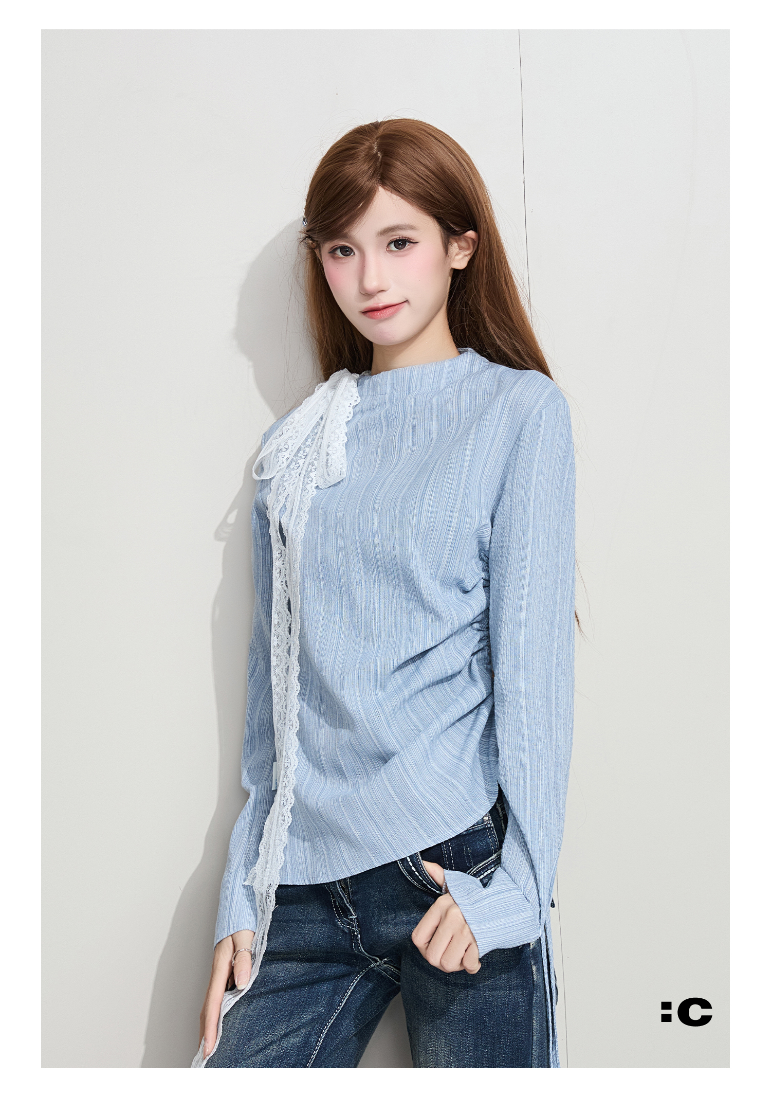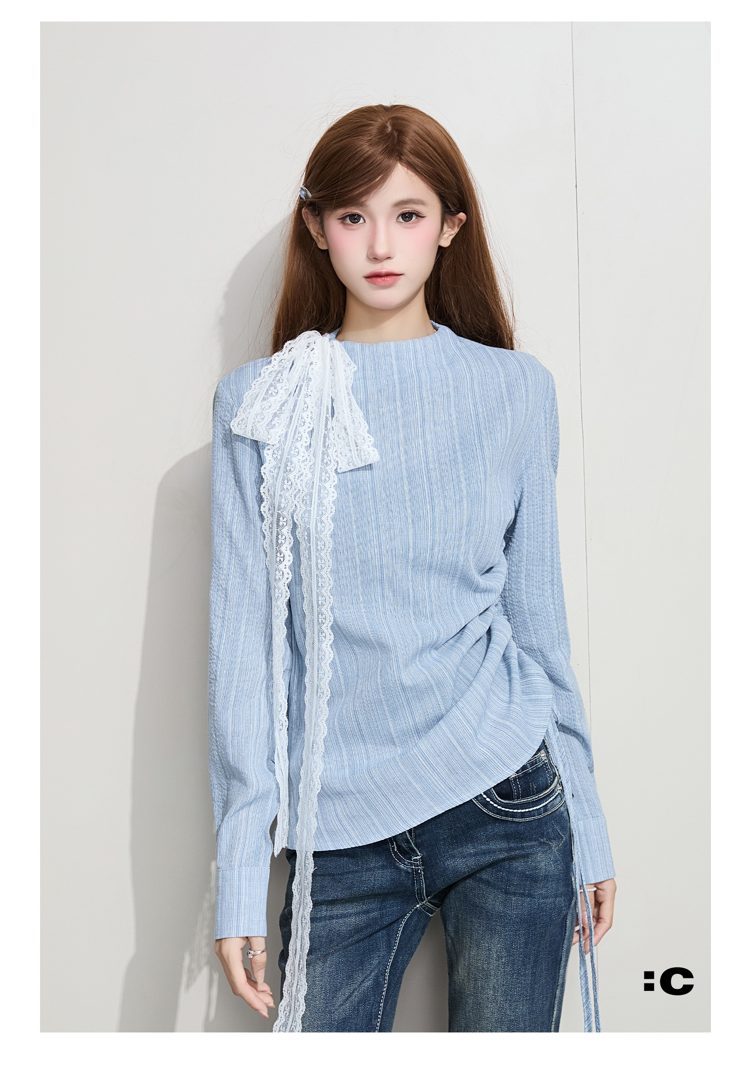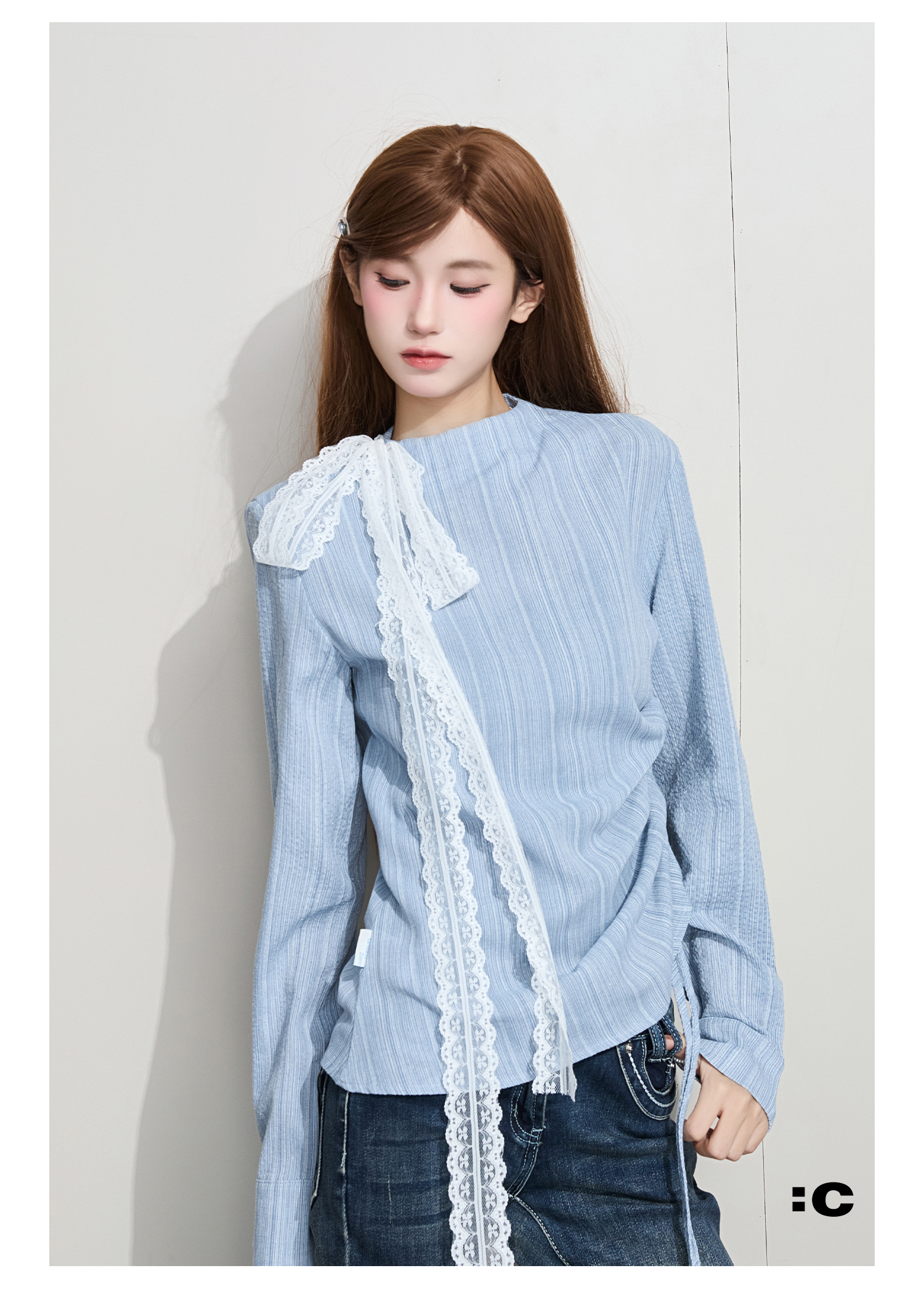 IT: GROUNDZERO Silk Scarf Foreign Style Casual Long Sleeve