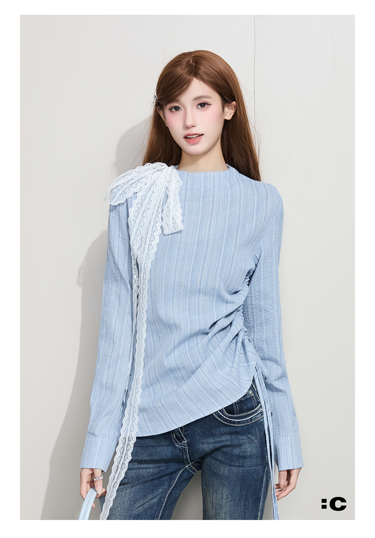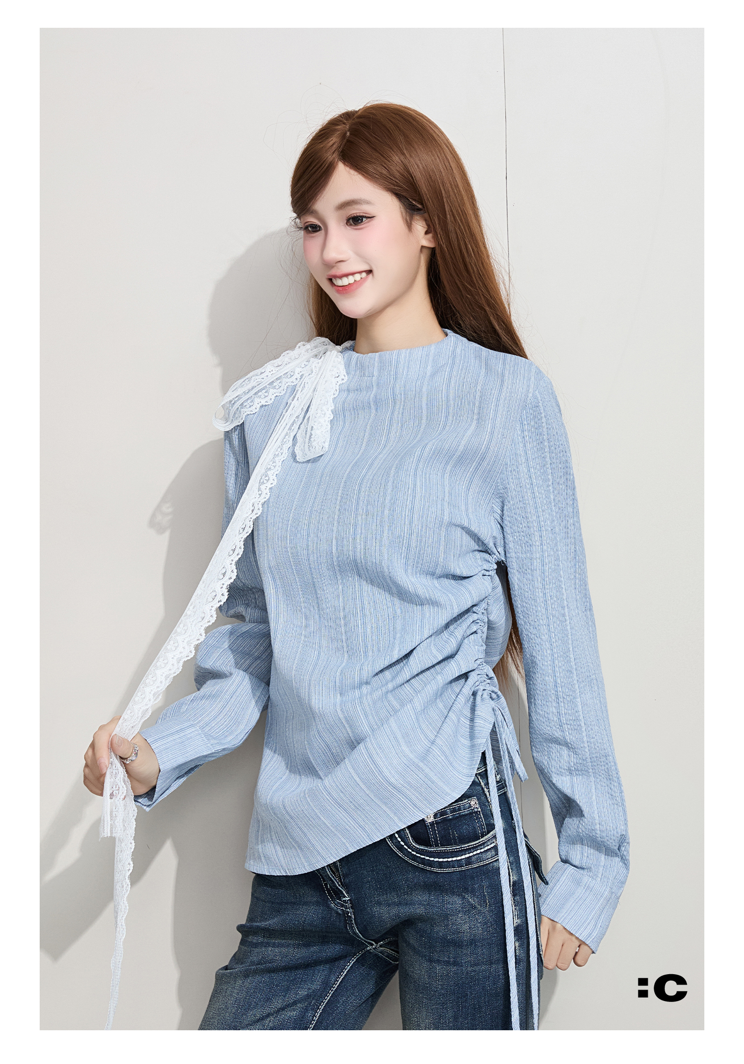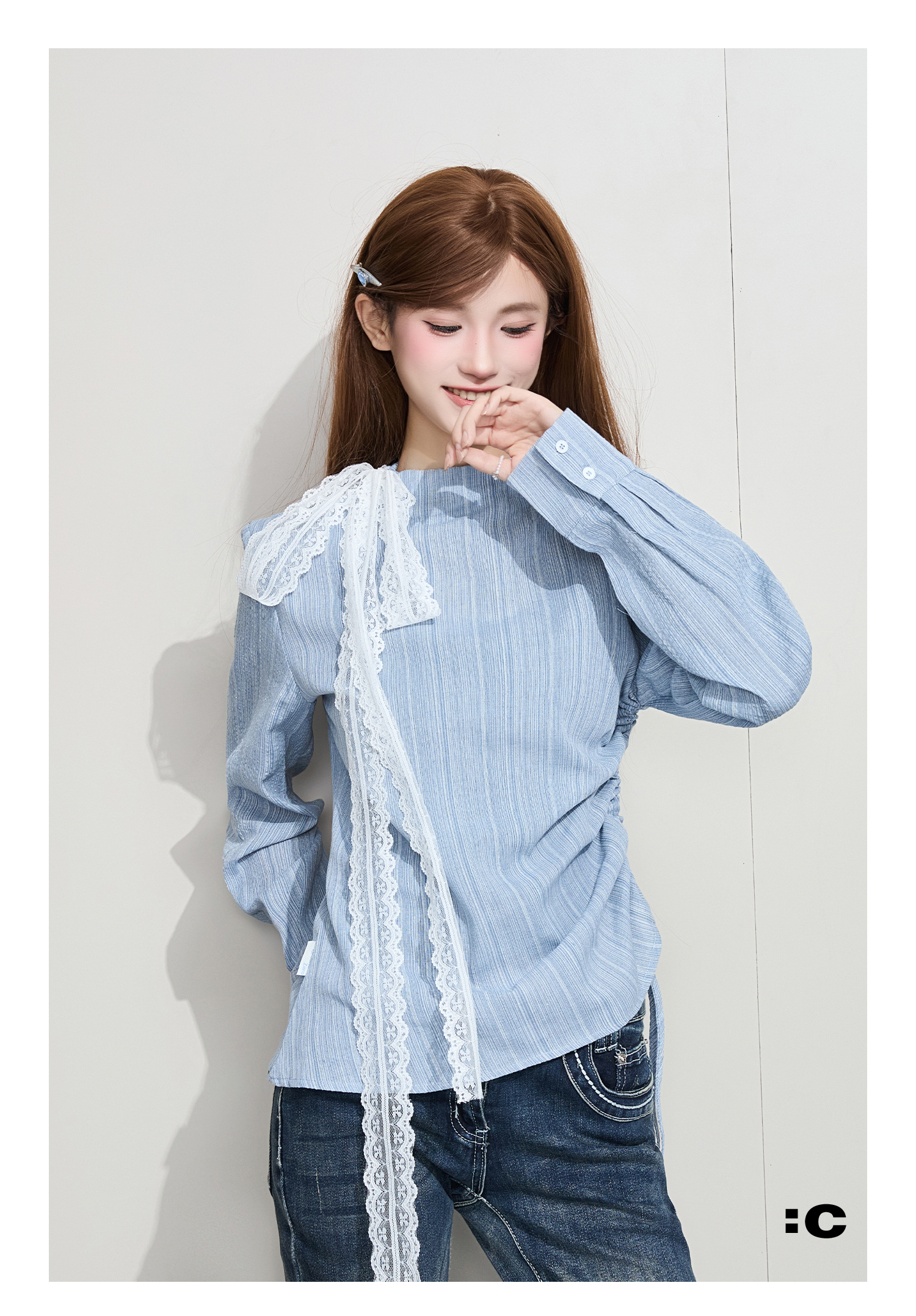 IT: GROUNDZERO Silk Scarf Foreign Style Casual Long Sleeve