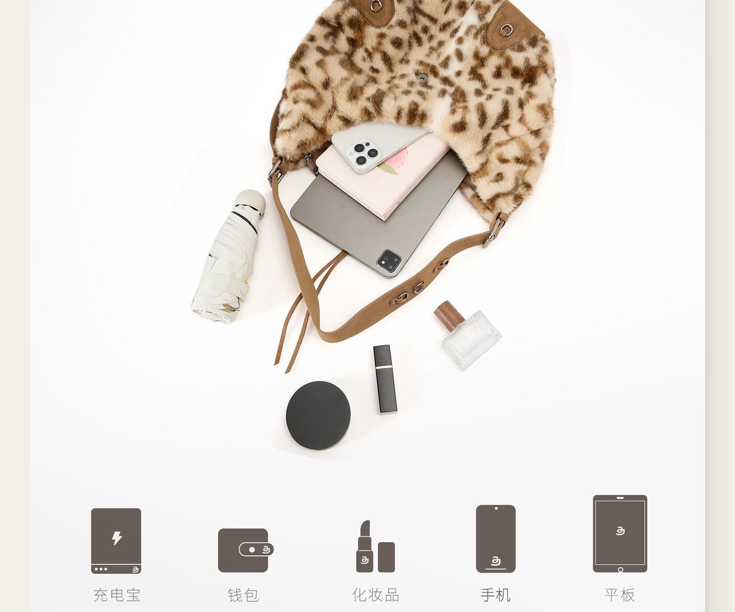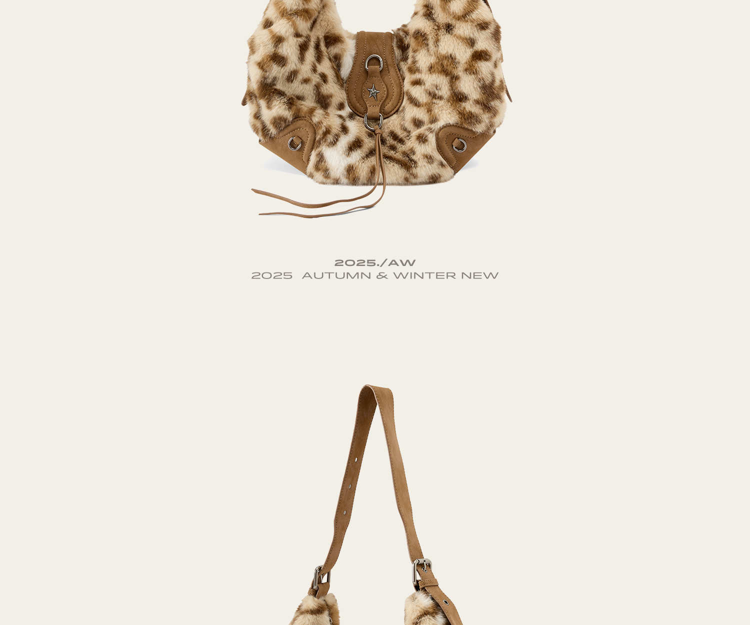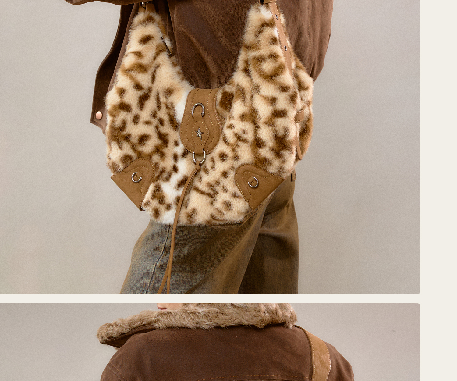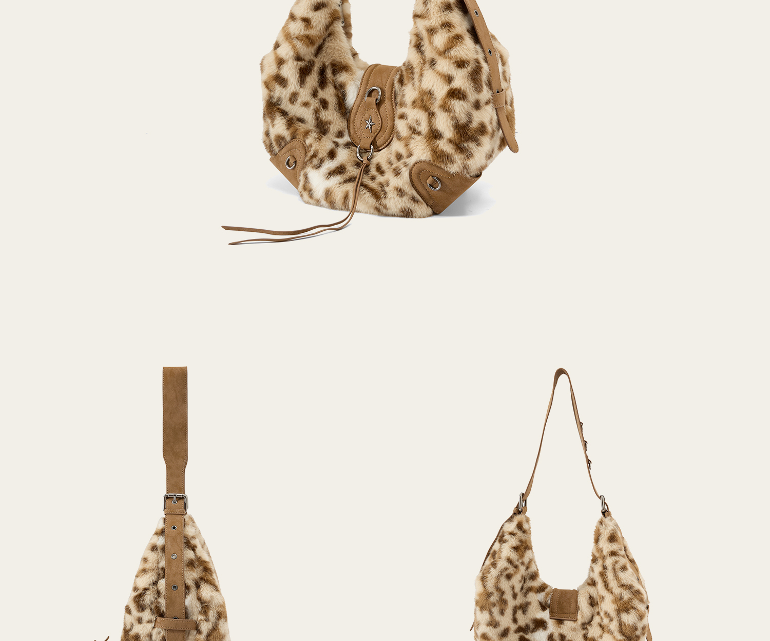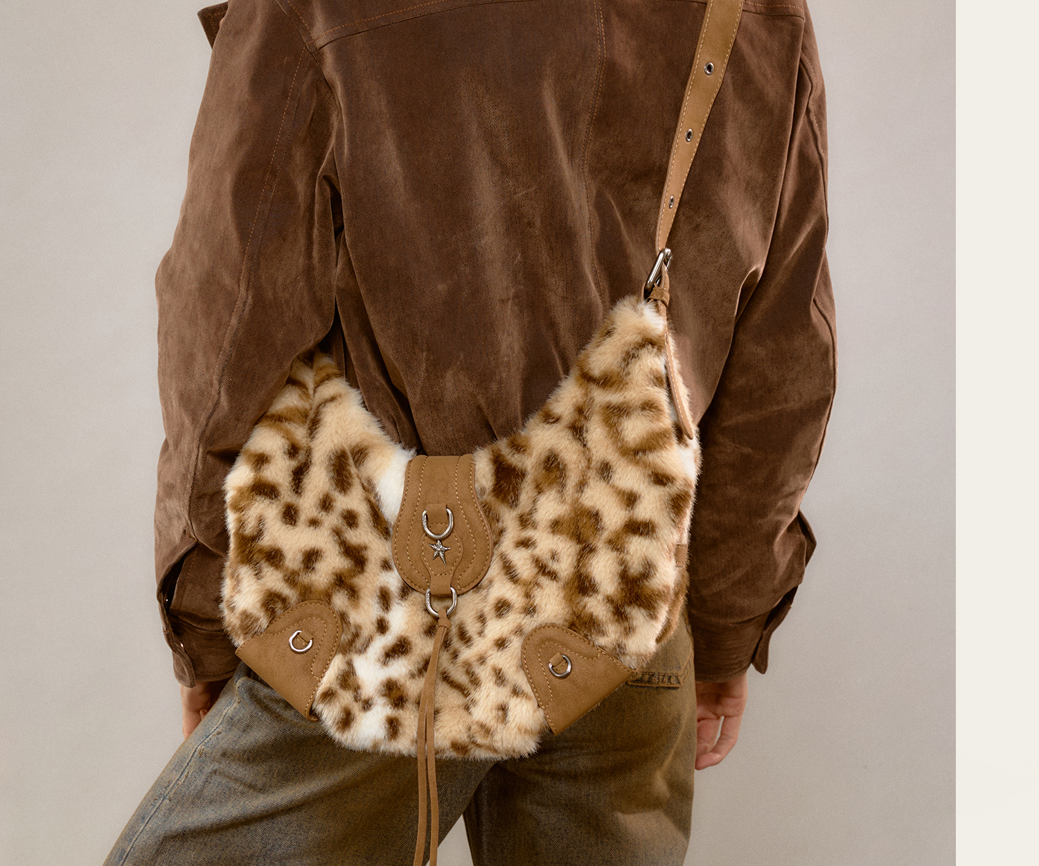 JACD Leopard Print Plush Shoulder Messenger Bag