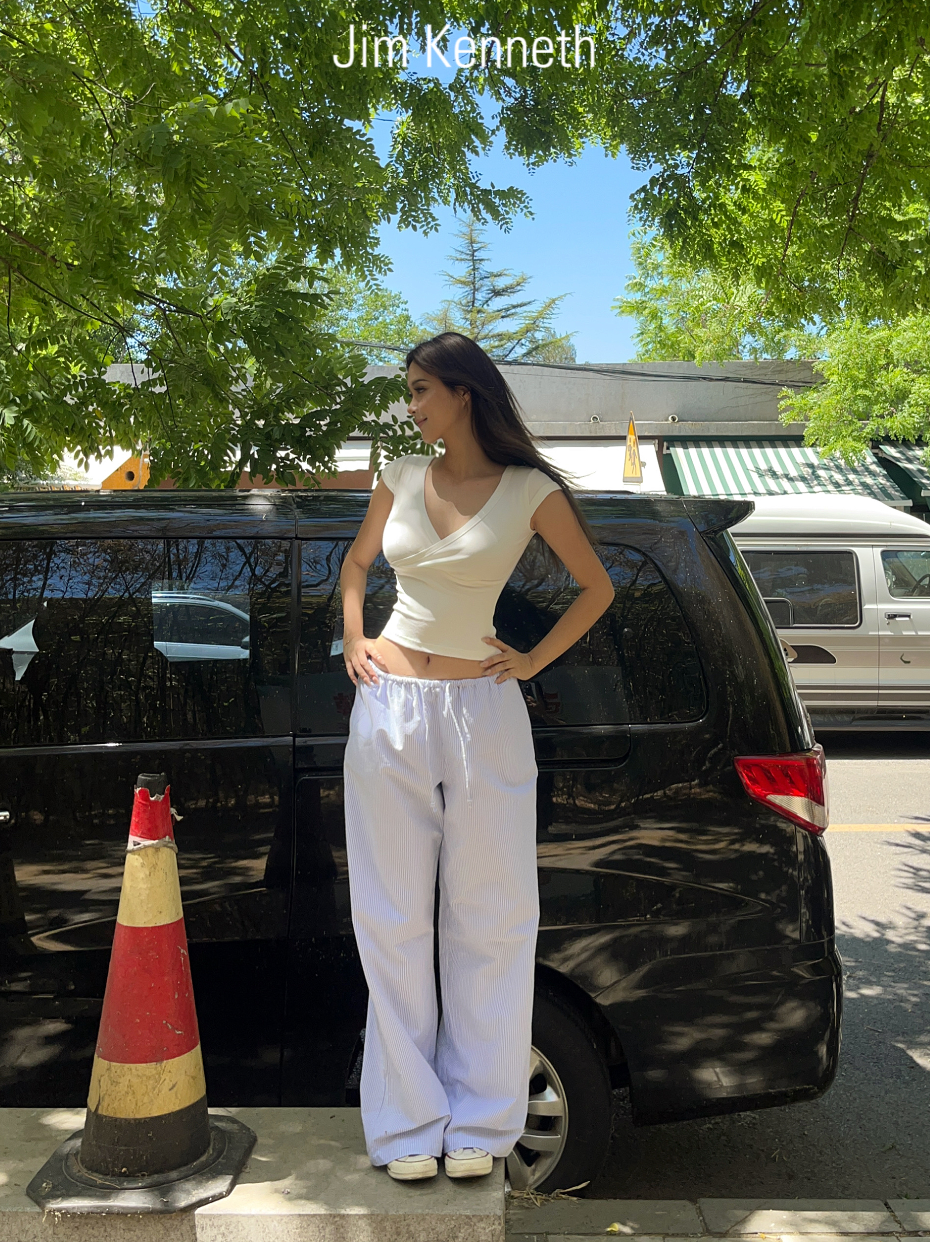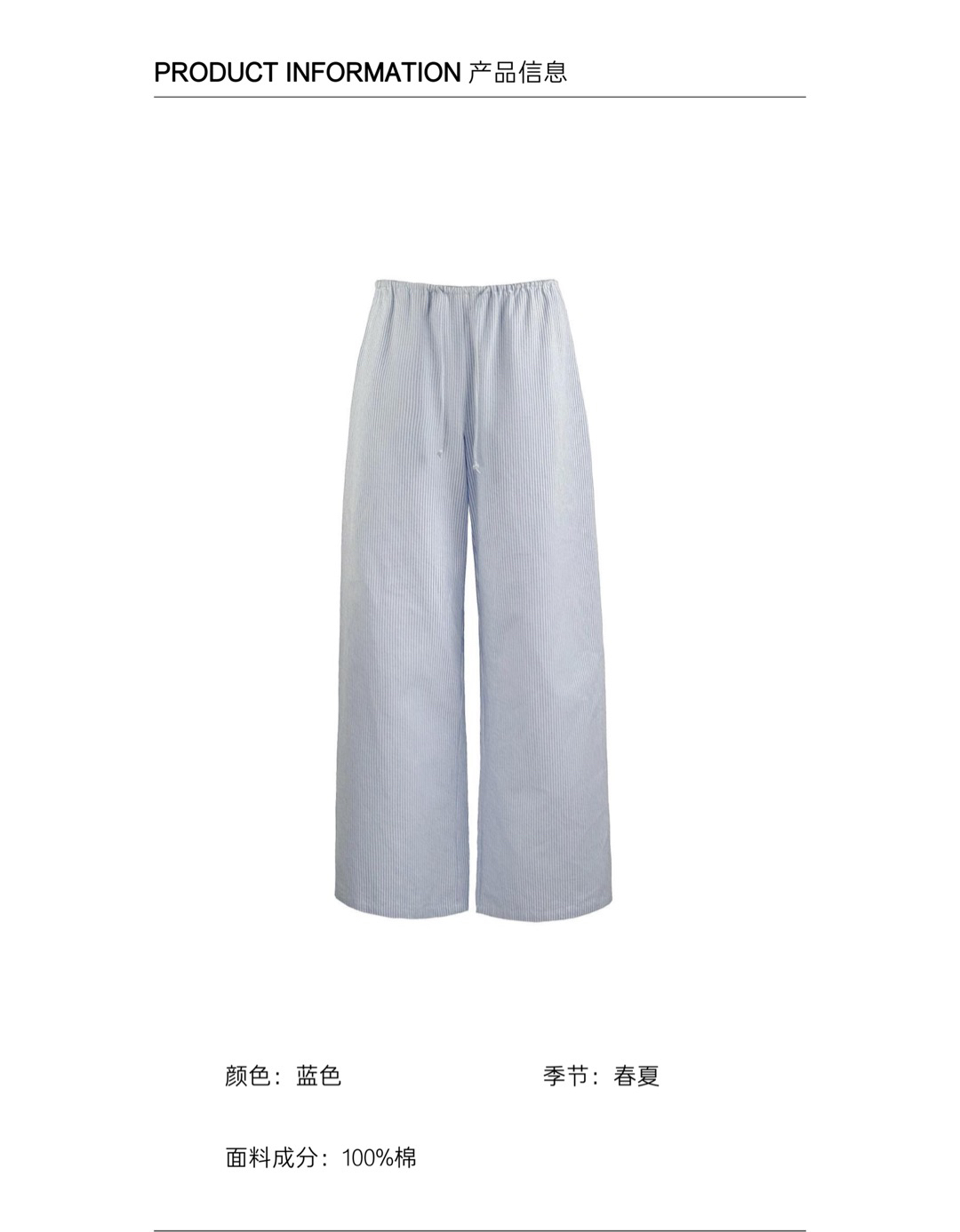 Jim Kennet Blue and White Striped Wide Leg Drawstring Pants