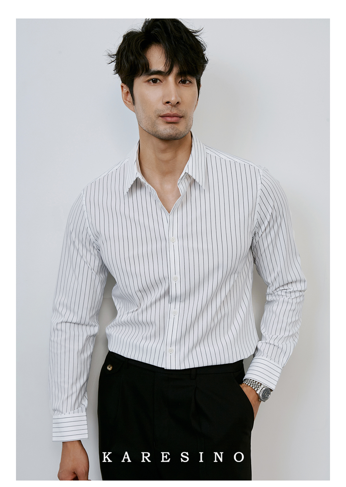 KARESINO Anti-wrinkle Slim-fit Striped Shirt