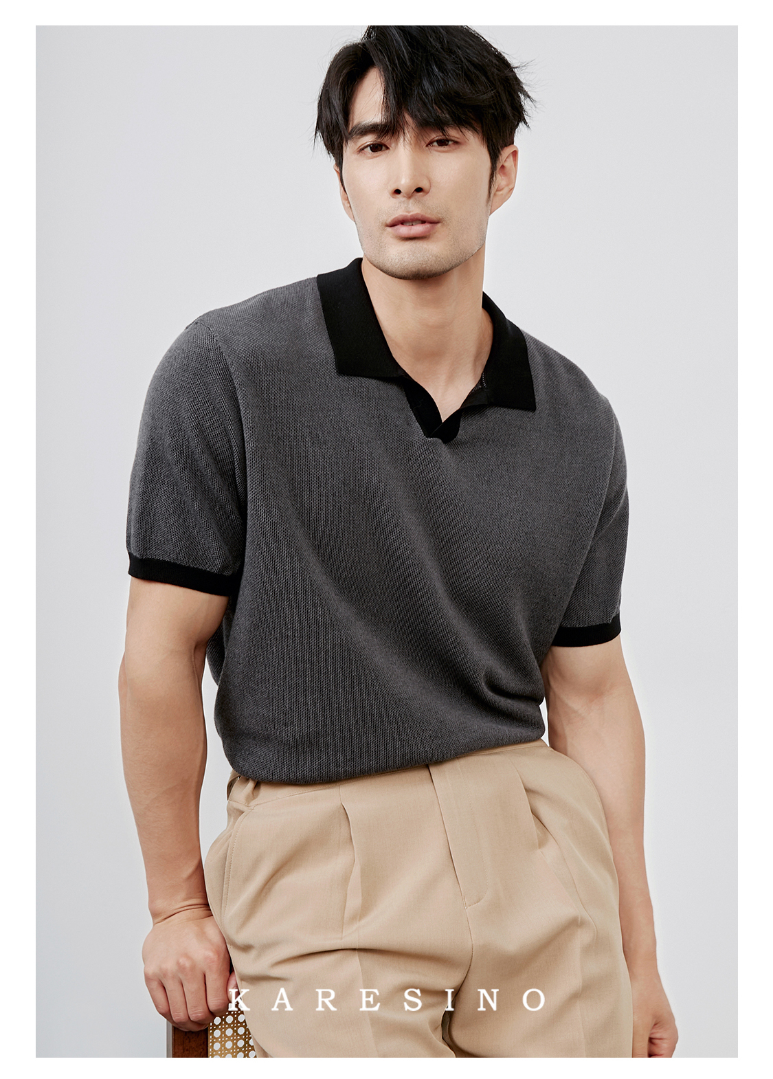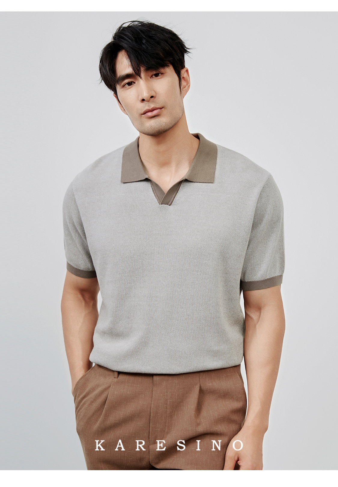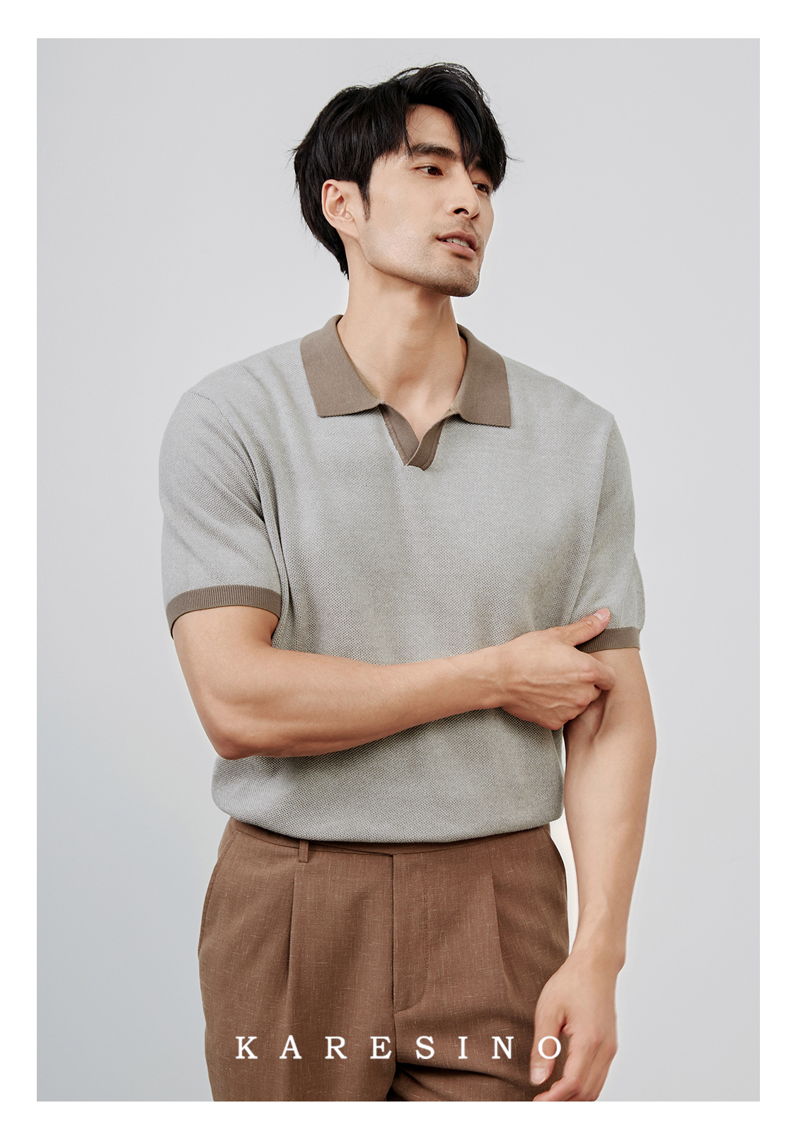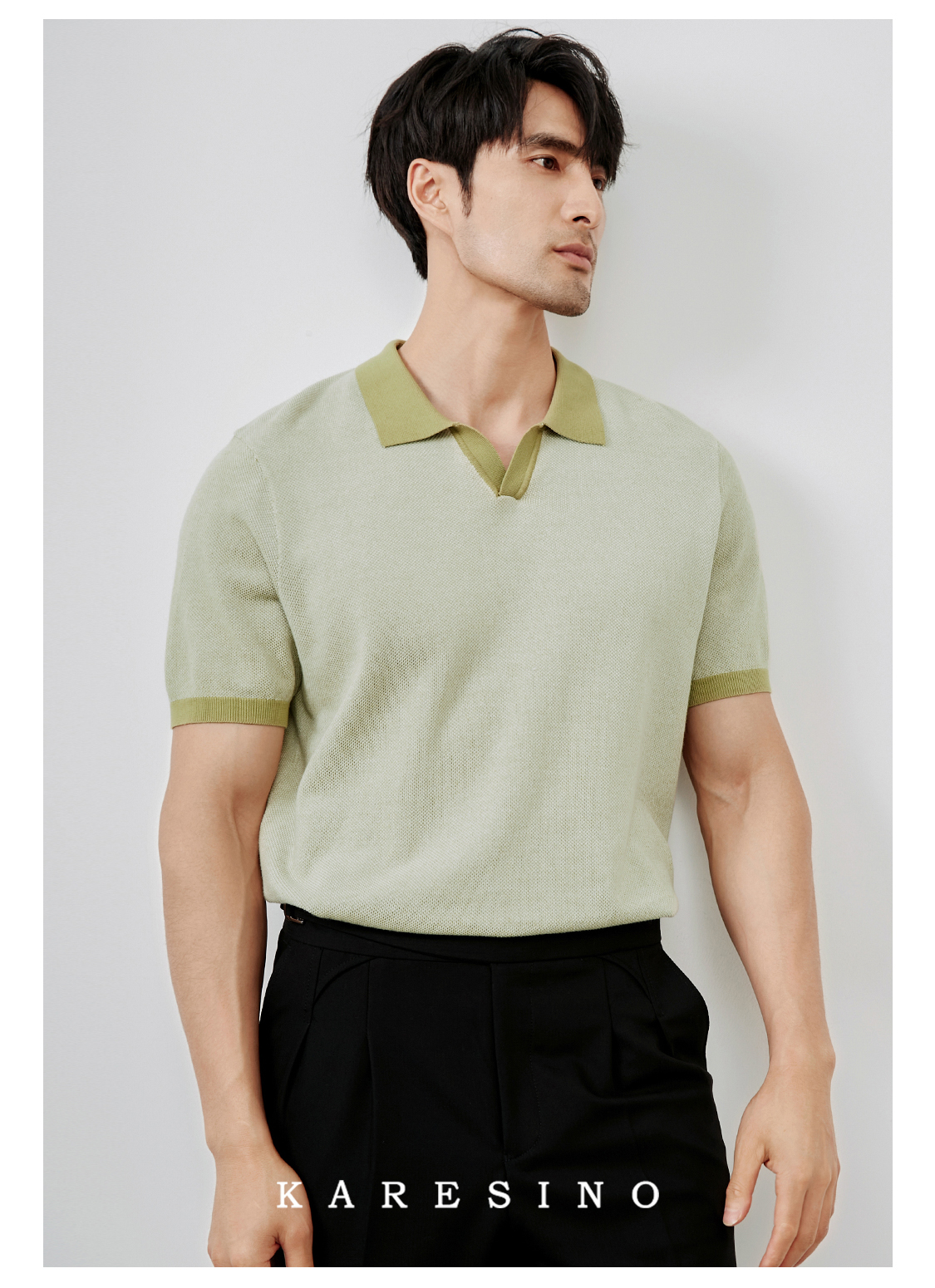 KARESINO Breathable Cotton Lapel-neck Knitted Polo Shirt