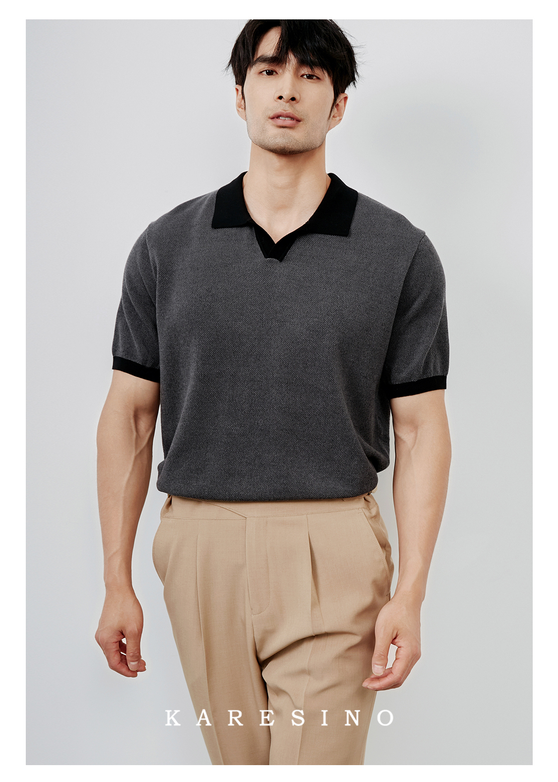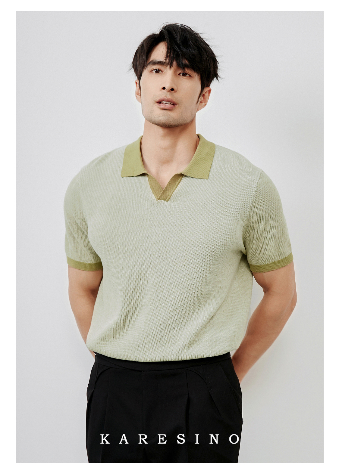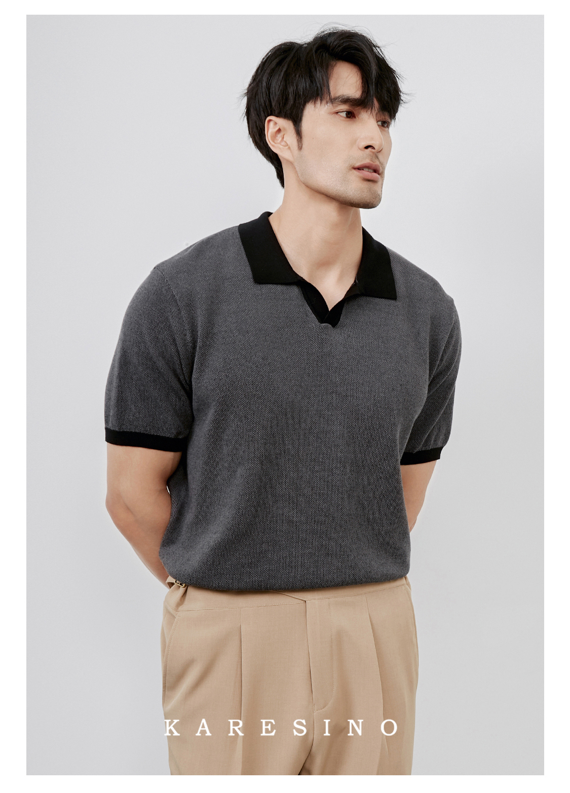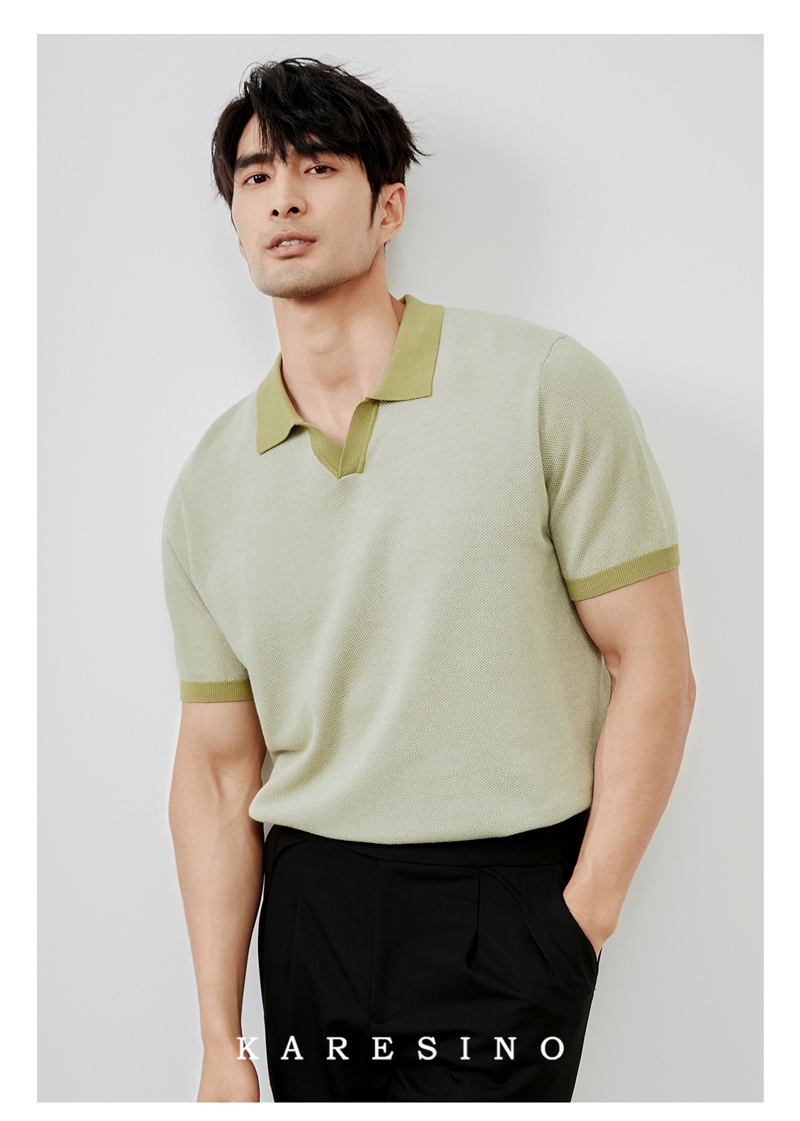 KARESINO Breathable Cotton Lapel-neck Knitted Polo Shirt