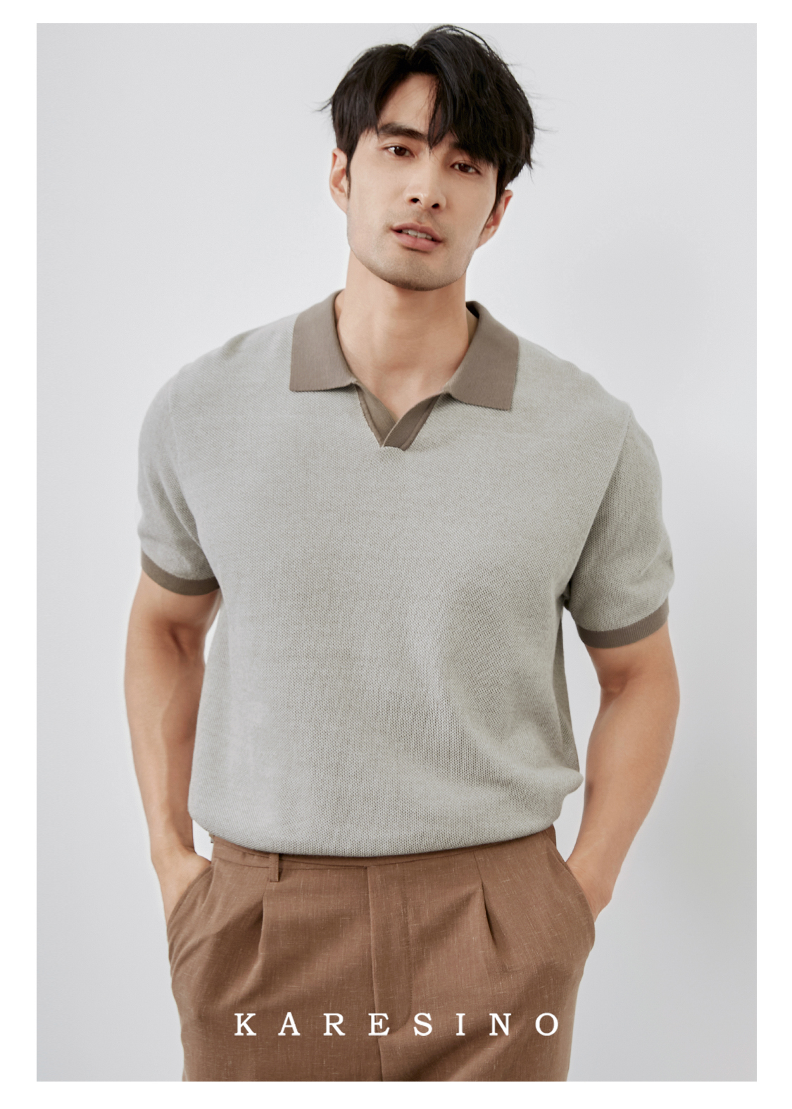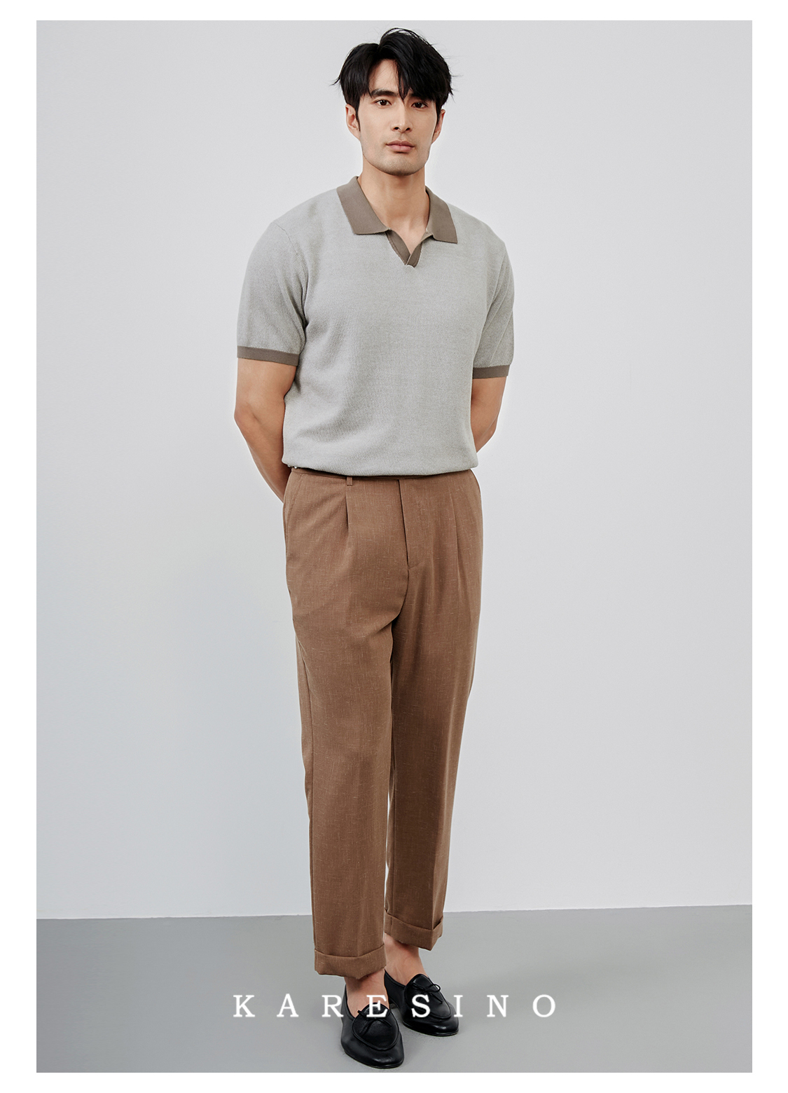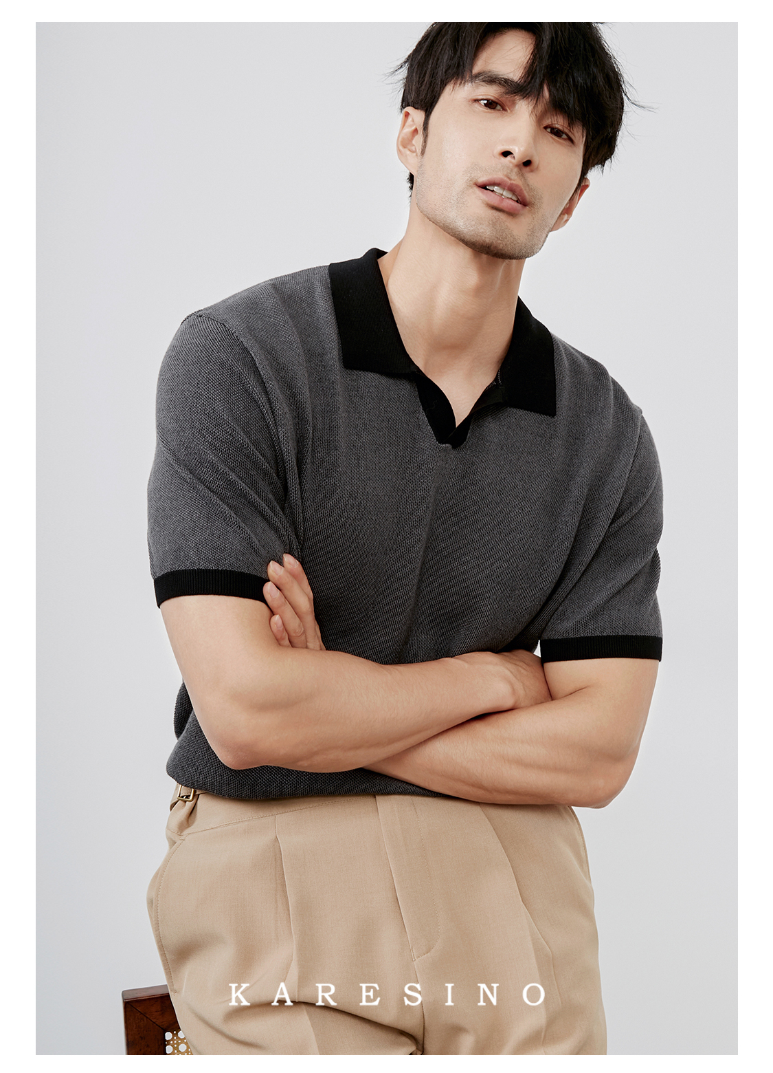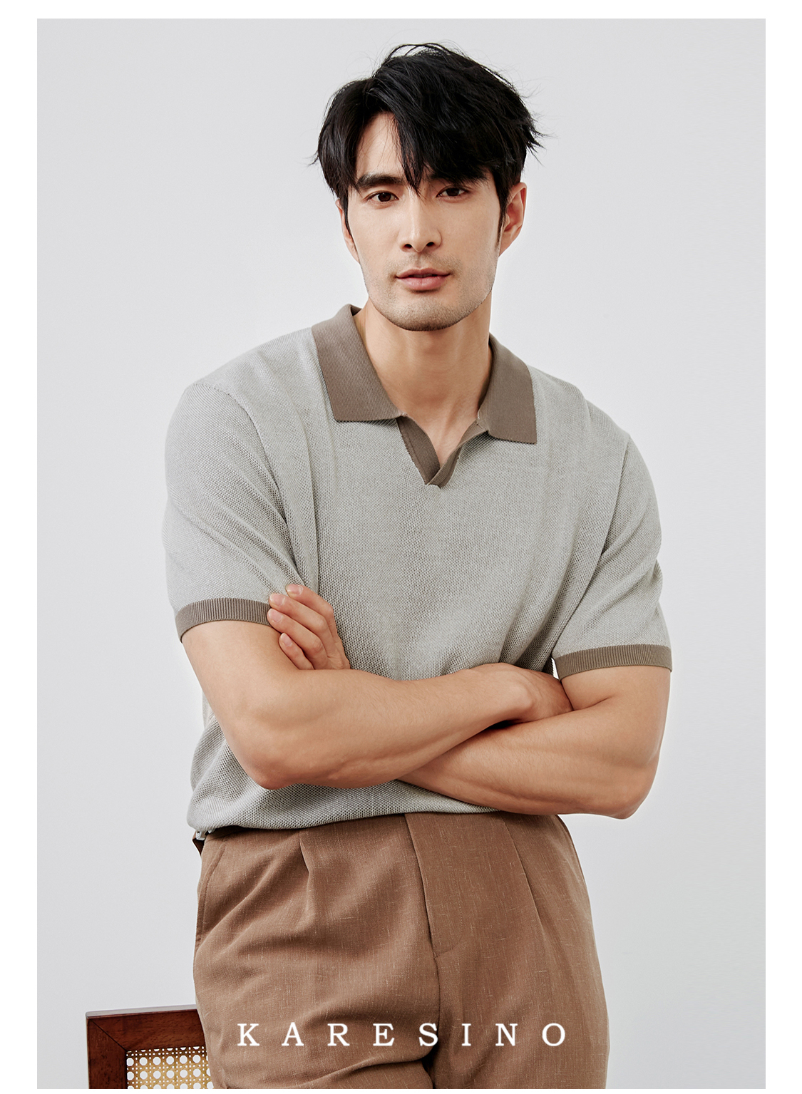 KARESINO Breathable Cotton Lapel-neck Knitted Polo Shirt