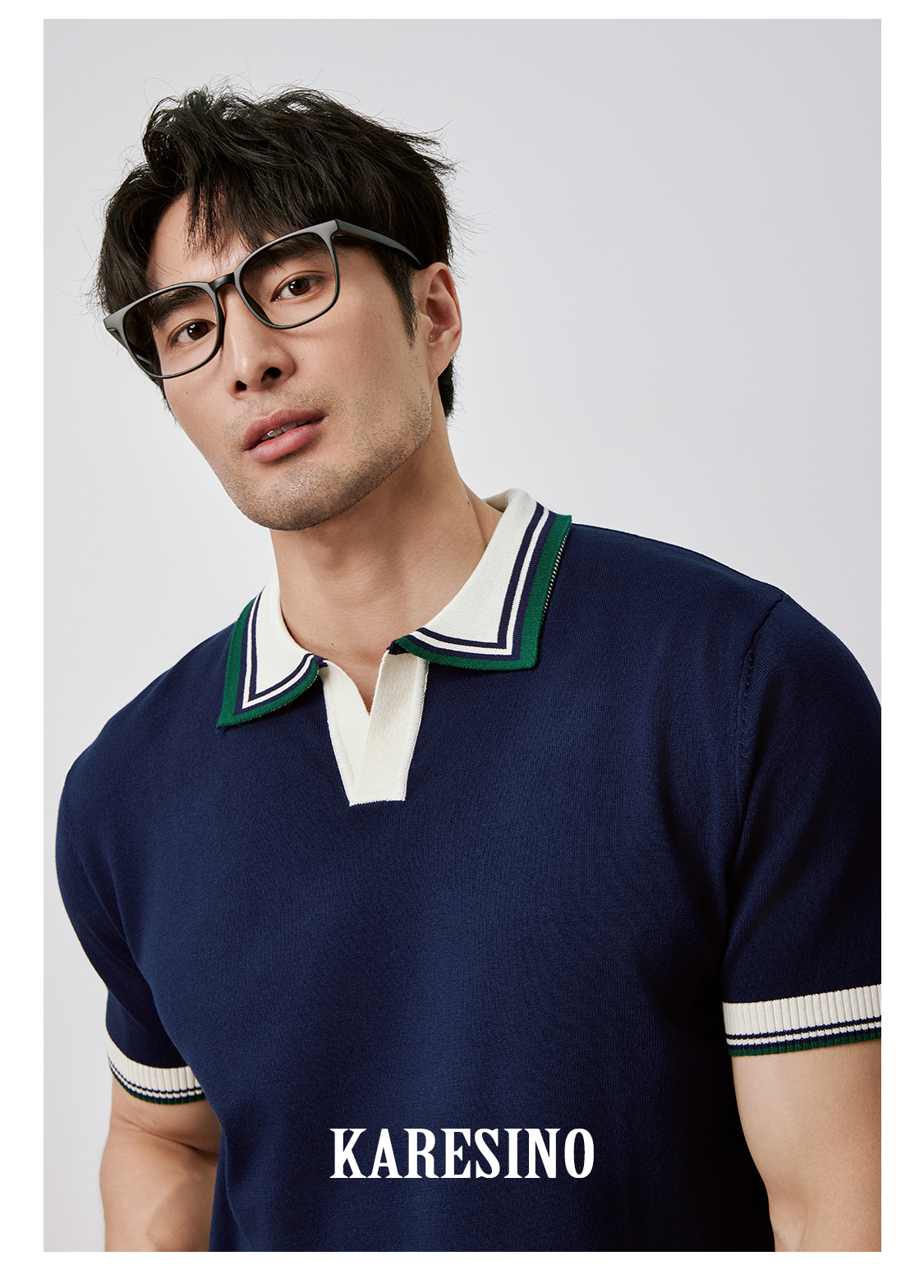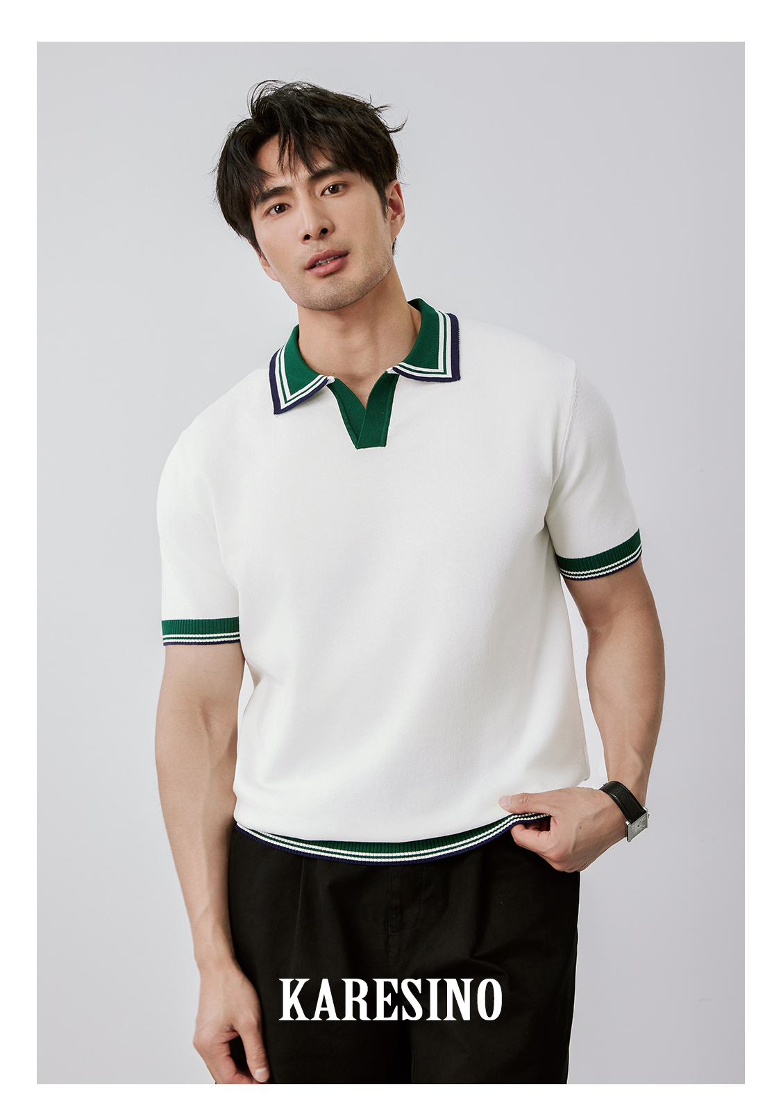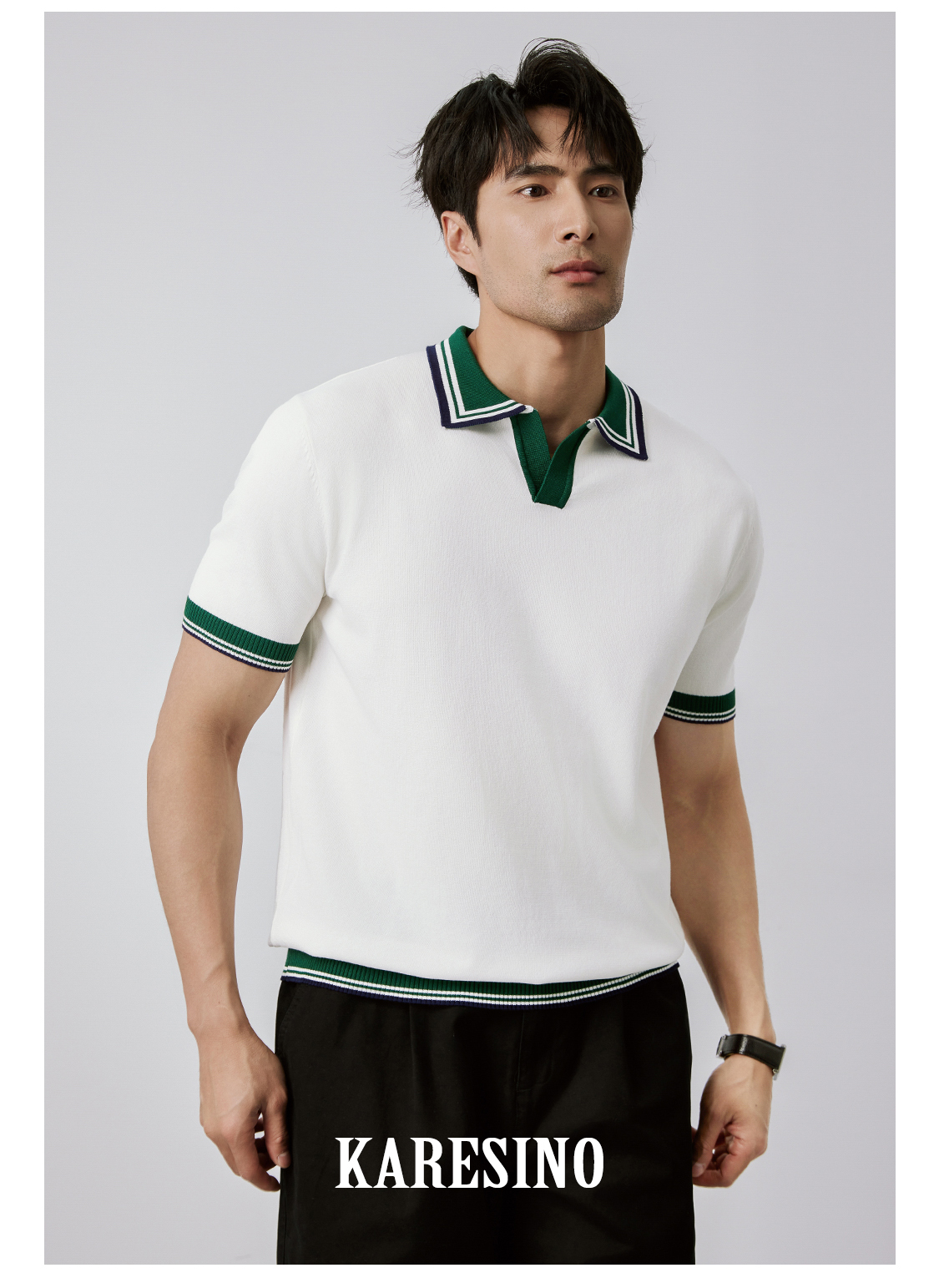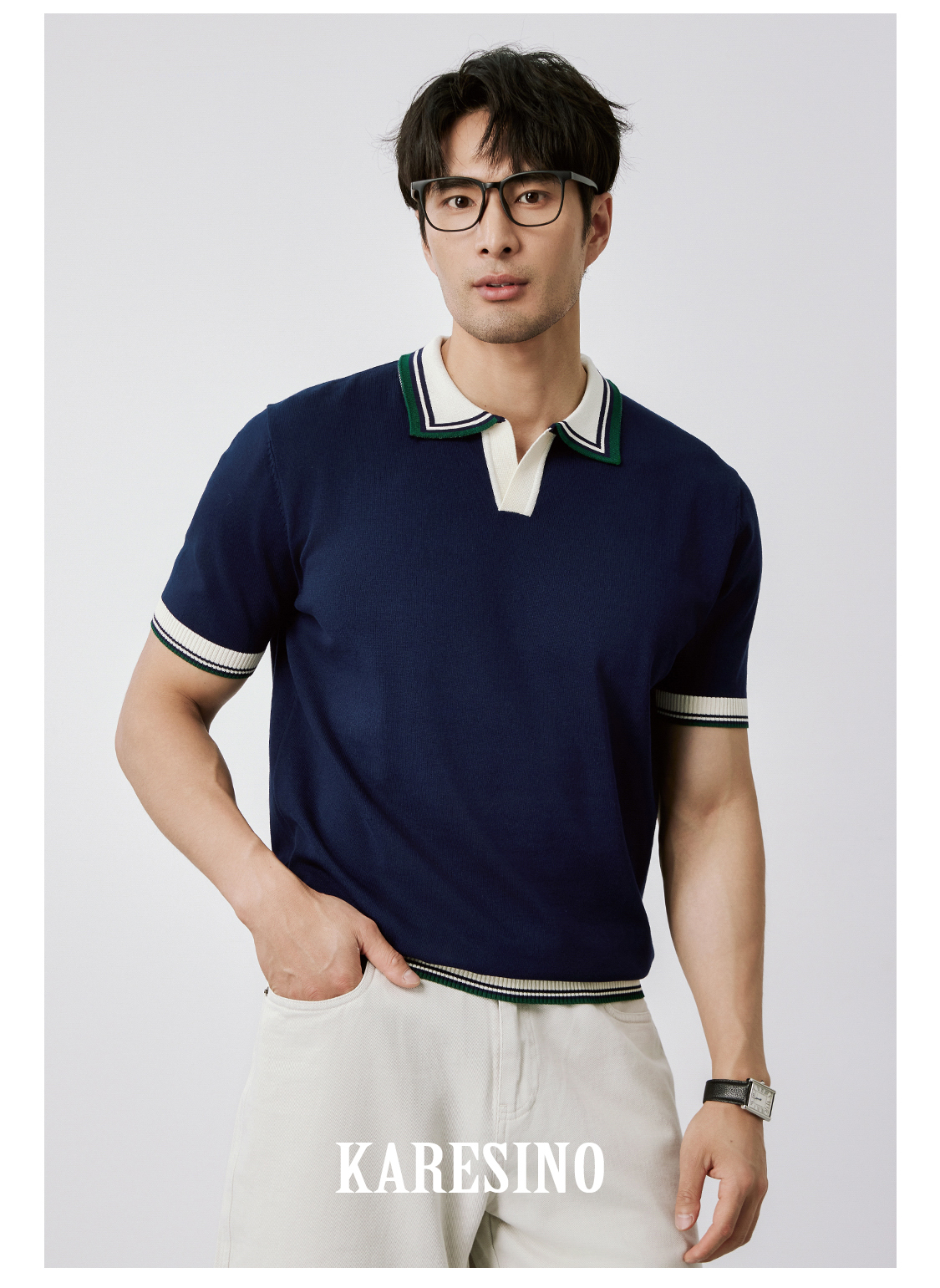 KARESINO Cold Silk Cool Color Contrasting Splicing Knitted Polo Shirt