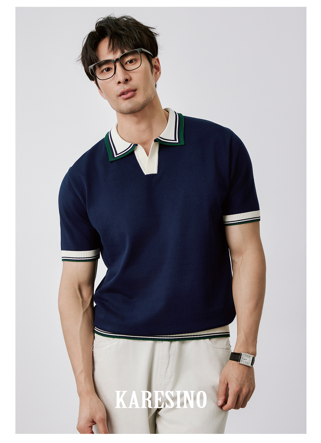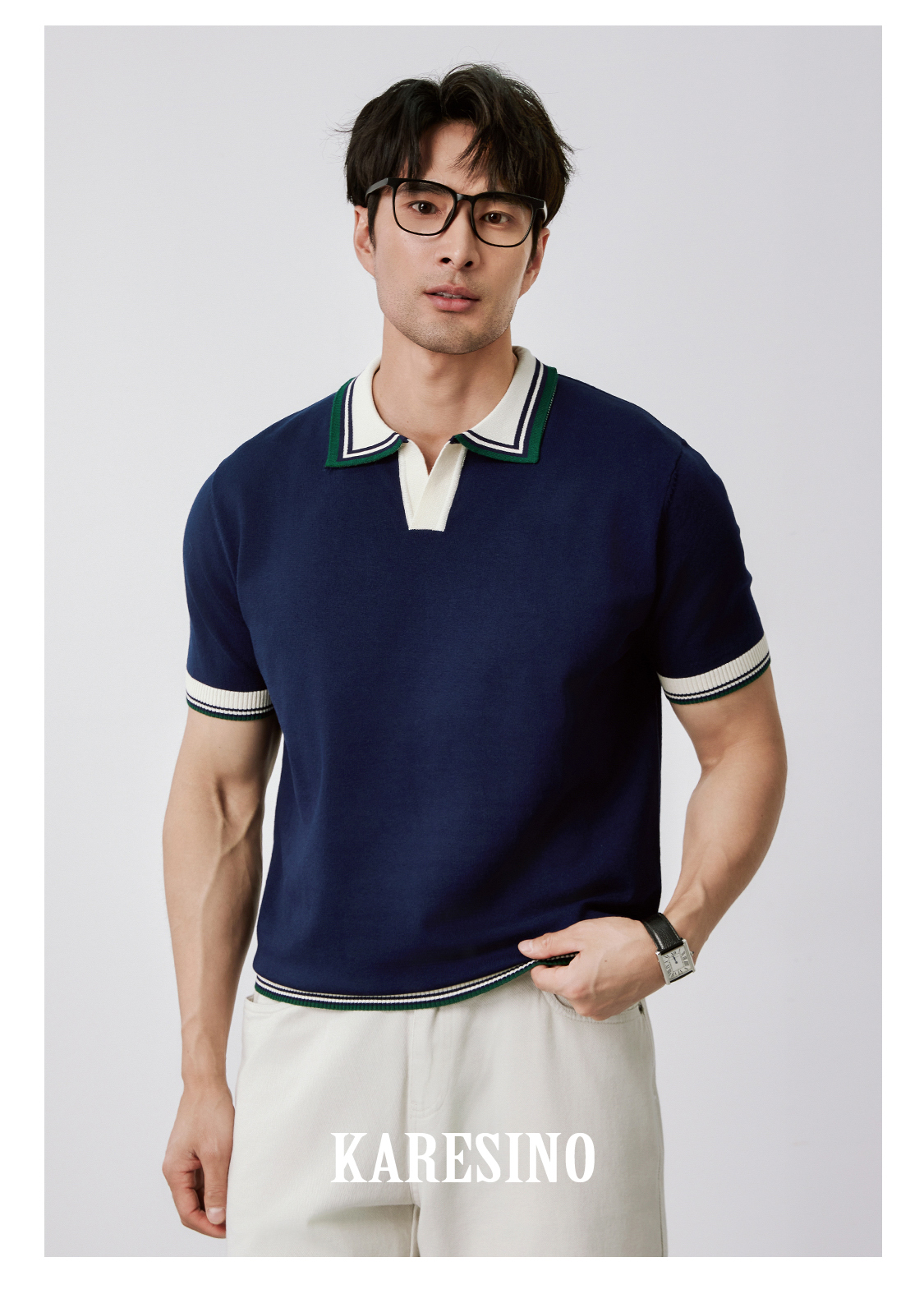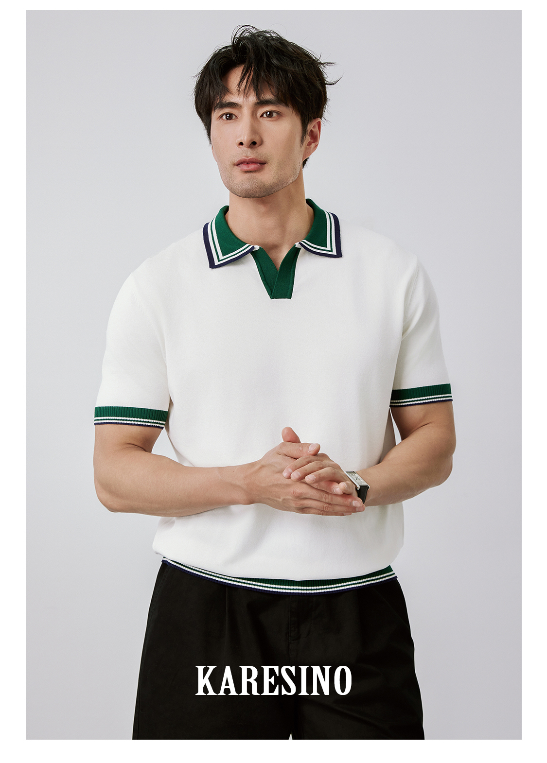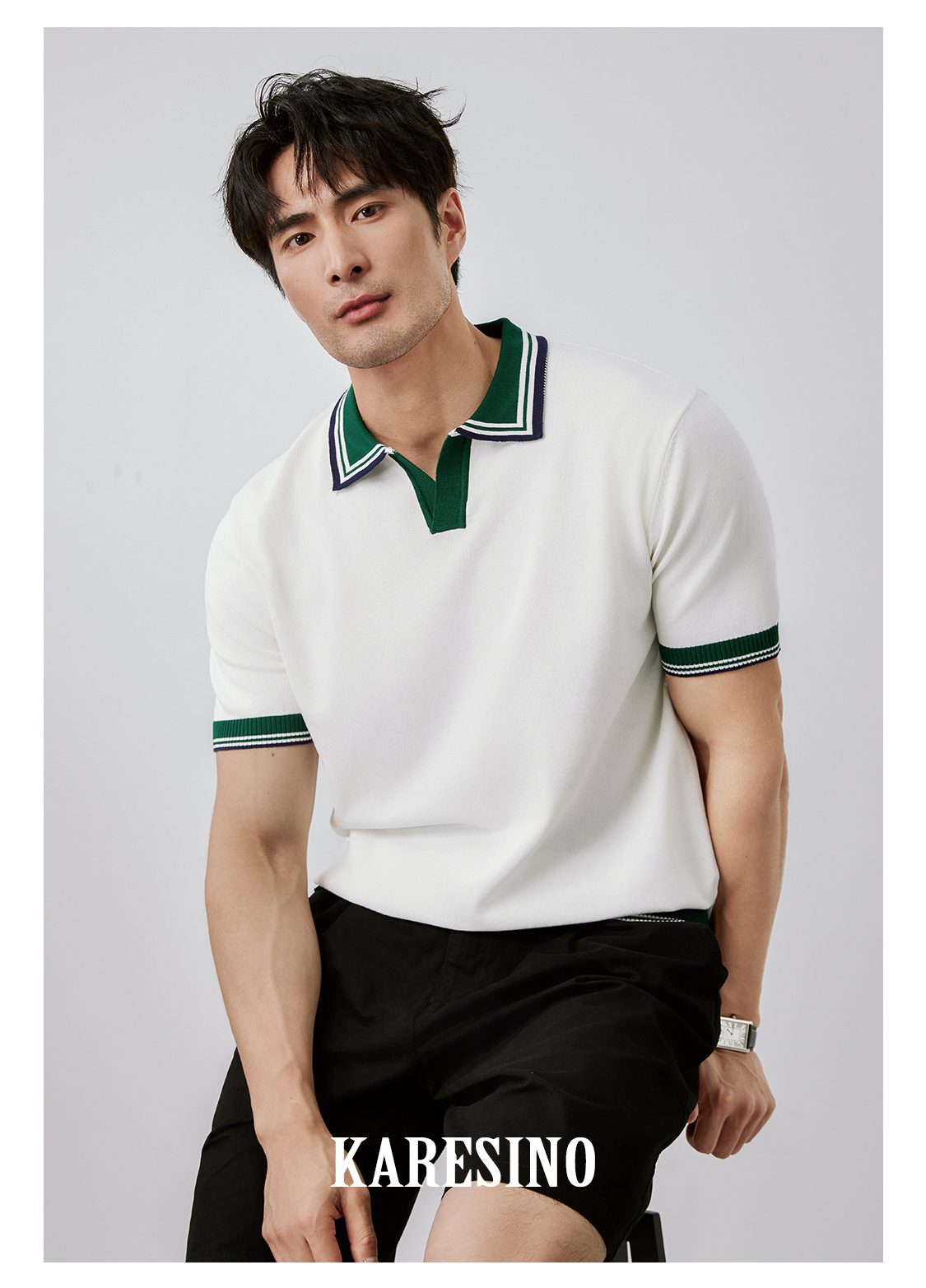 KARESINO Cold Silk Cool Color Contrasting Splicing Knitted Polo Shirt
