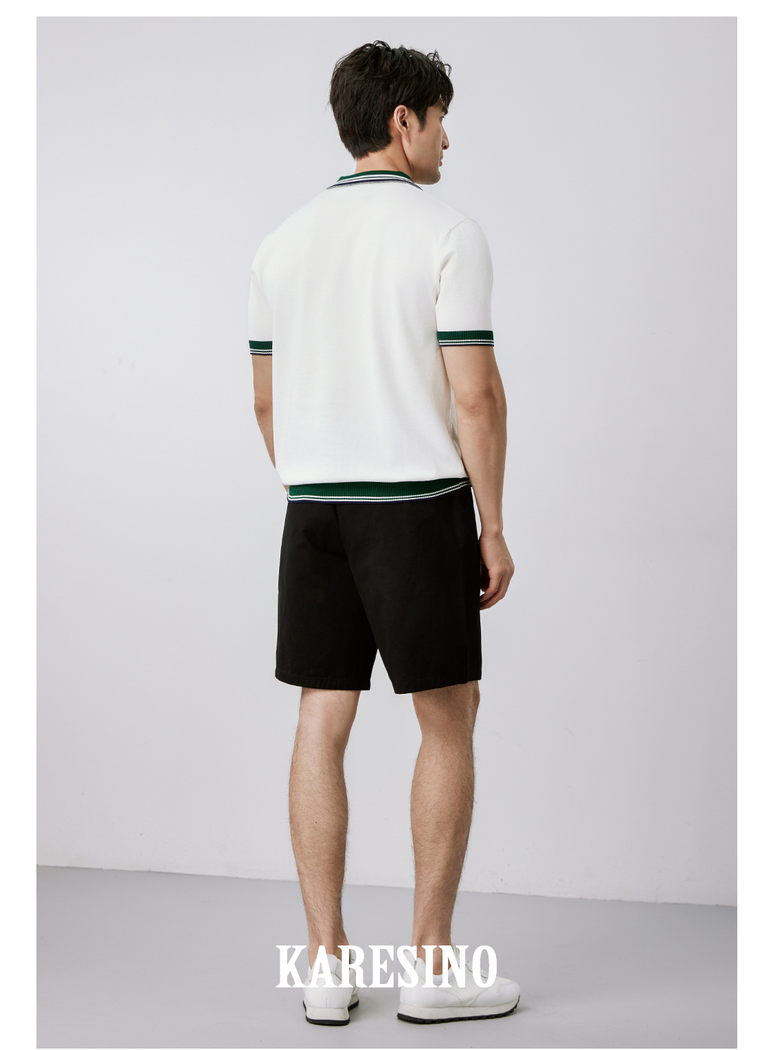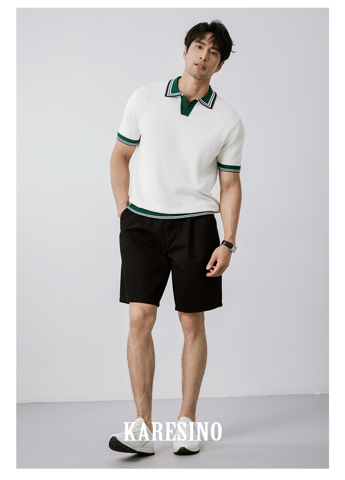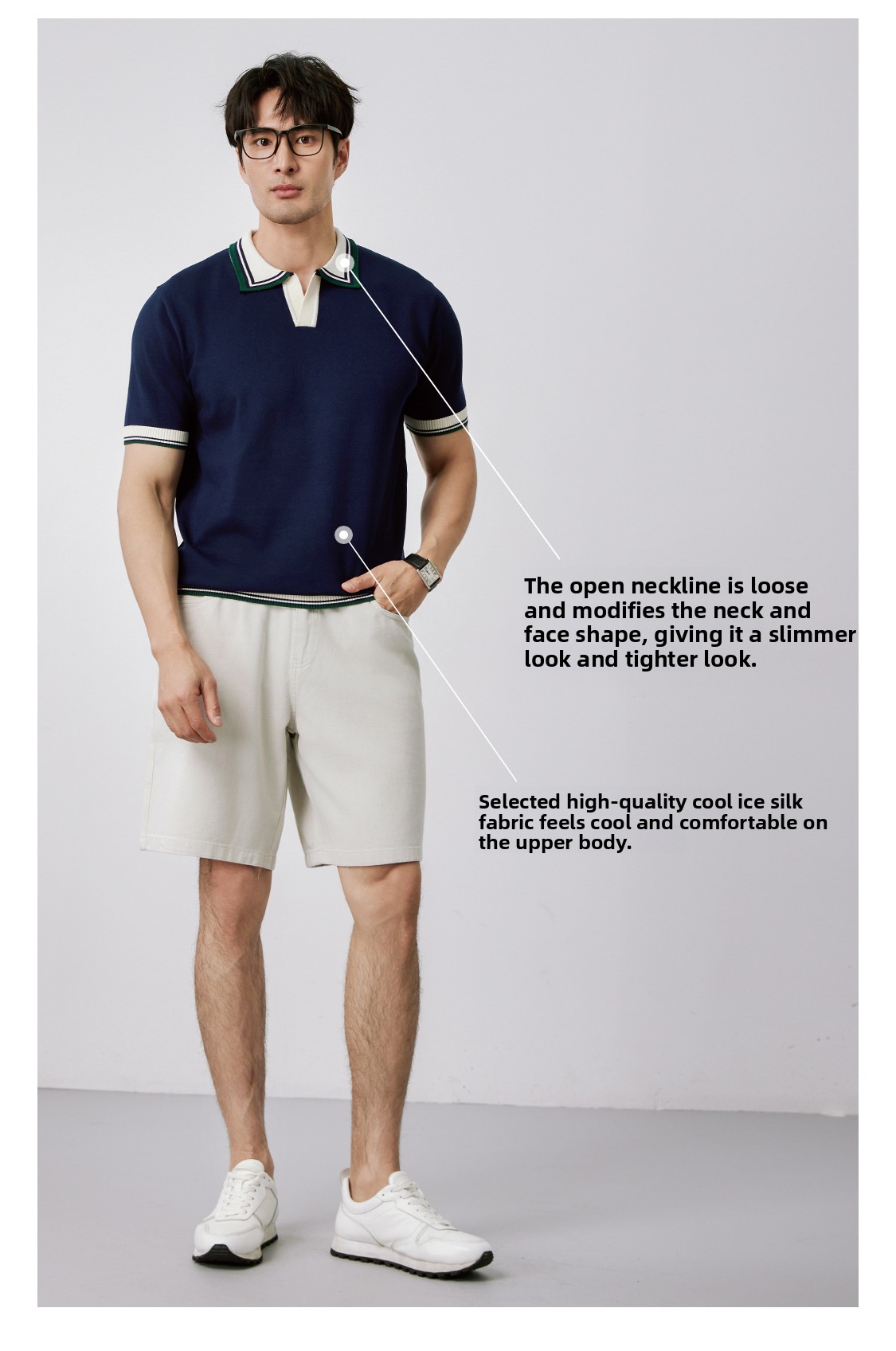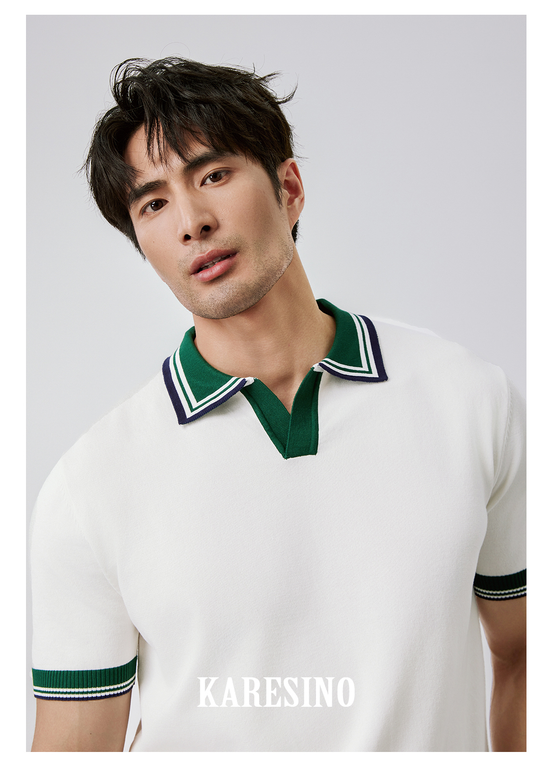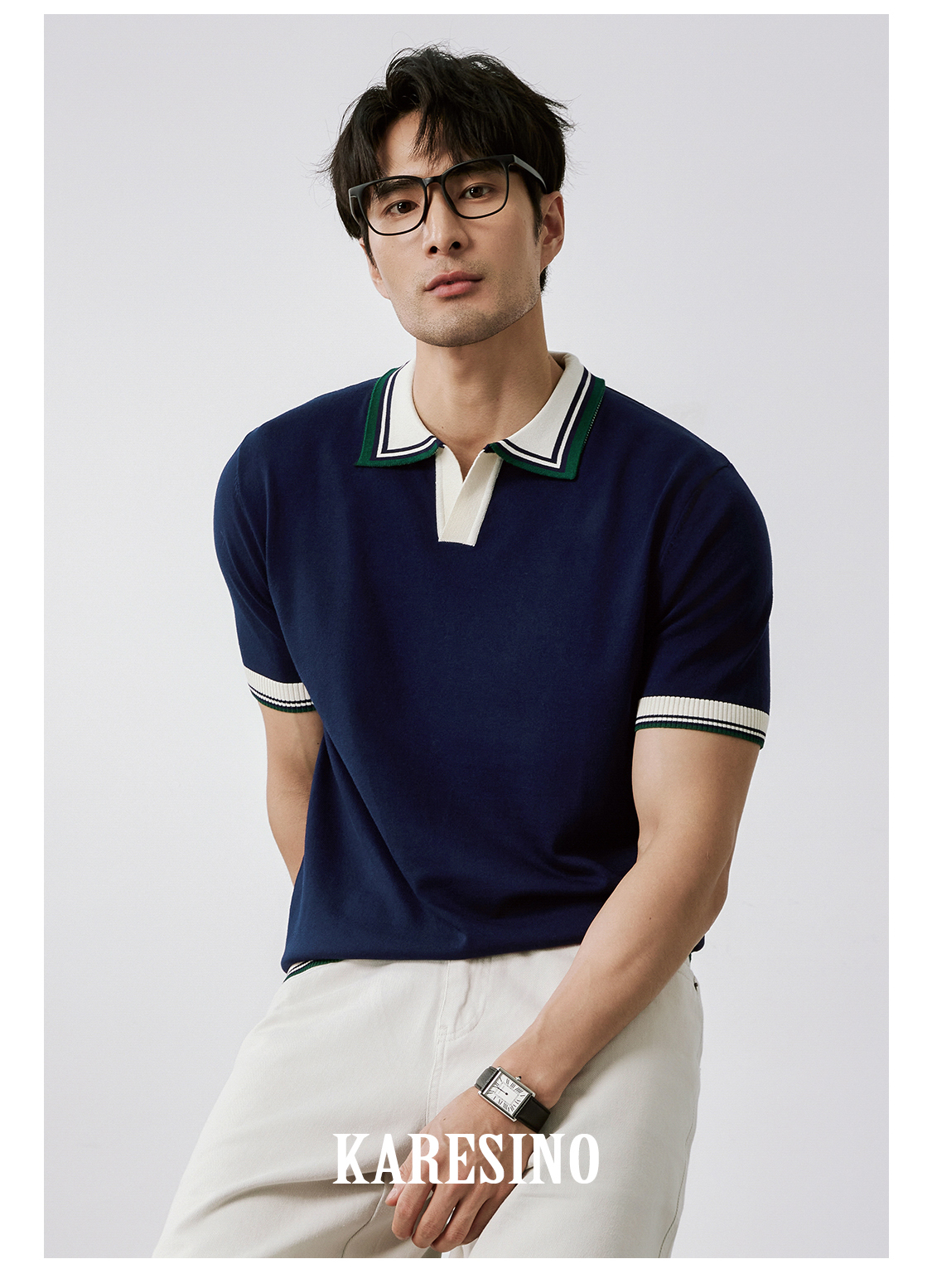 KARESINO Cold Silk Cool Color Contrasting Splicing Knitted Polo Shirt