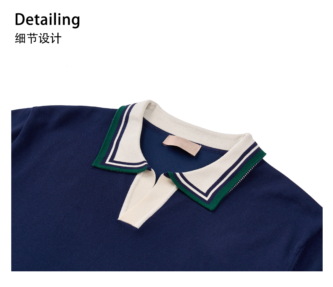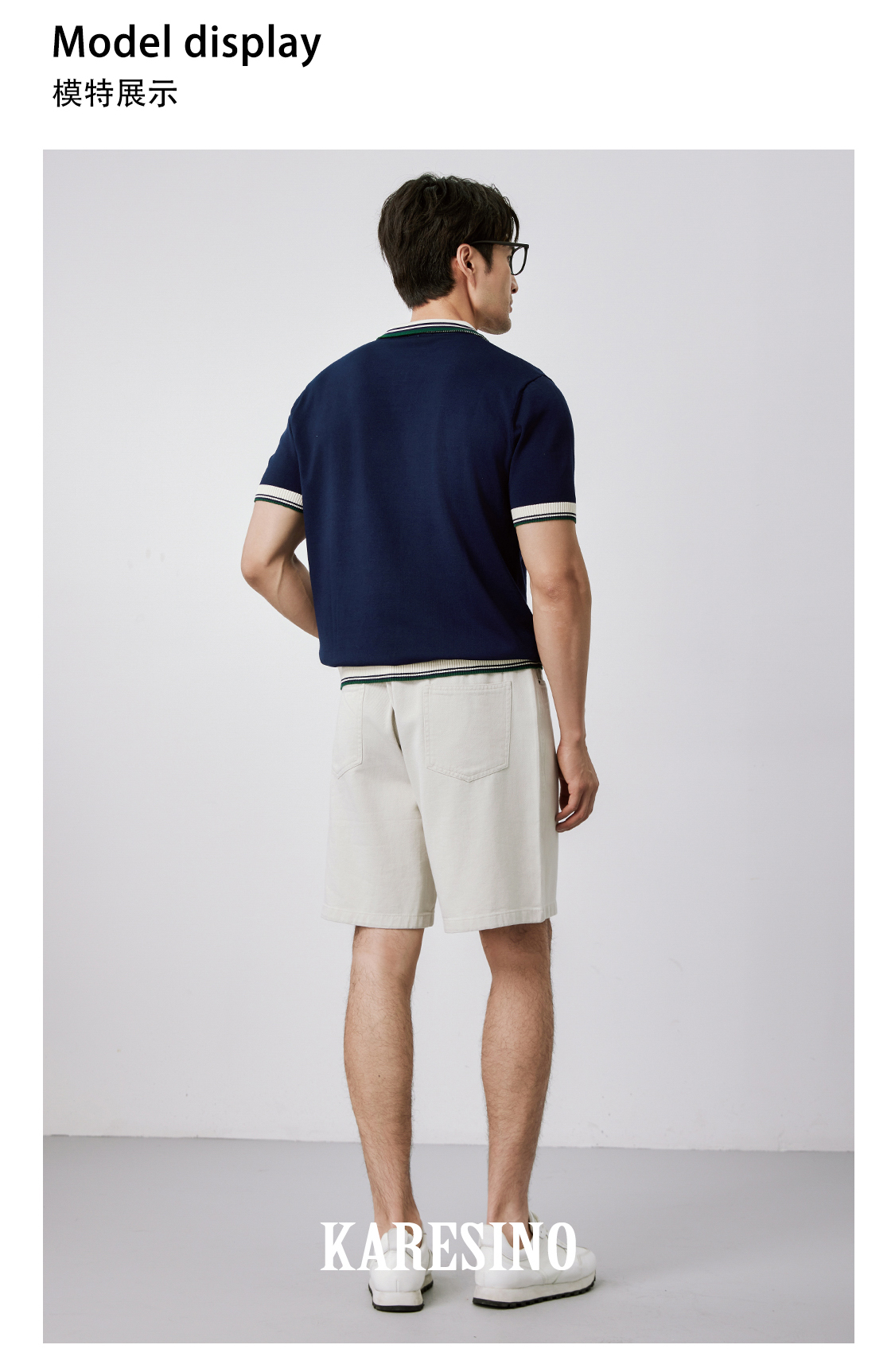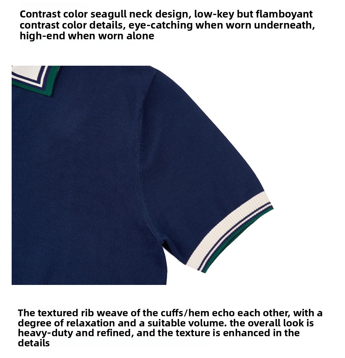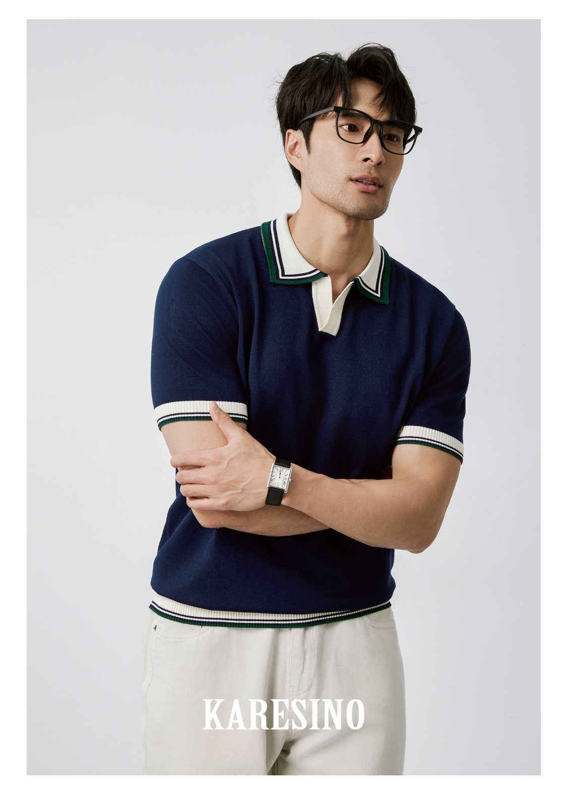 KARESINO Cold Silk Cool Color Contrasting Splicing Knitted Polo Shirt