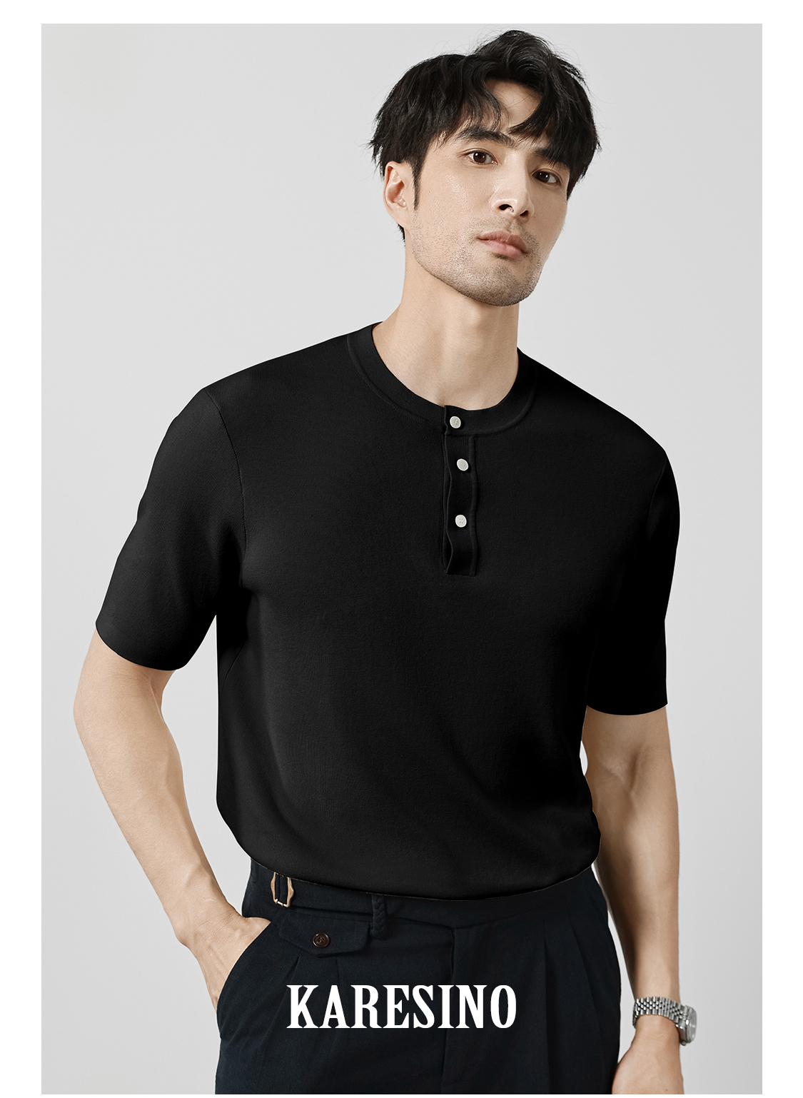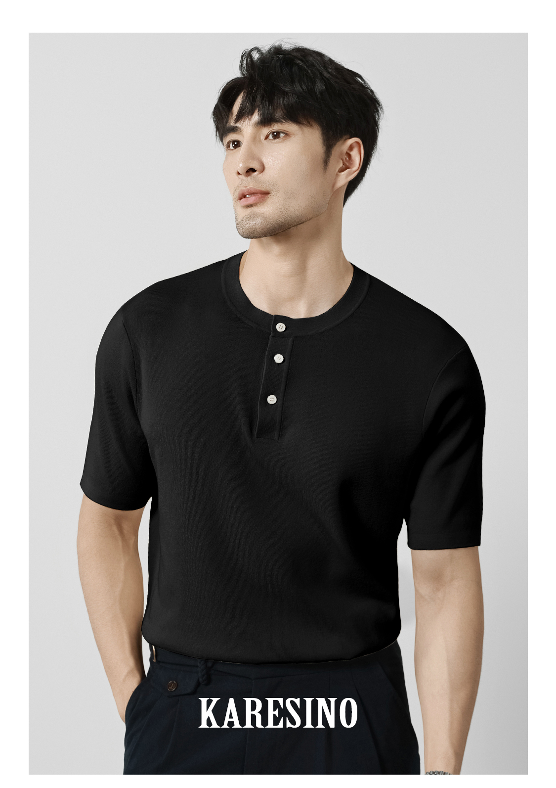 KARESINO Henry Collar Business Knitted Polo Shirt