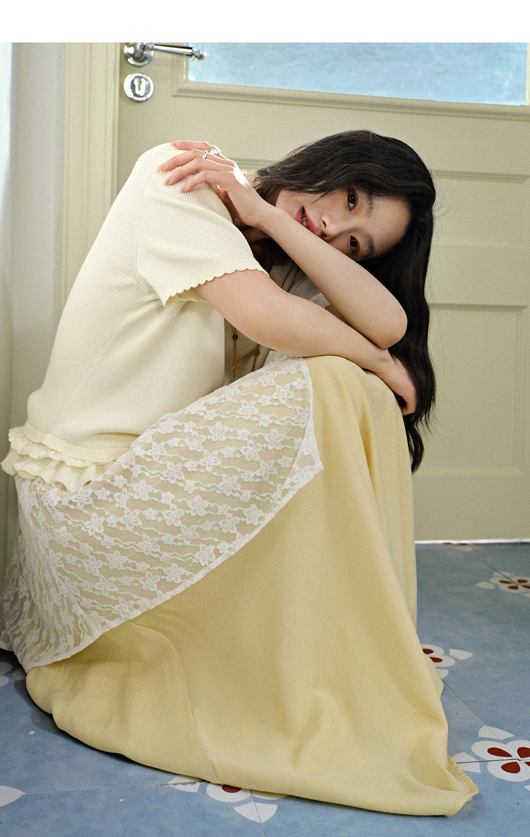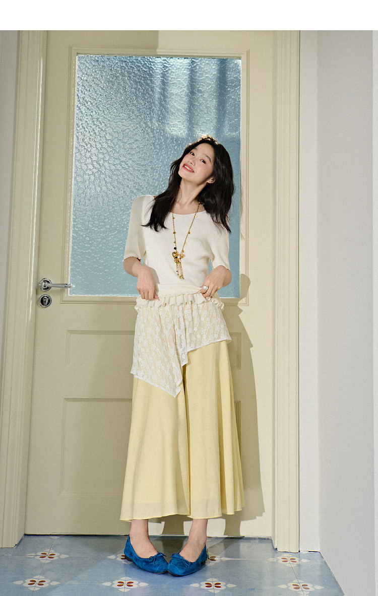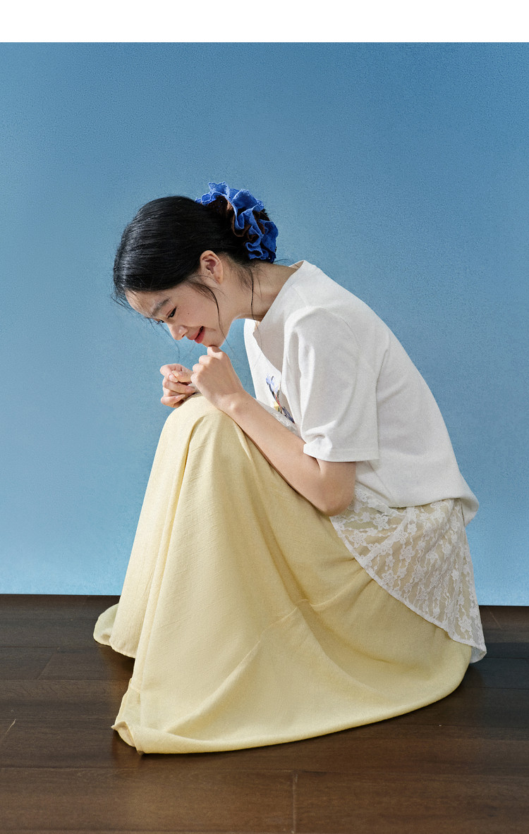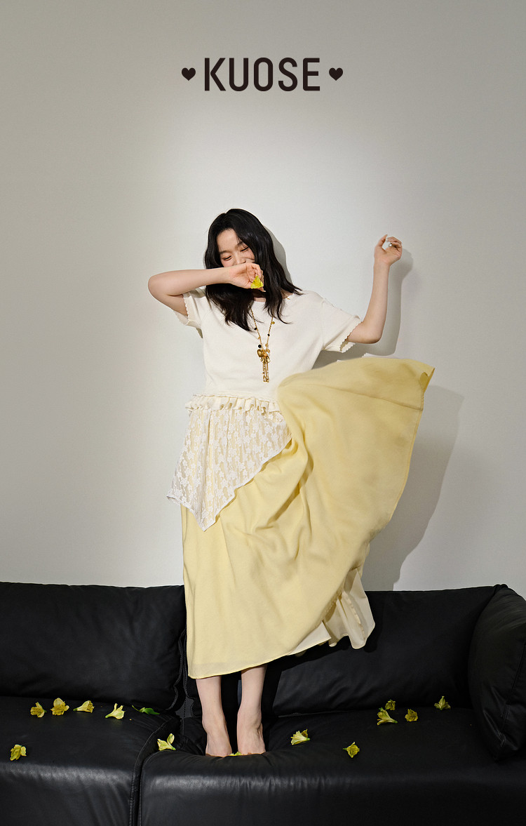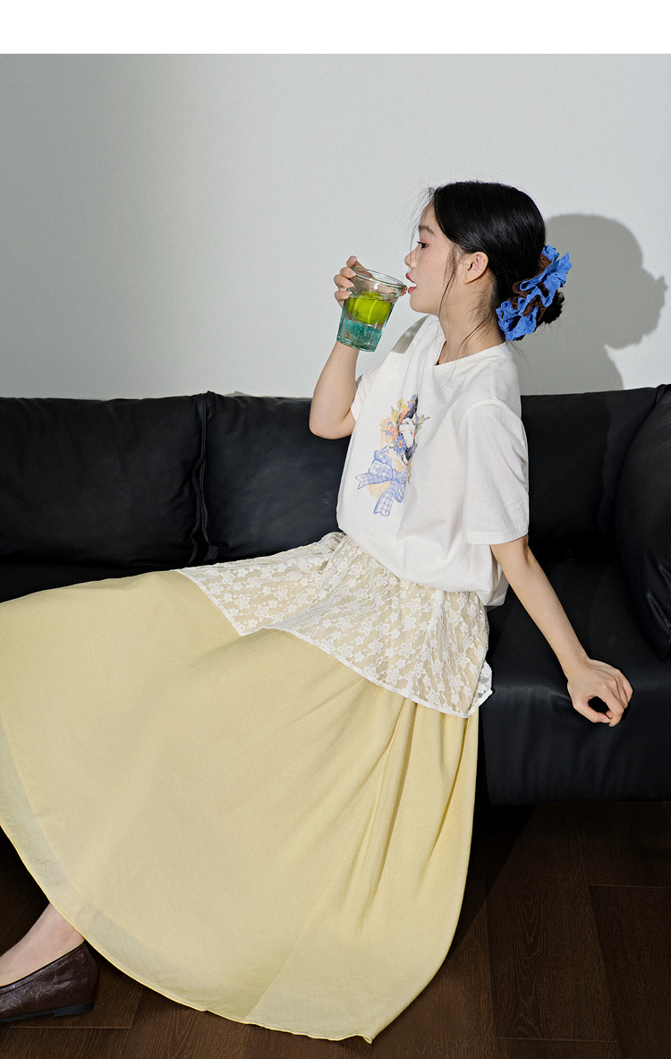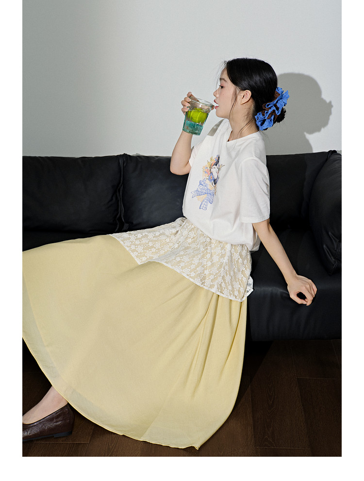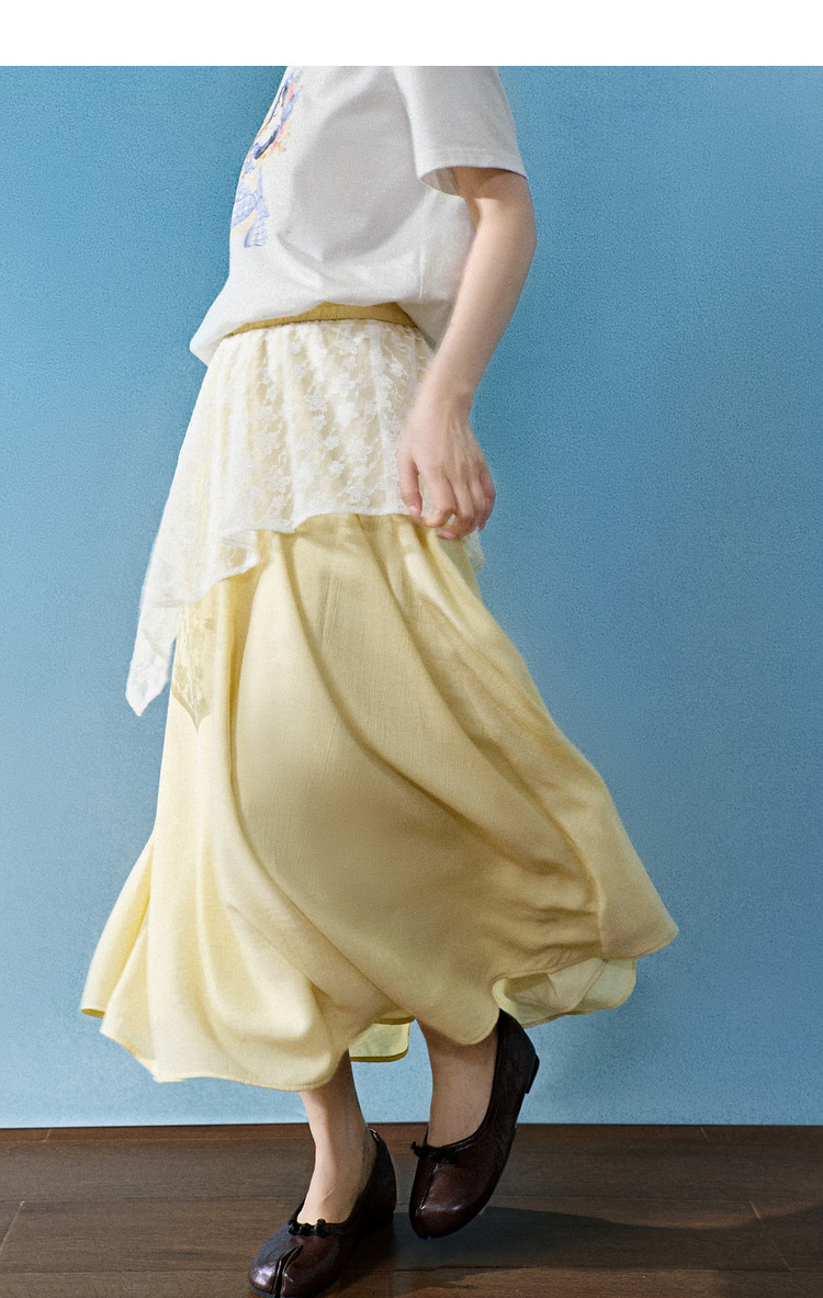 Kuose Skirt French Lace Fart Curtain Long Skirt