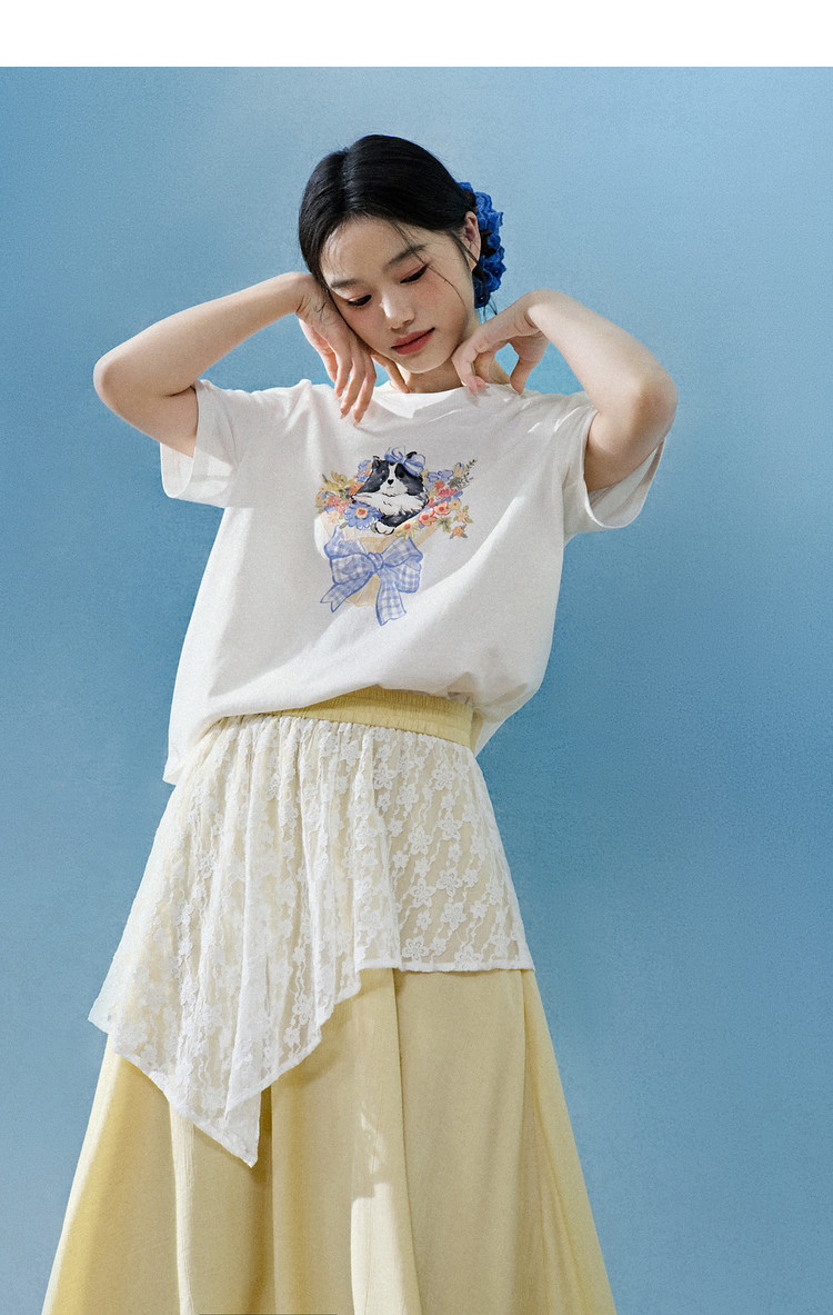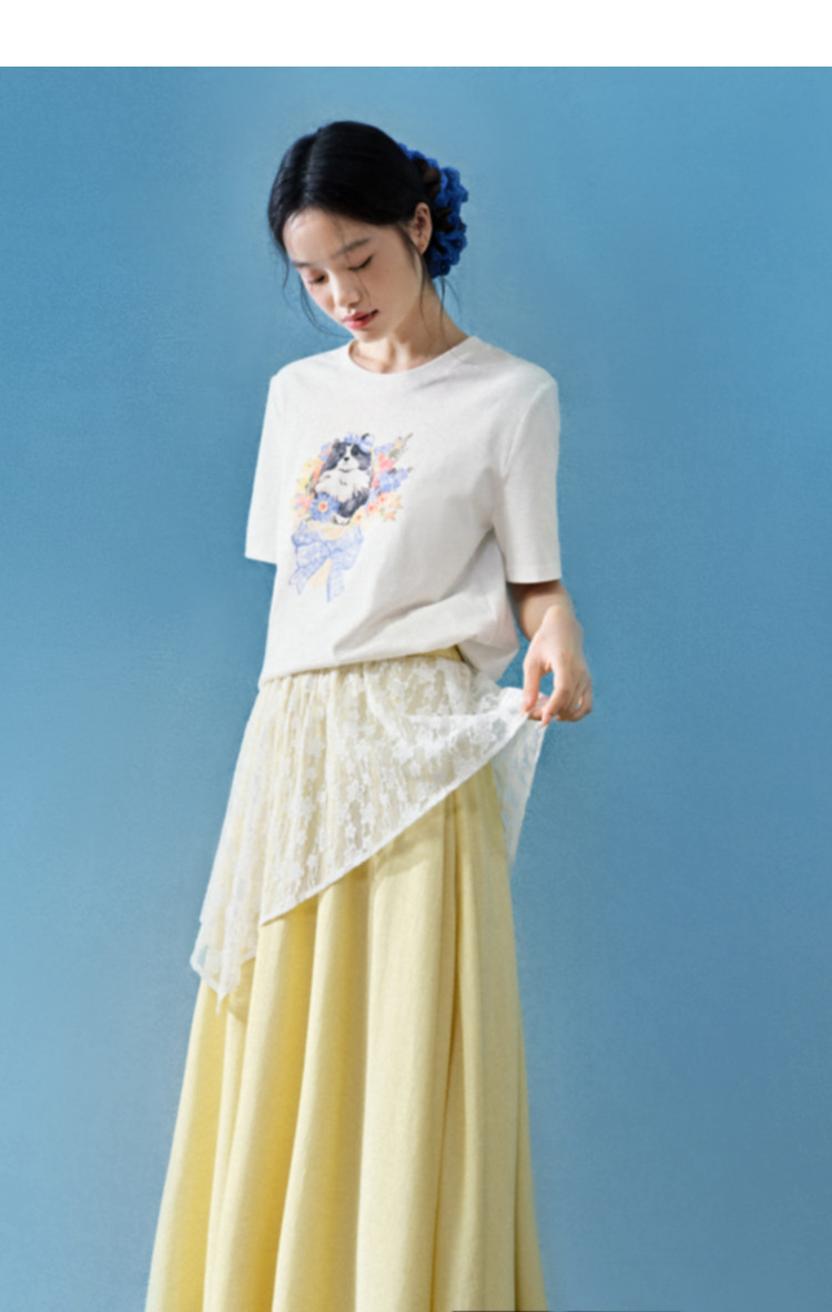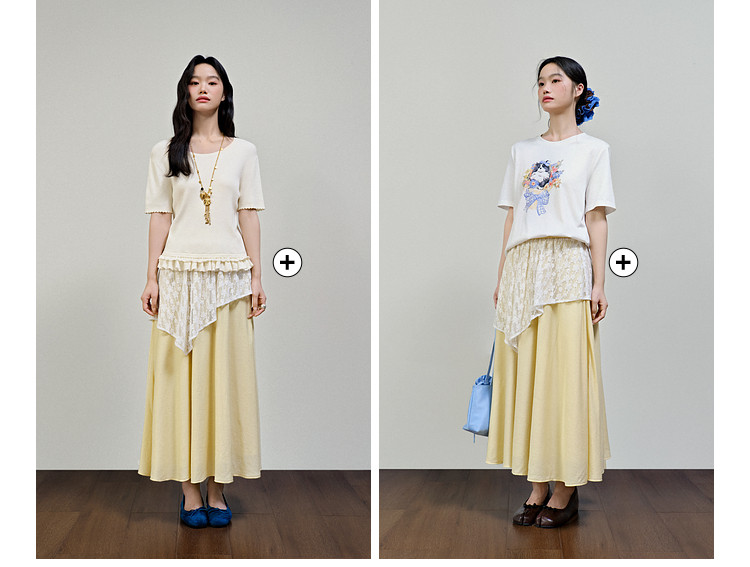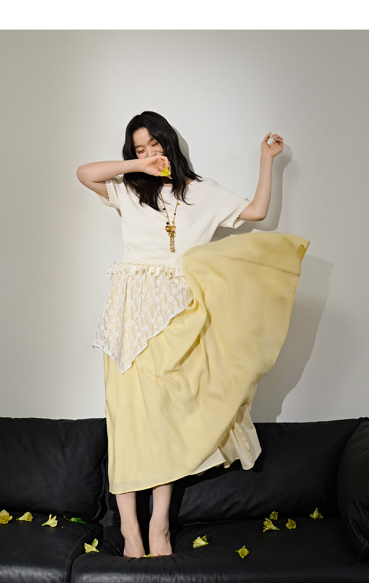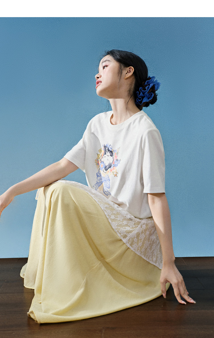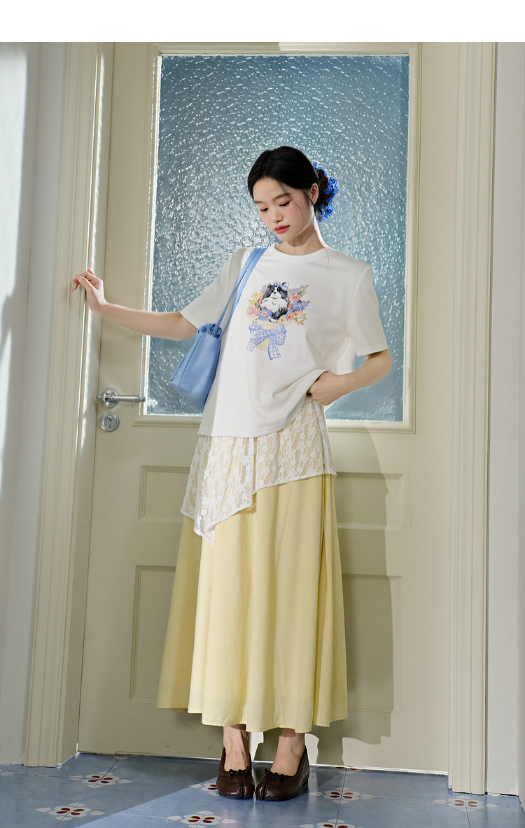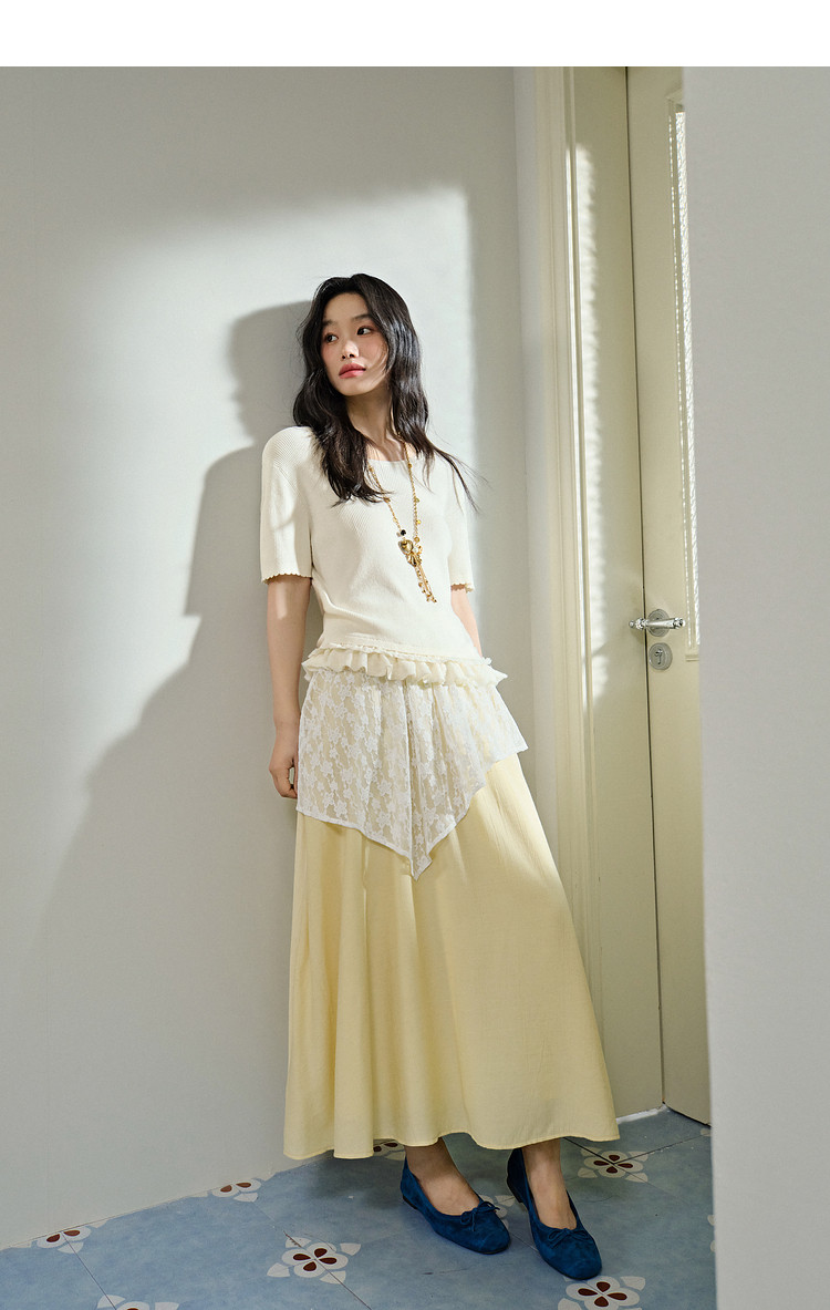 Kuose Skirt French Lace Fart Curtain Long Skirt