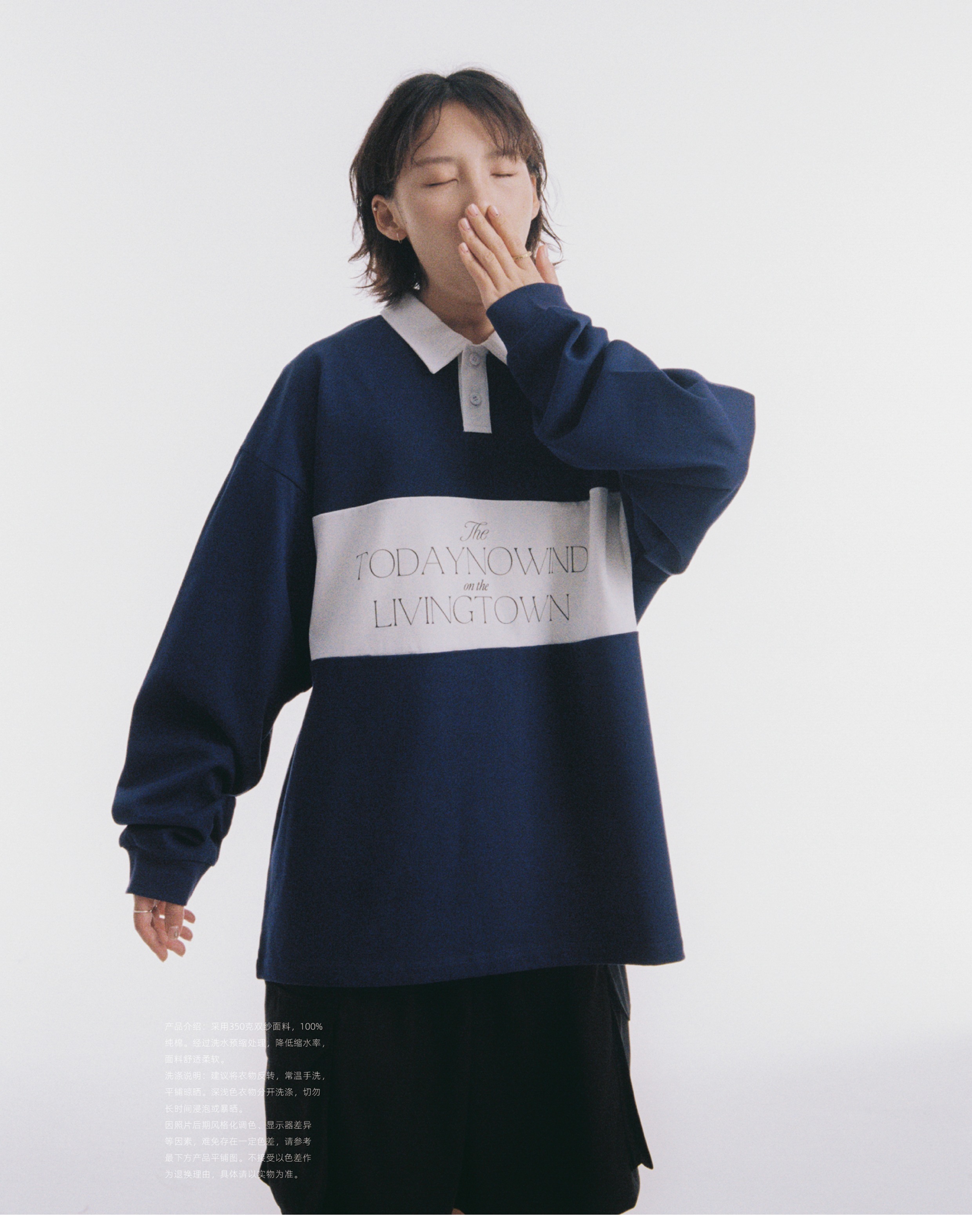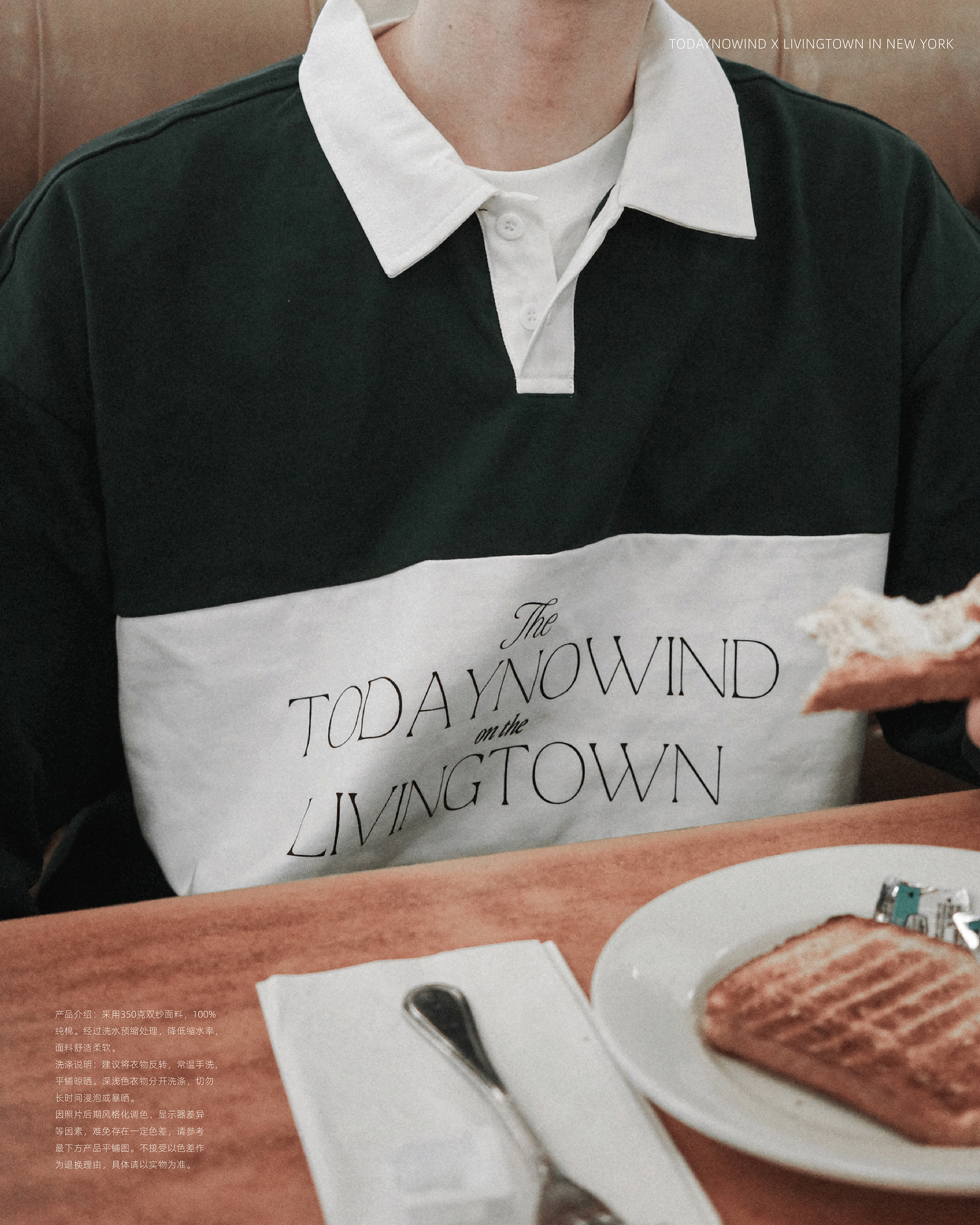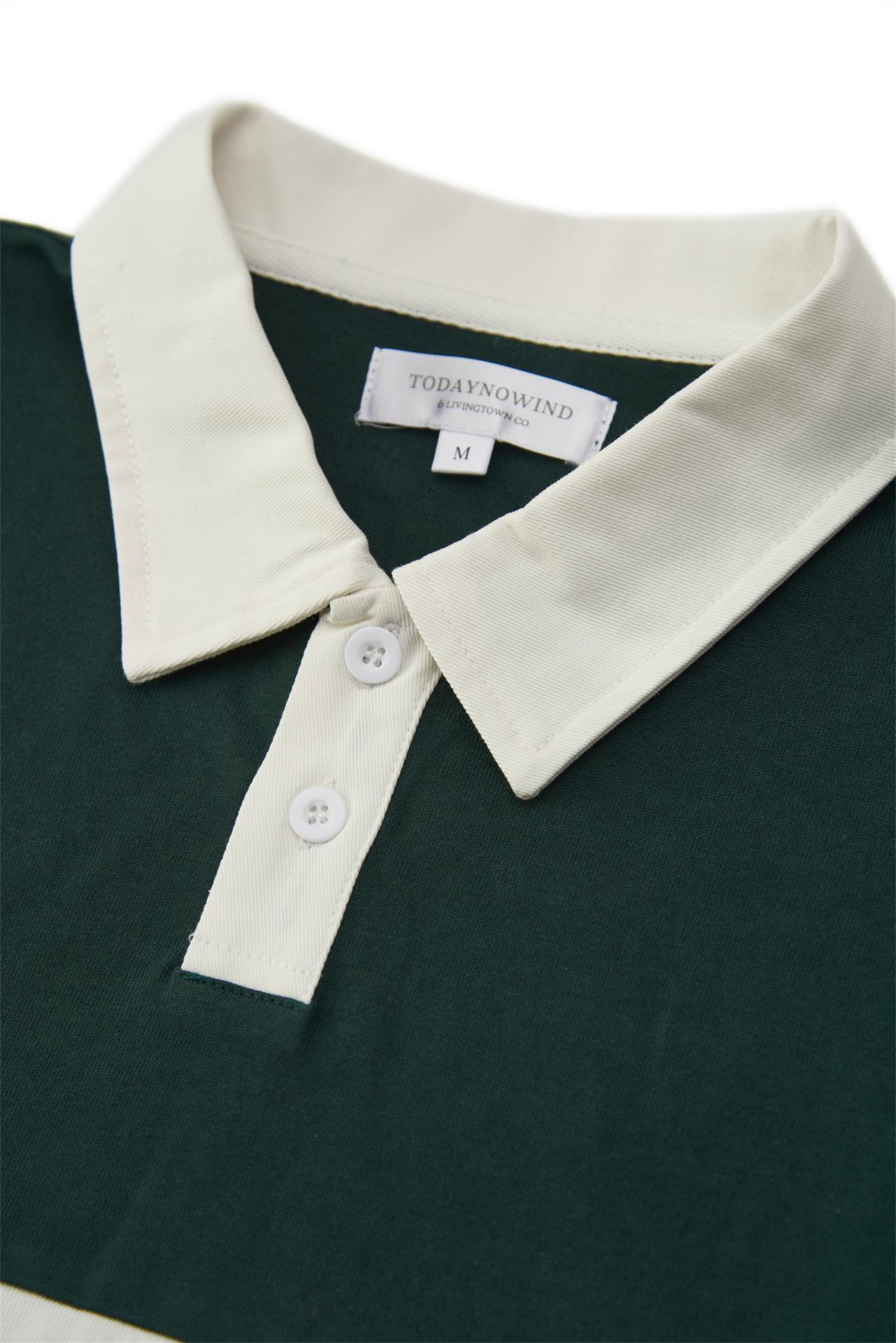 LIVINGTOWN Contrasting Color Splicing Loose Long-sleeved Polo Shirt