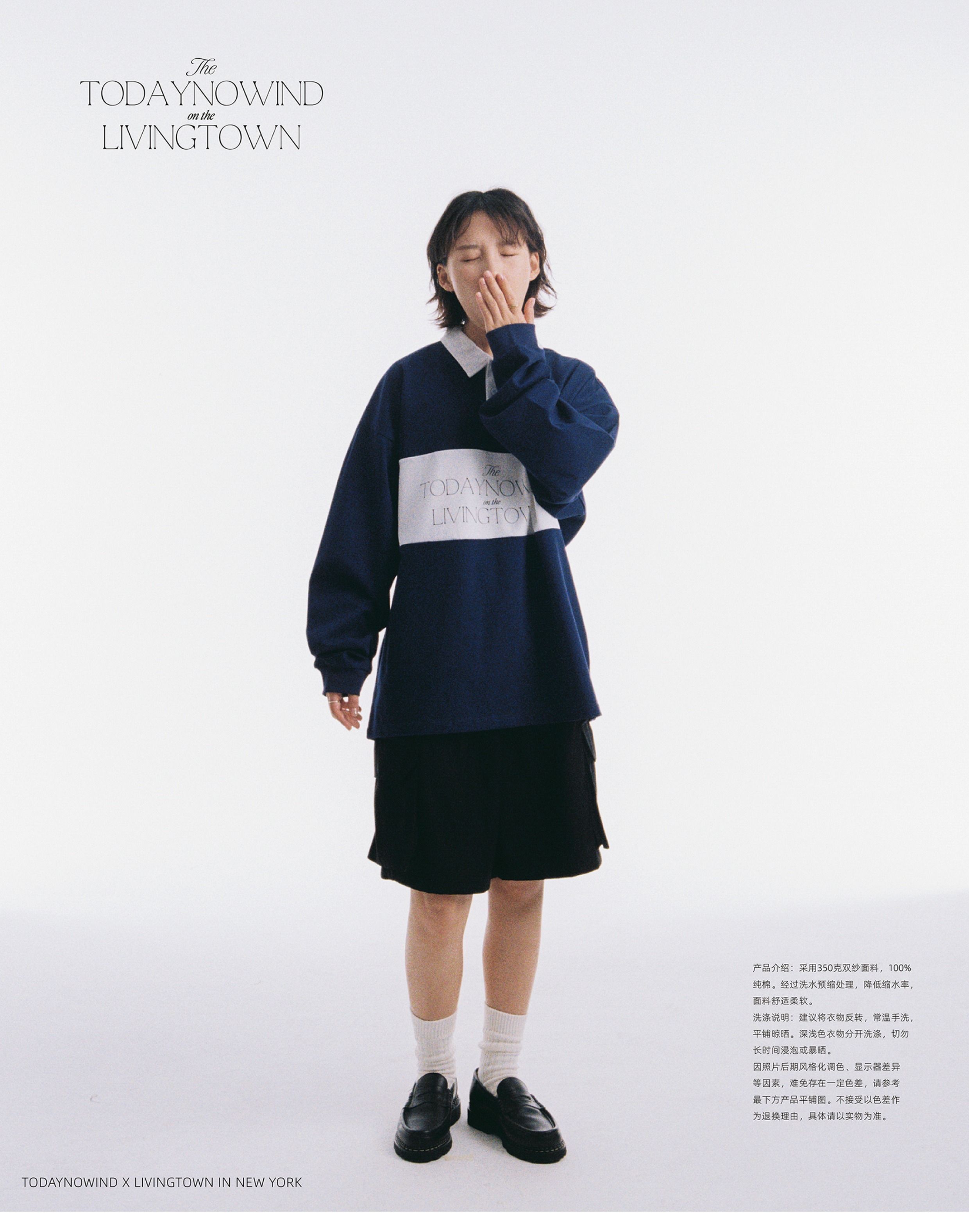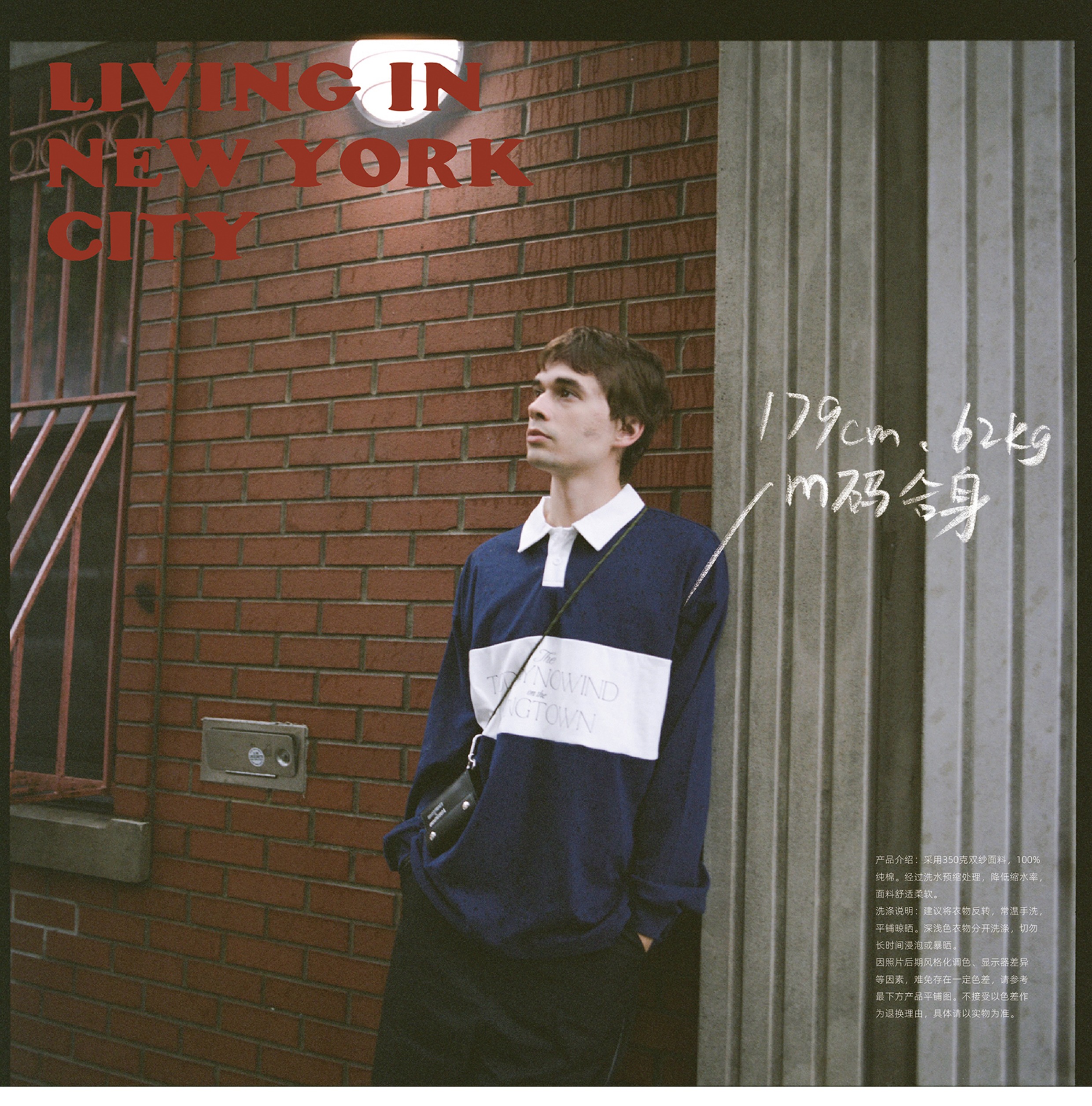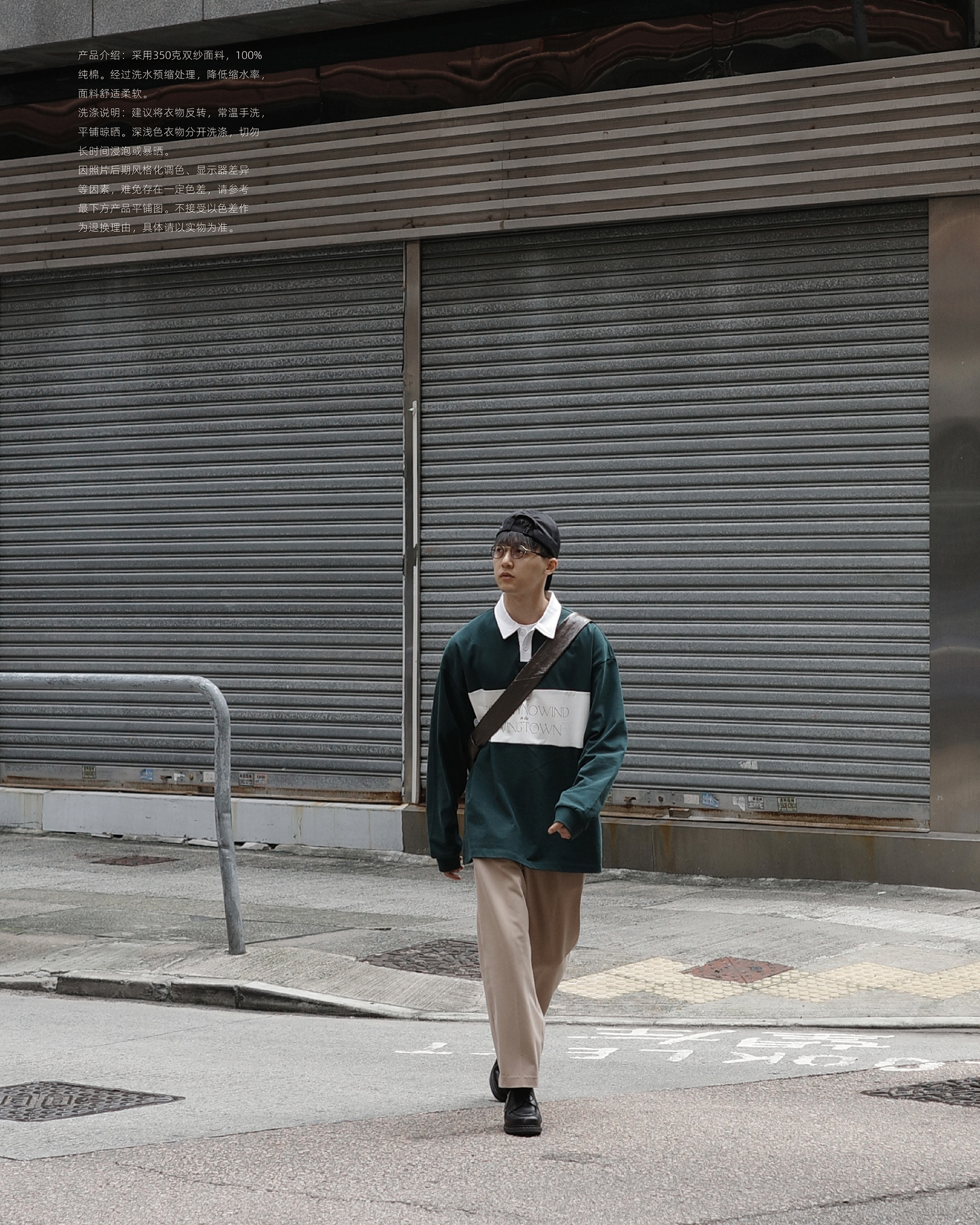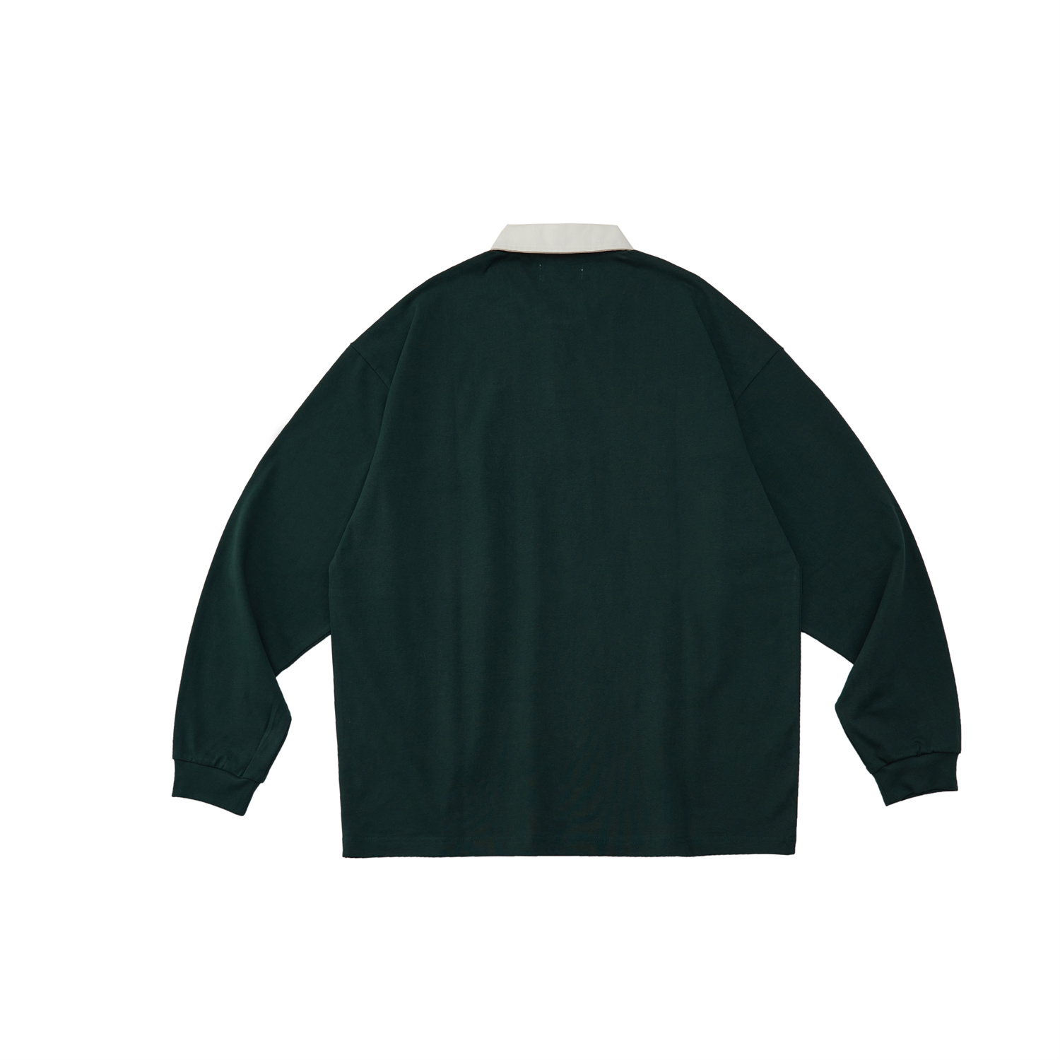 LIVINGTOWN Contrasting Color Splicing Loose Long-sleeved Polo Shirt