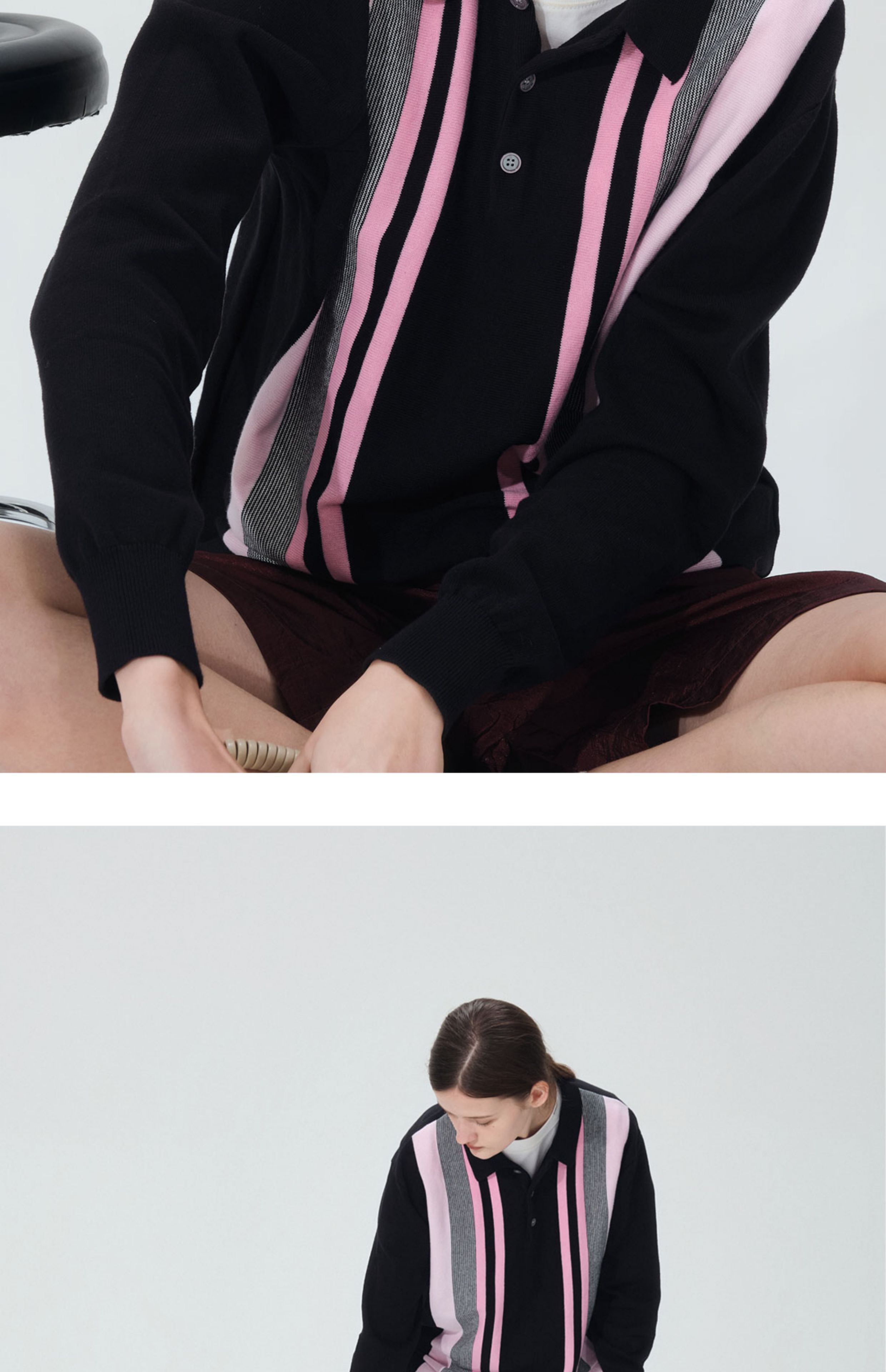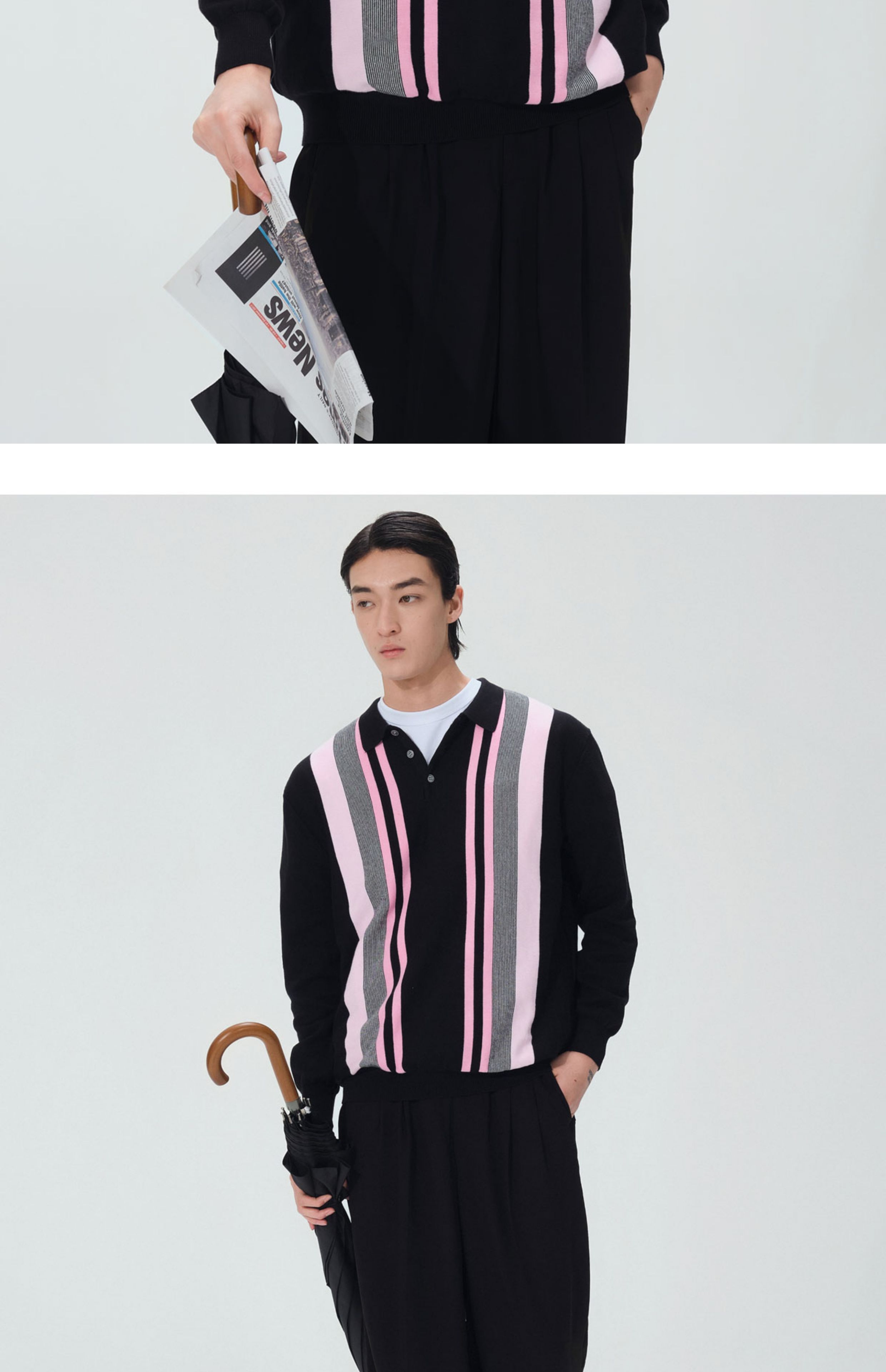 LIVINGTOWN Retro Casual Loose Contrasting Color Knitted Bottoming Shirt POLO Shirt