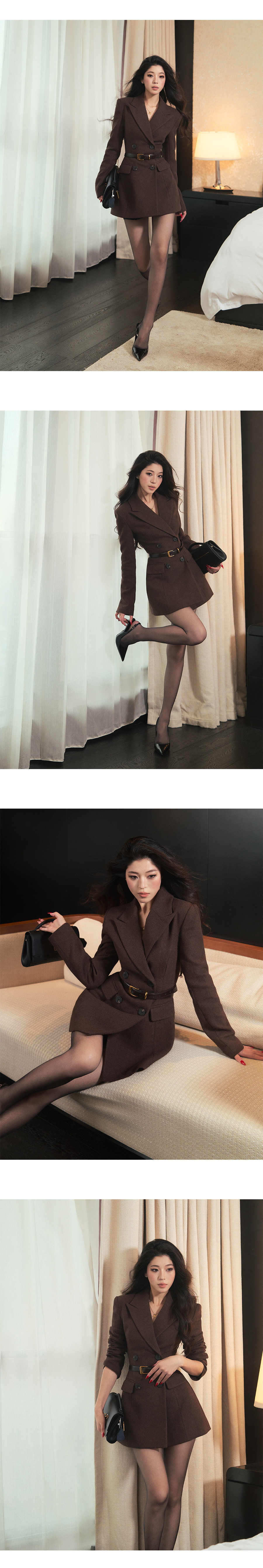 LLROGE Retro Waist Temperament Suit V-neck Dress