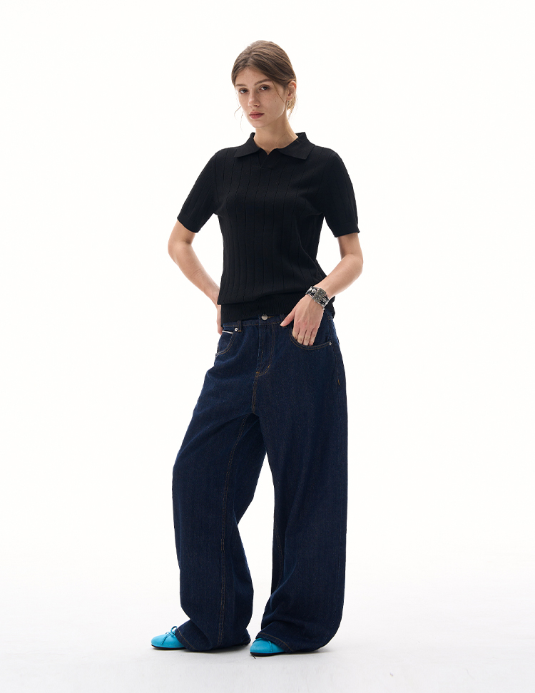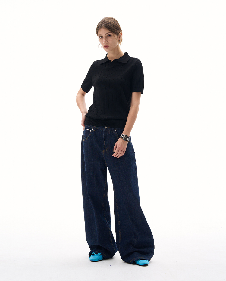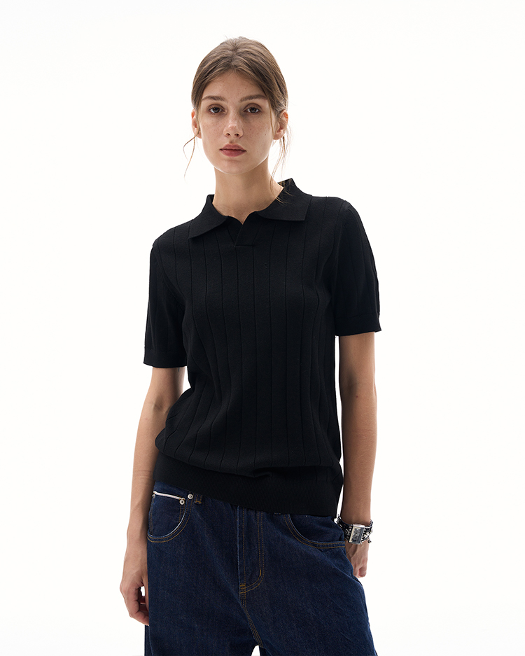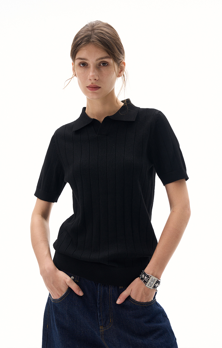 MADWITC Retro Knitted Simple Casual Polo Shirt