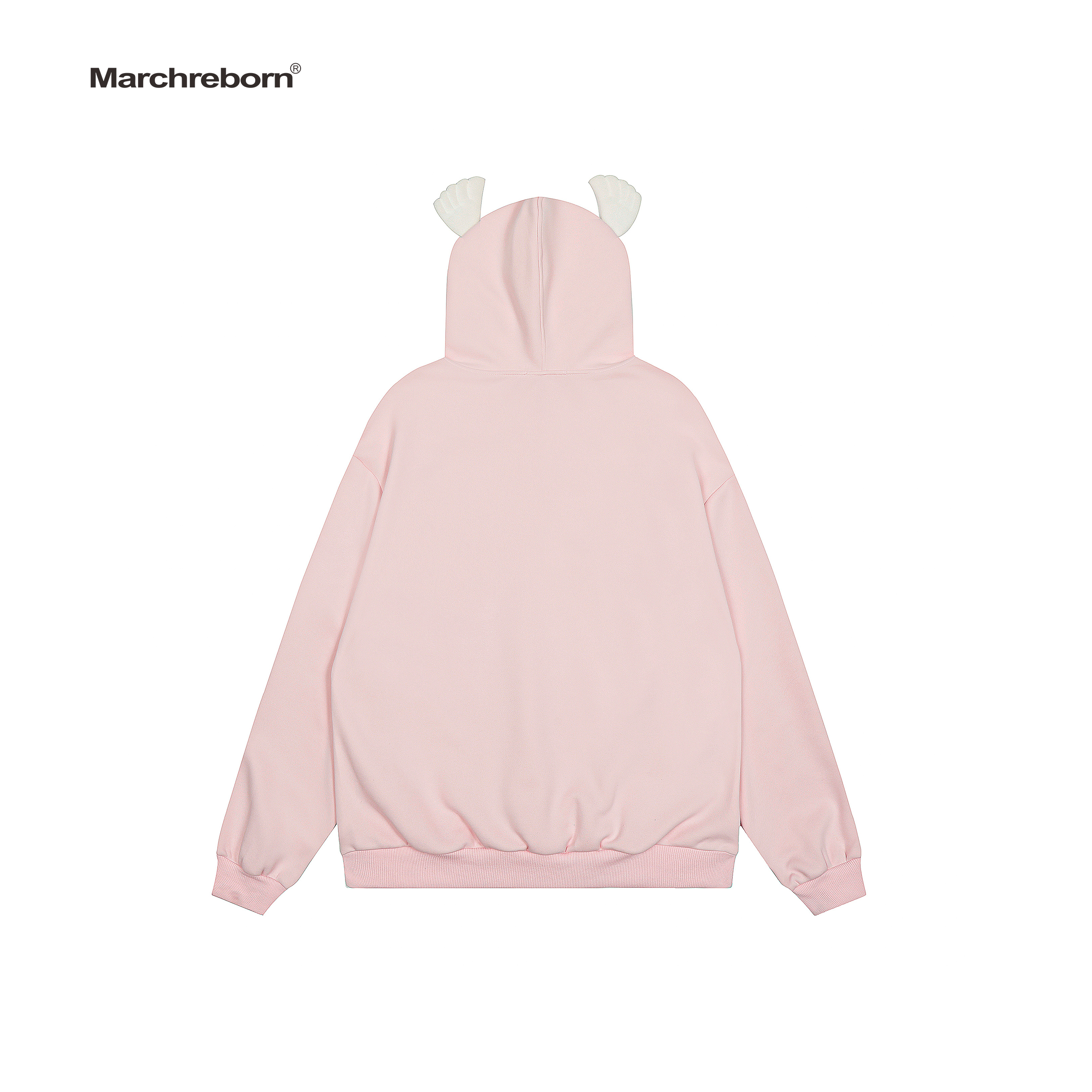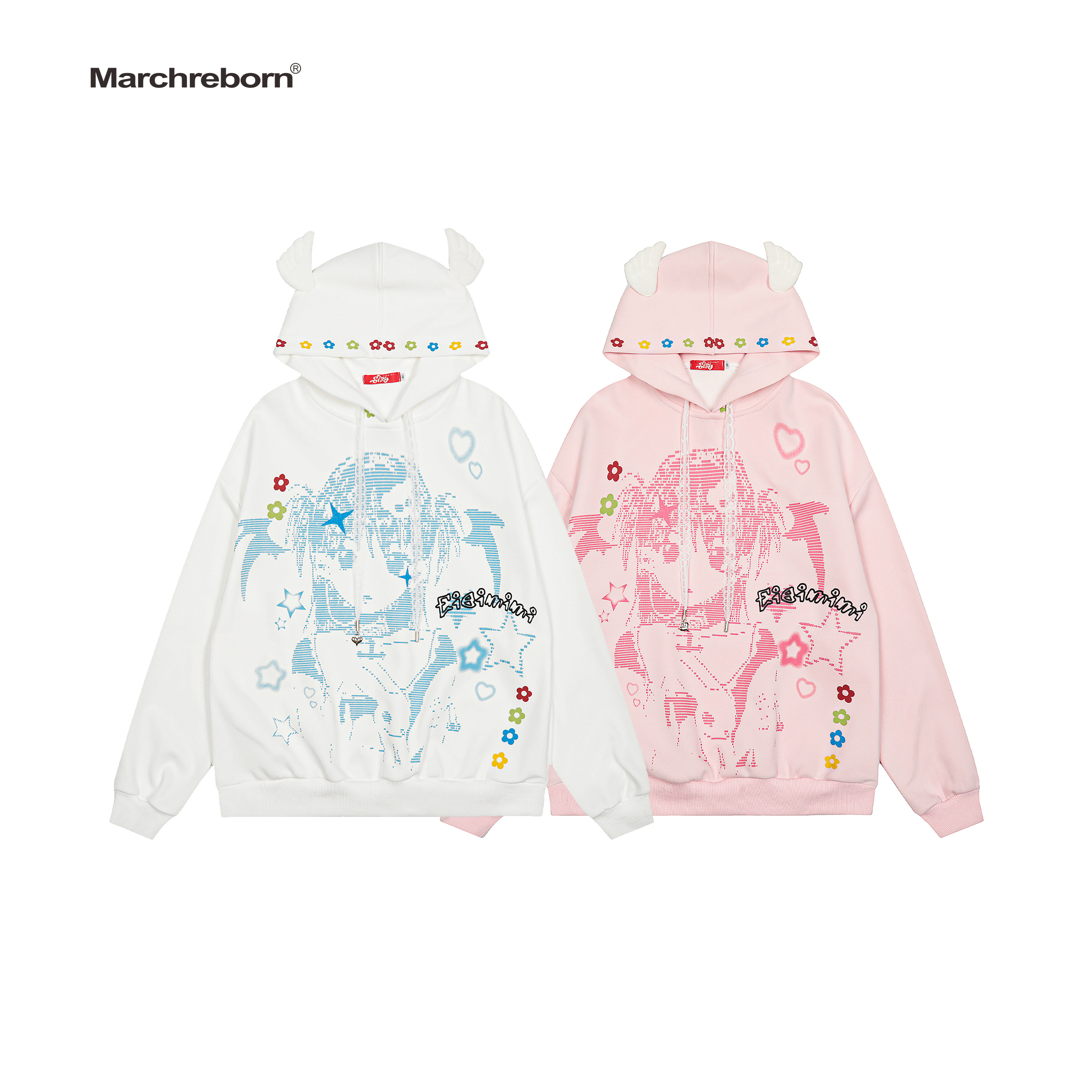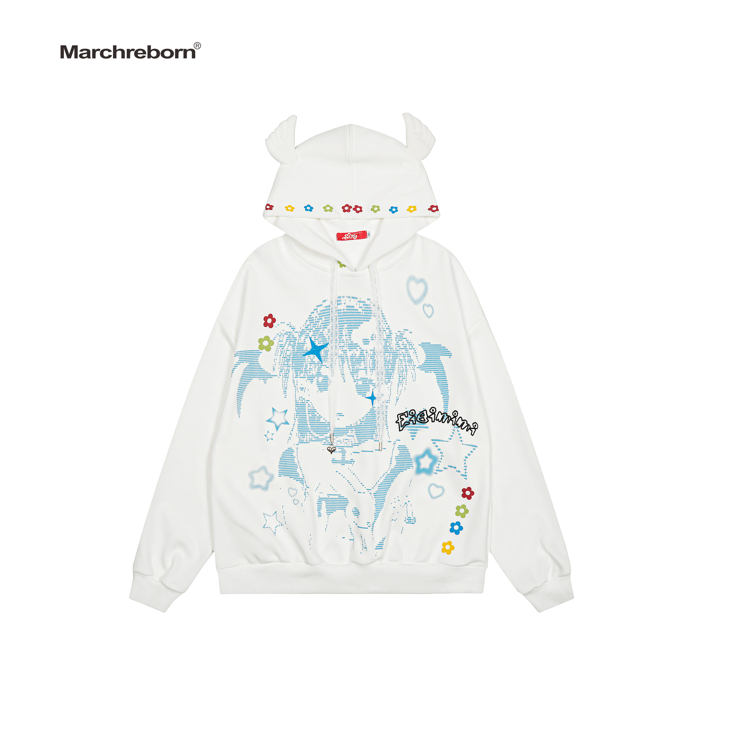 MARCH Girl Cartoon Print Wings Hooded Sweater