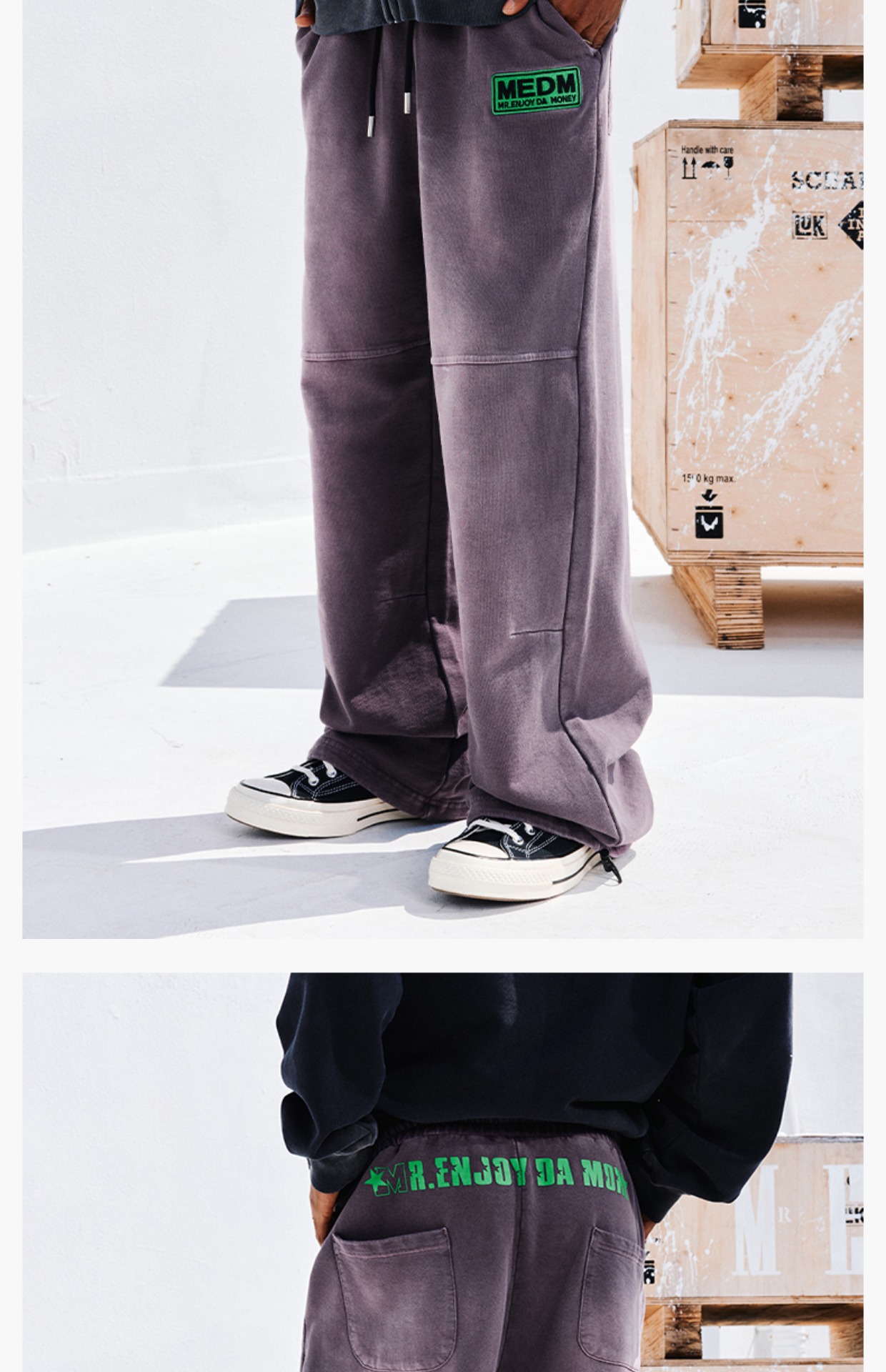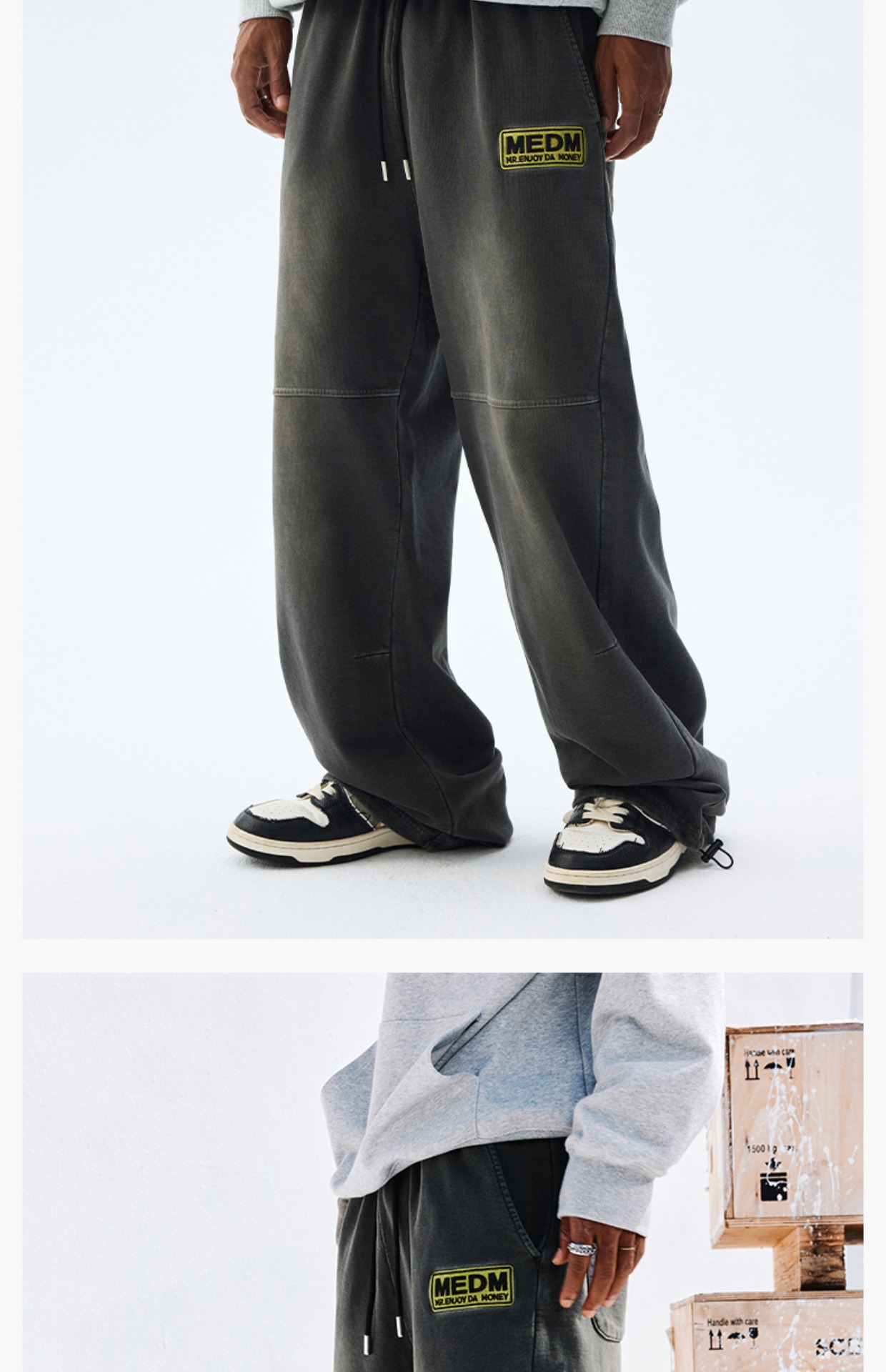 MEDMFW Washed Contrasting Color Loose Wide-leg Casual Sweatpants