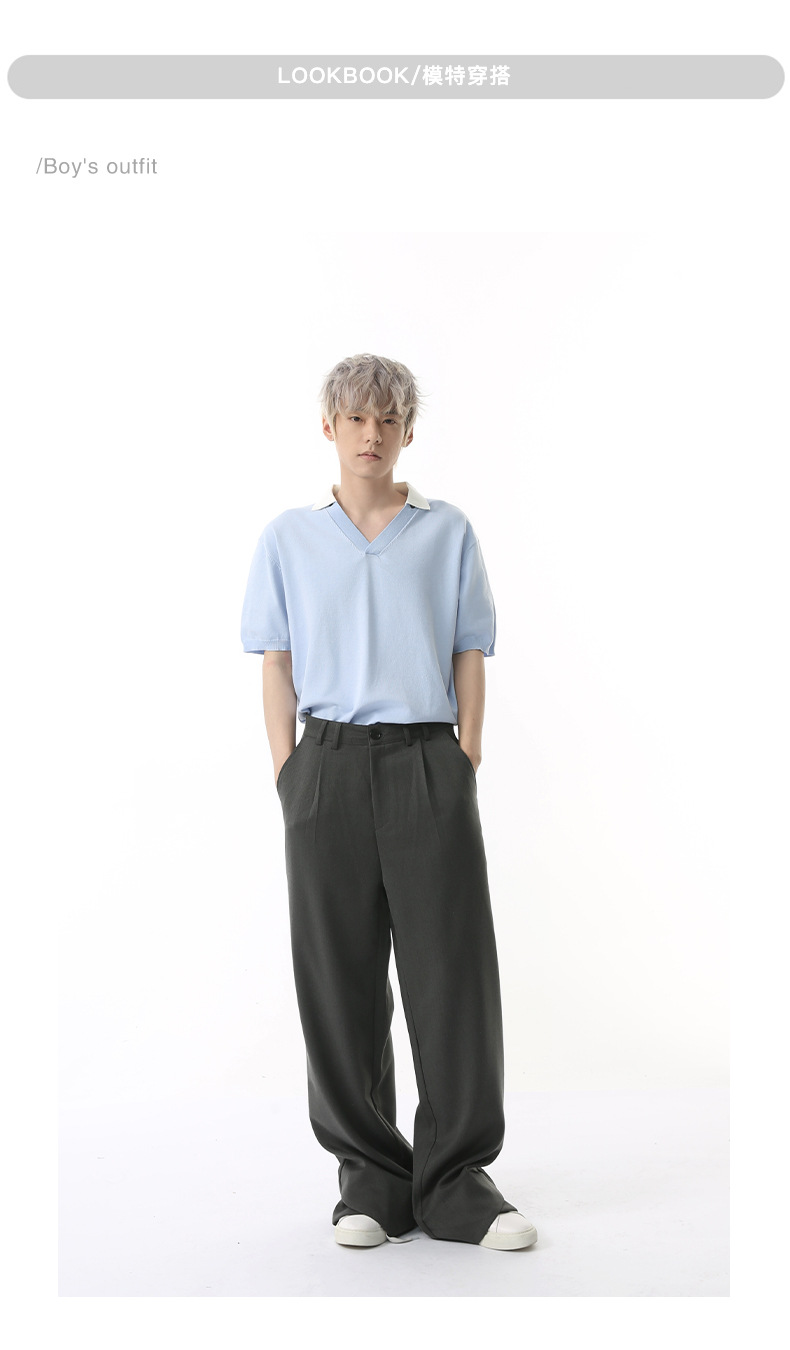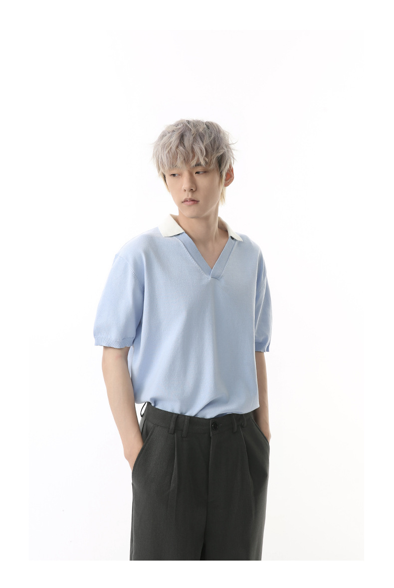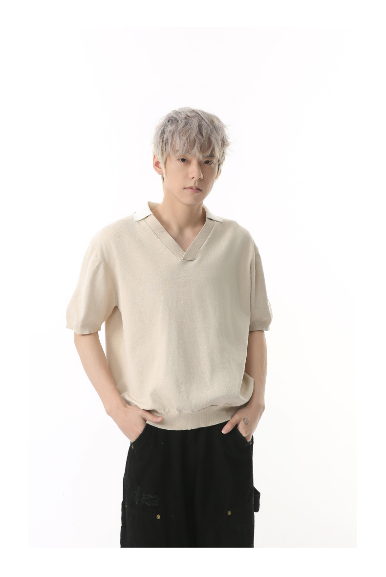MTLCLOTHES Simple V-neck Knitted Polo Shirt