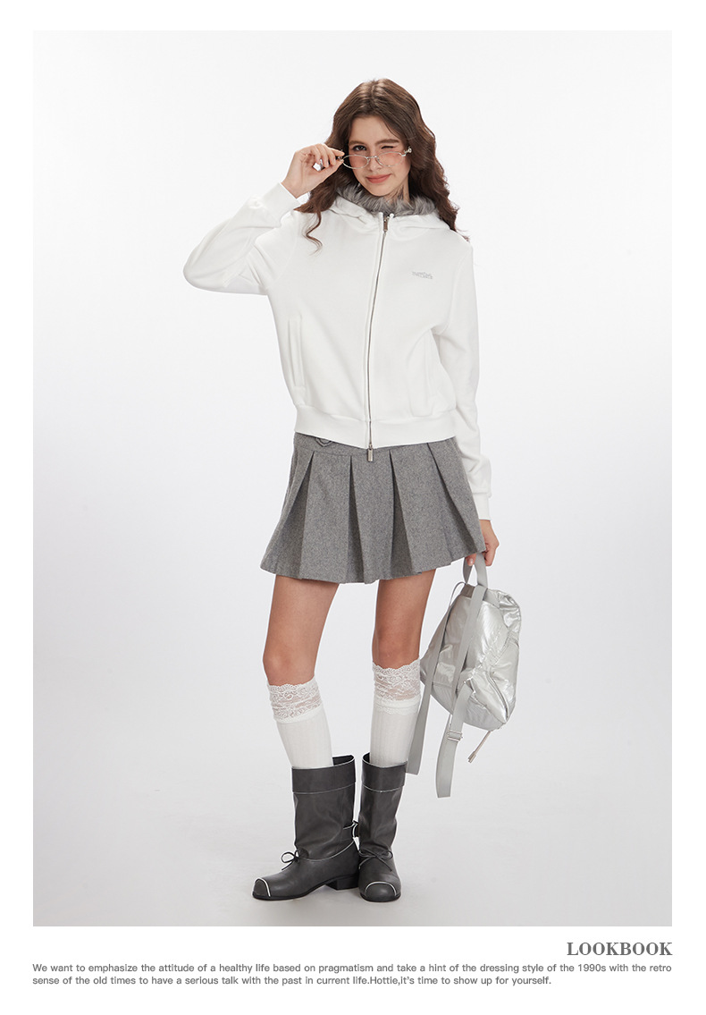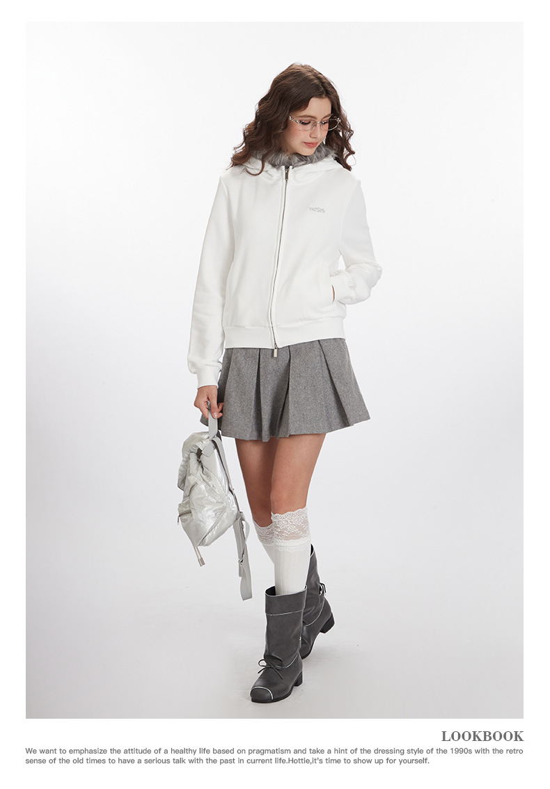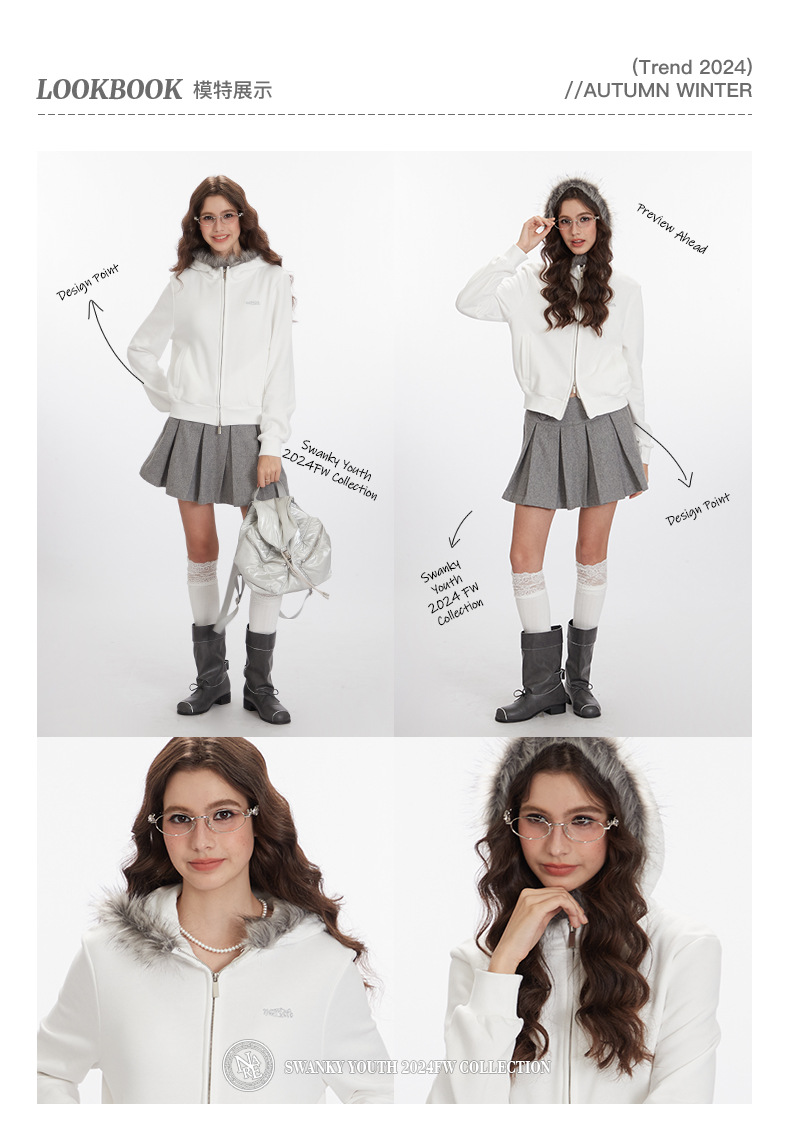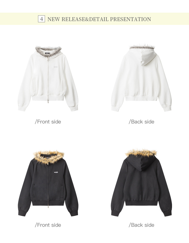 Nariele Fur Hood Embroidery Design Short Sweatshirt Zipper Hoodie