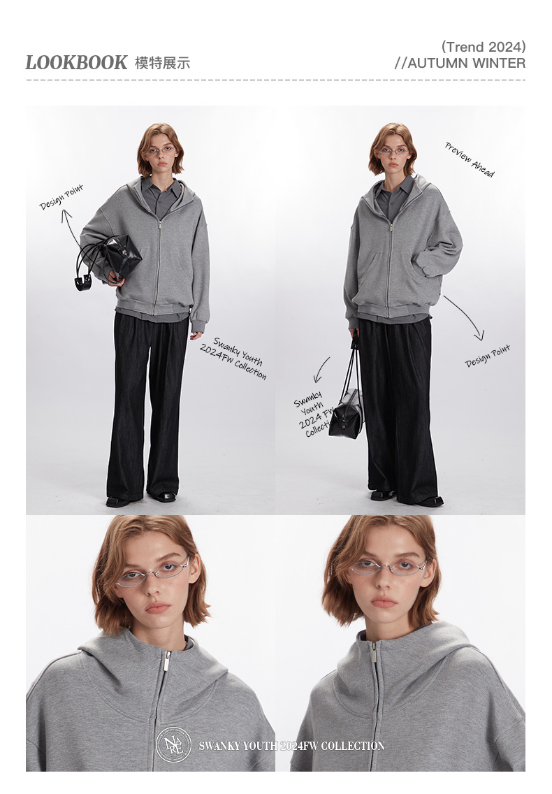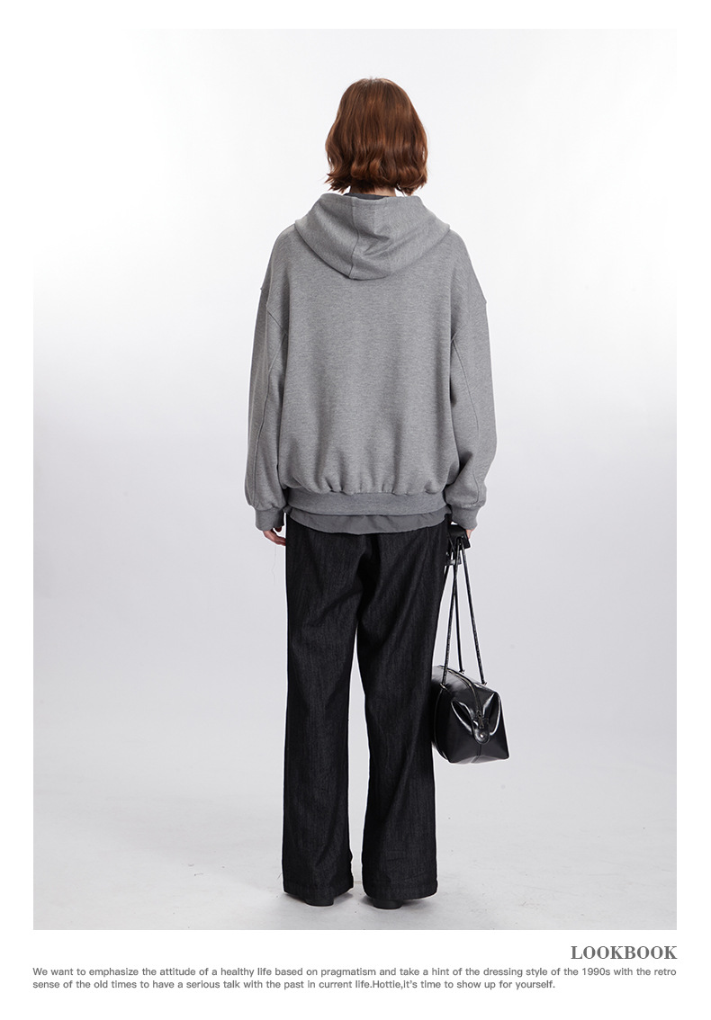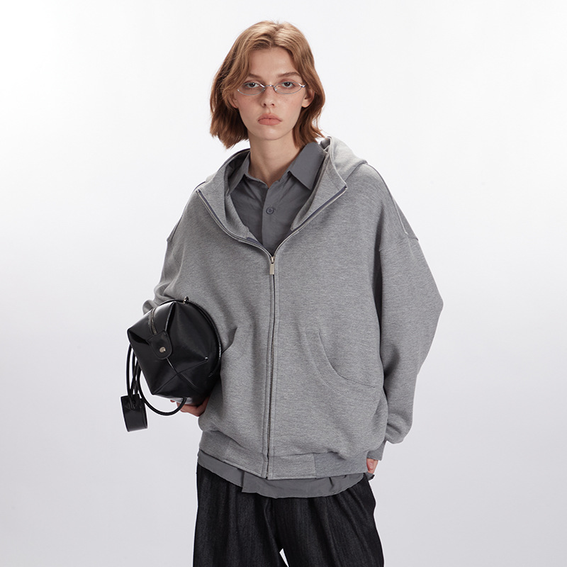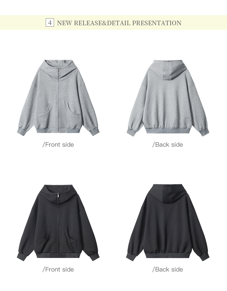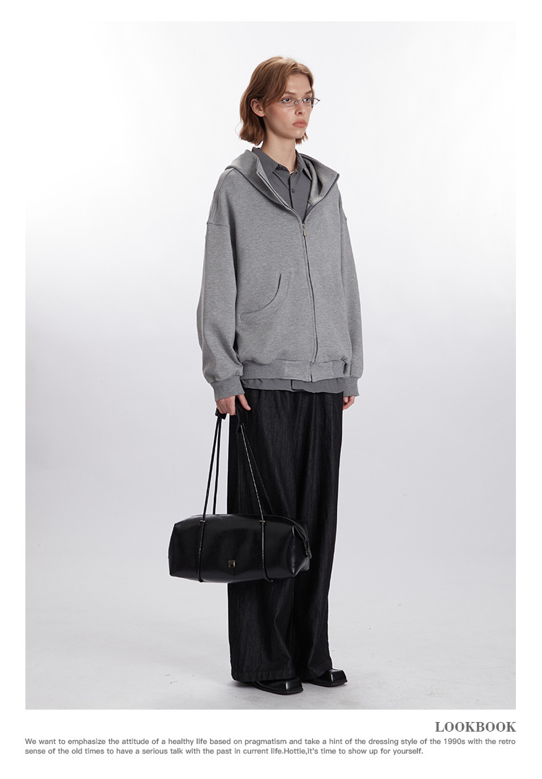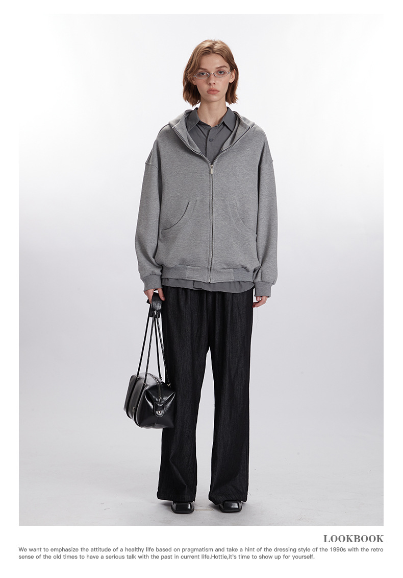 Nariele Retro Style Heavy Hoodie Trendy Zipper Solid Color Jackets
