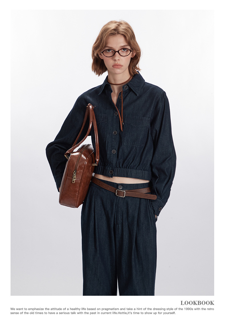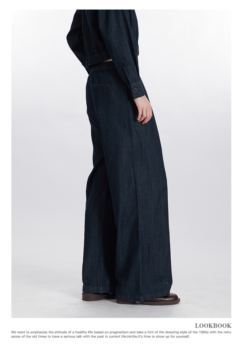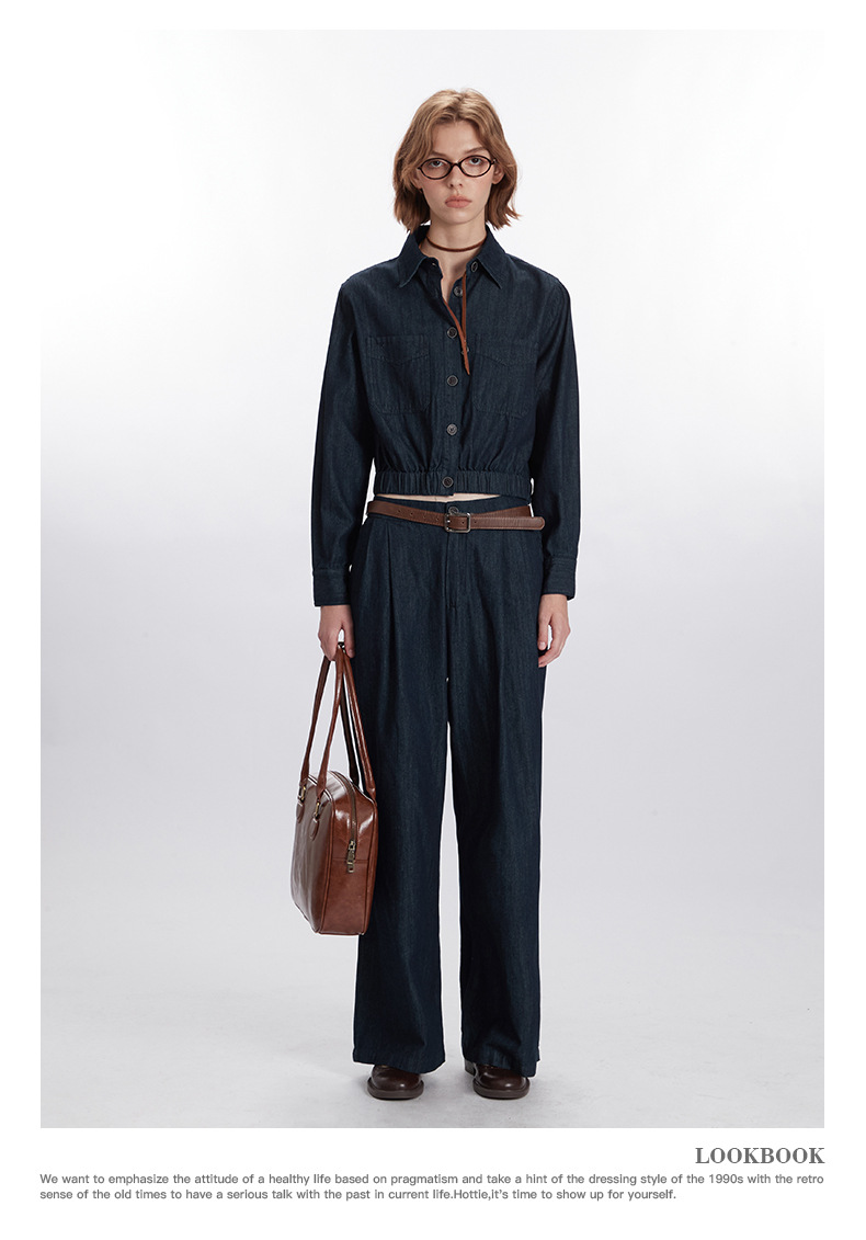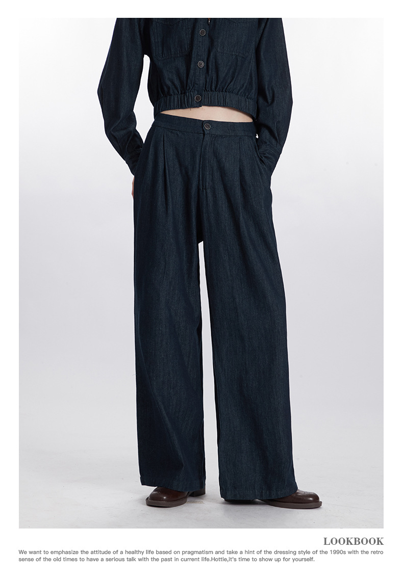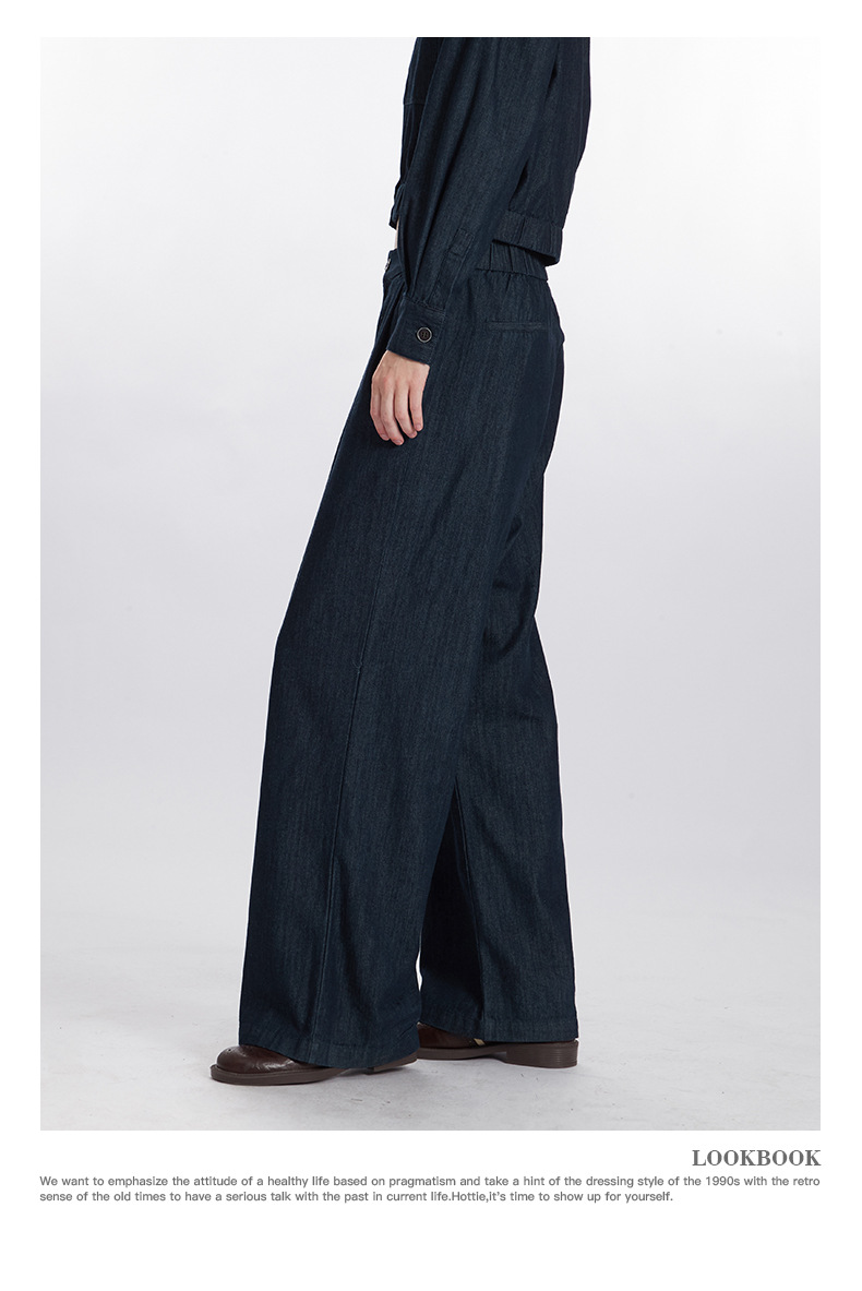 Nariele Womenswear Trendy Chic Wears Cropped Jacket Denim Wide-leg Pants Set