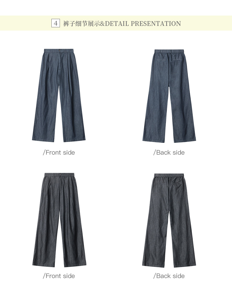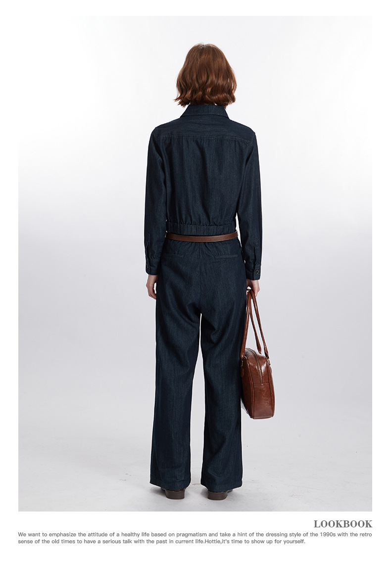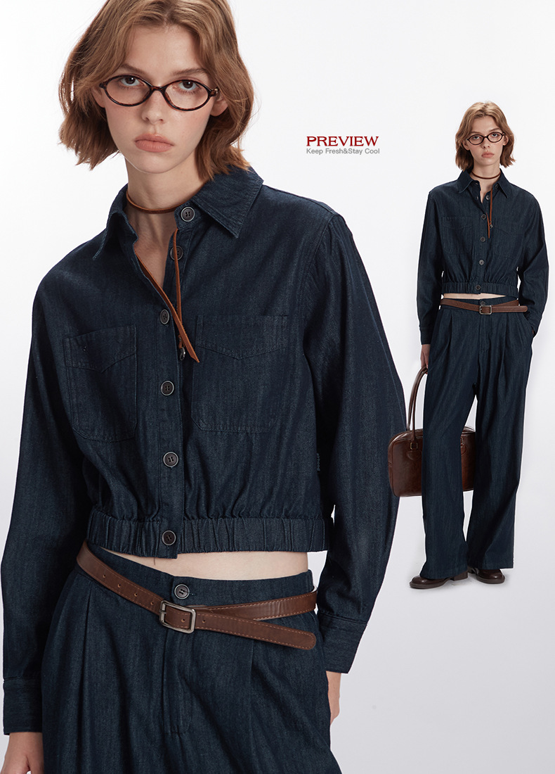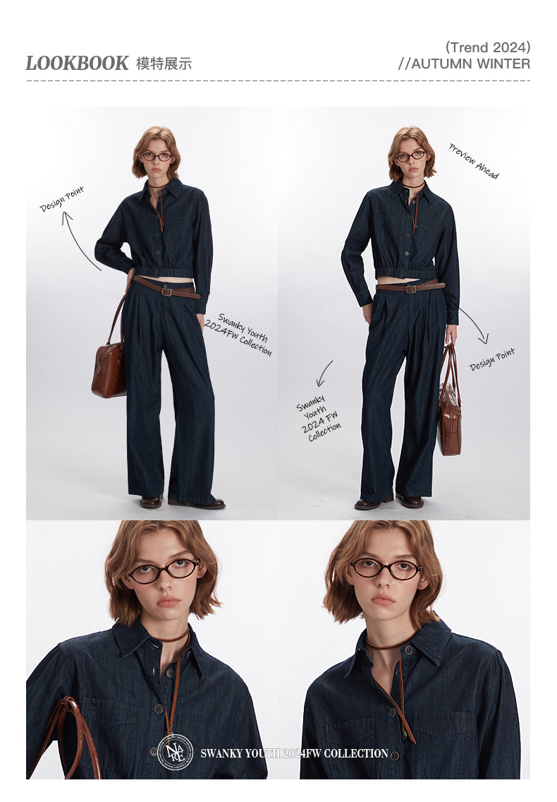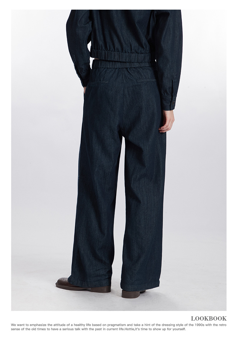 Nariele Womenswear Trendy Chic Wears Cropped Jacket Denim Wide-leg Pants Set