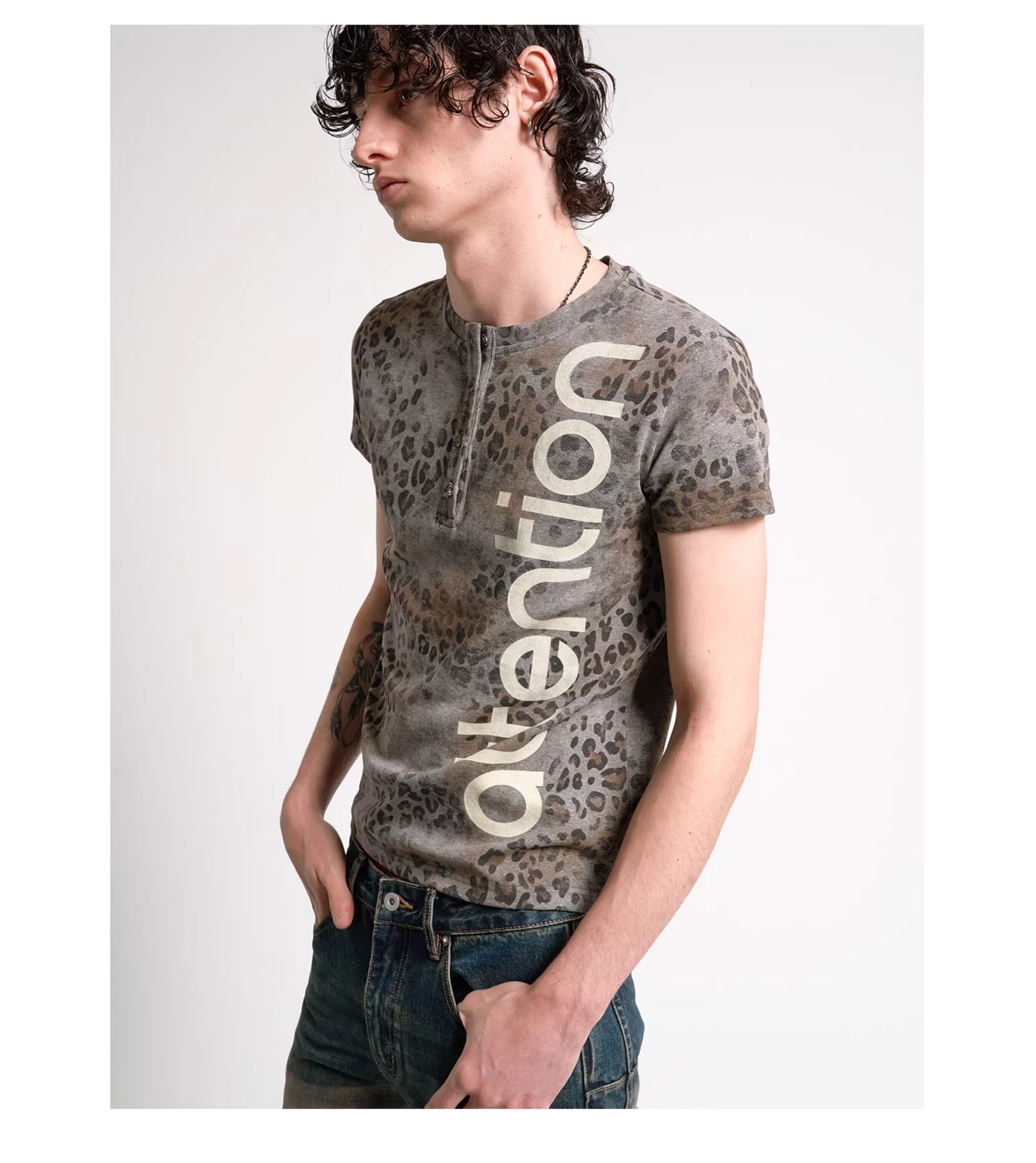 No E Mosen Digital Printed Front Shoulder Tee