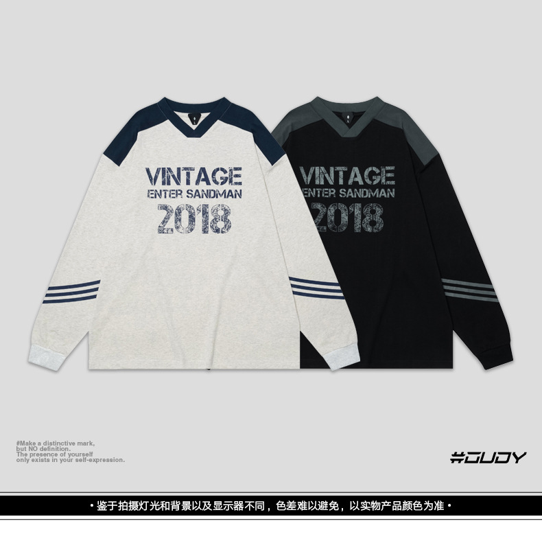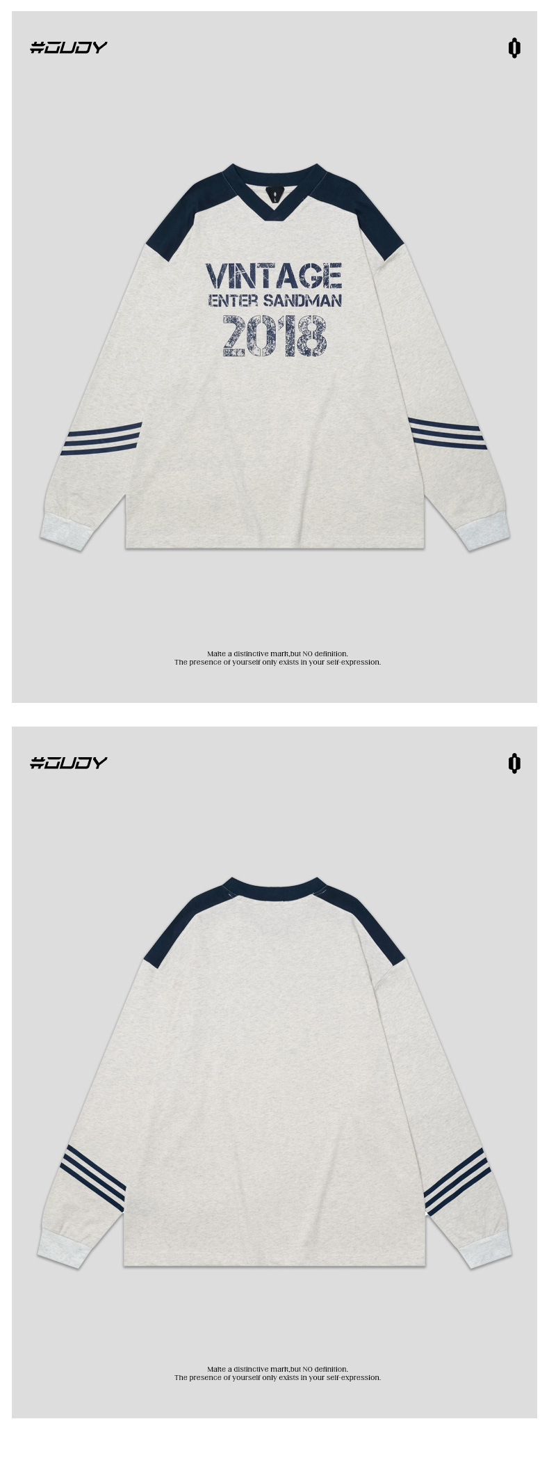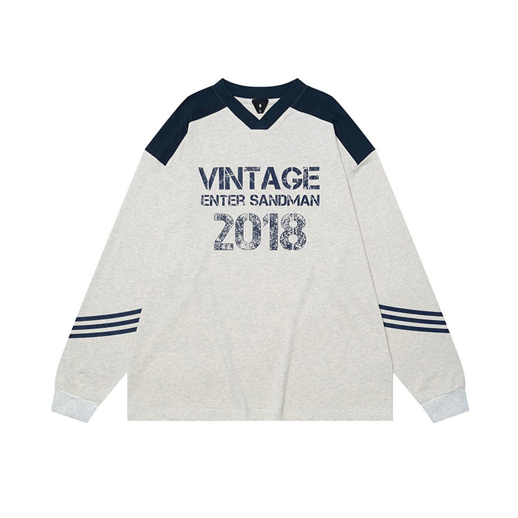 OVDY Jersey Retro Print Small V-Neck Long Sleeve Sweatshirt