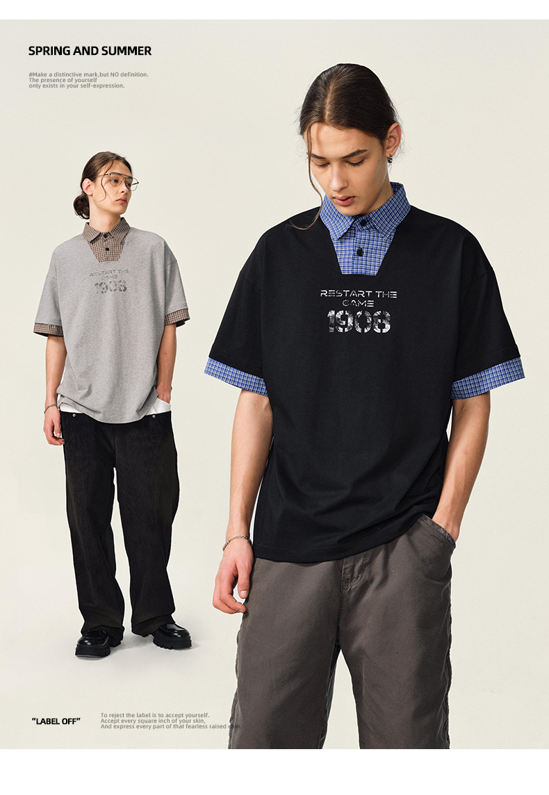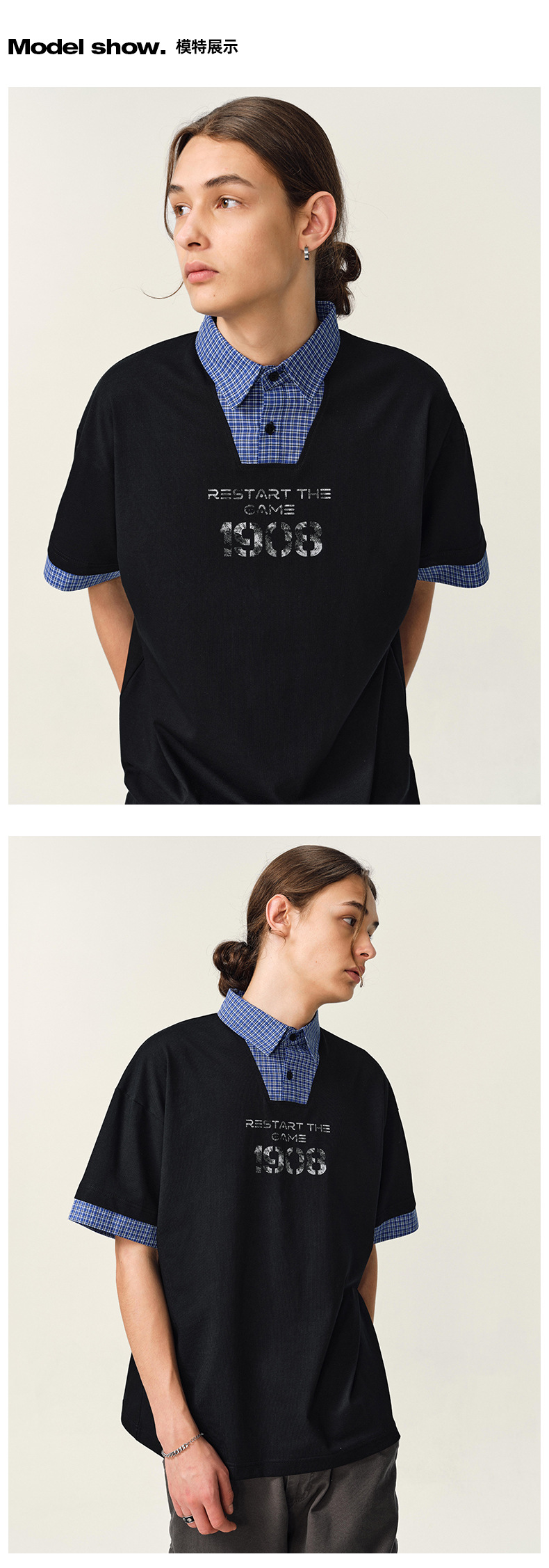 OVDY Retro Loose Contrasting Color Lapel Polo Shirt