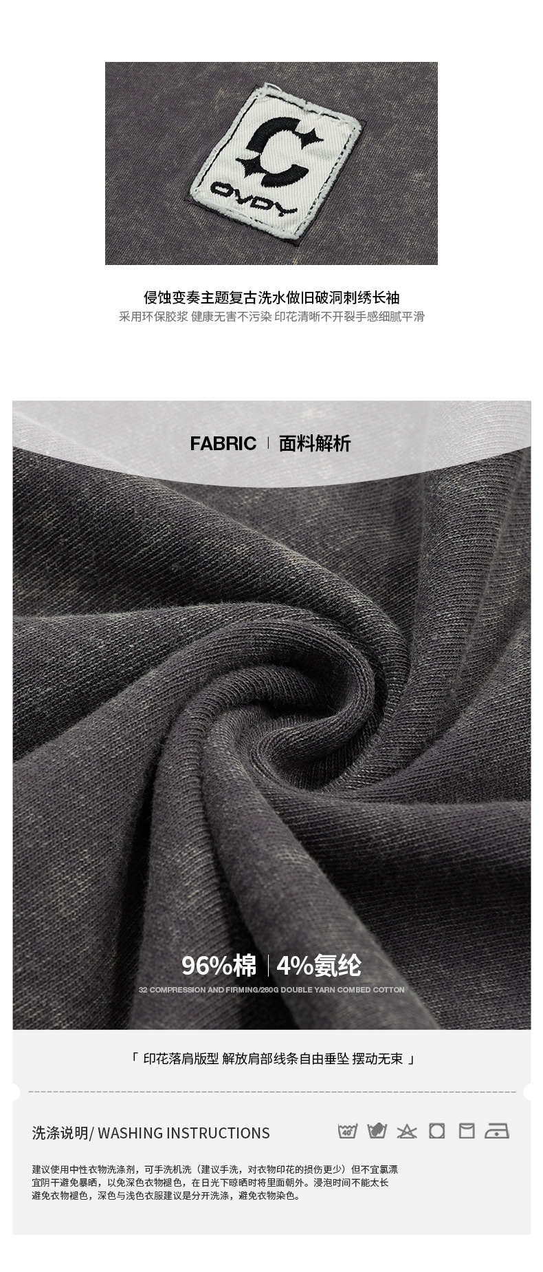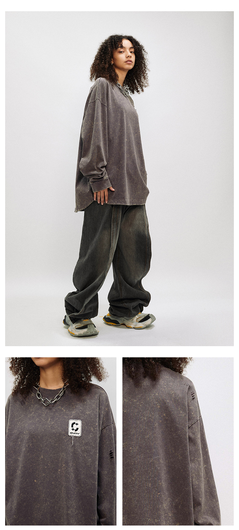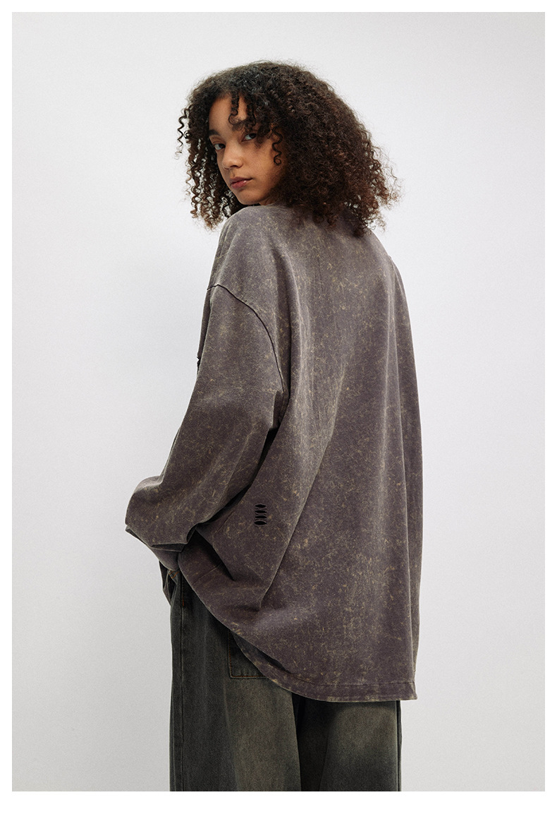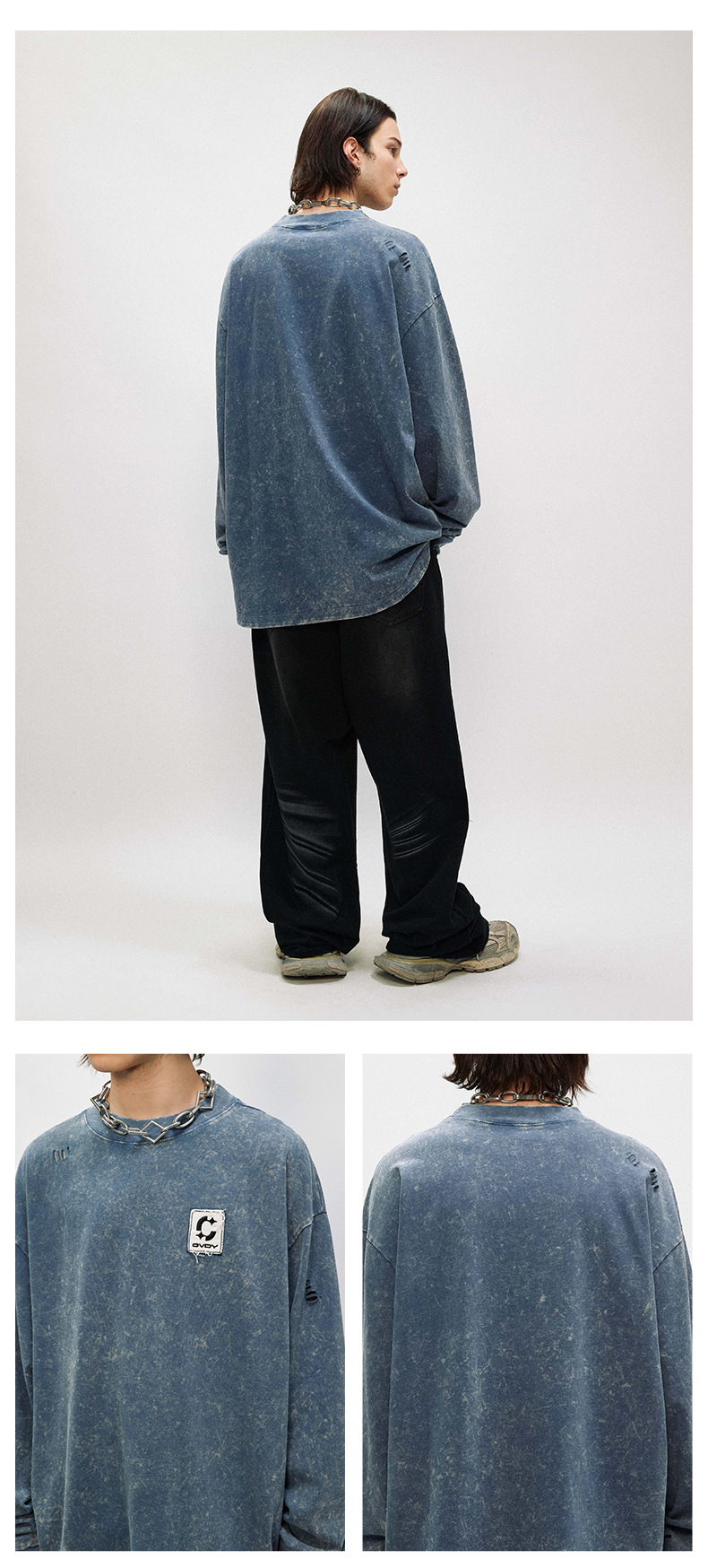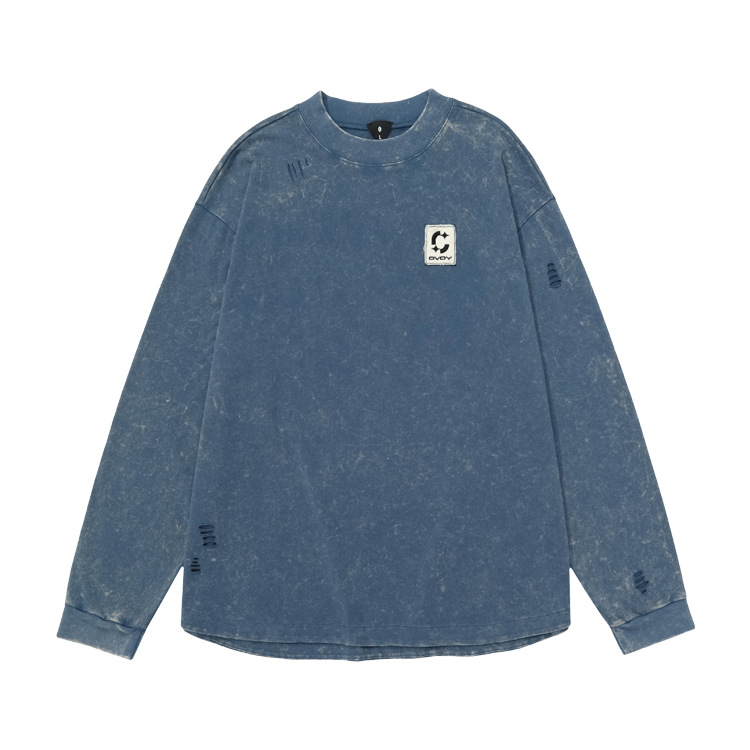 #OVDY Vintage Wash Distressed Ripped Embroidery Long Sleeve Sweatshirt