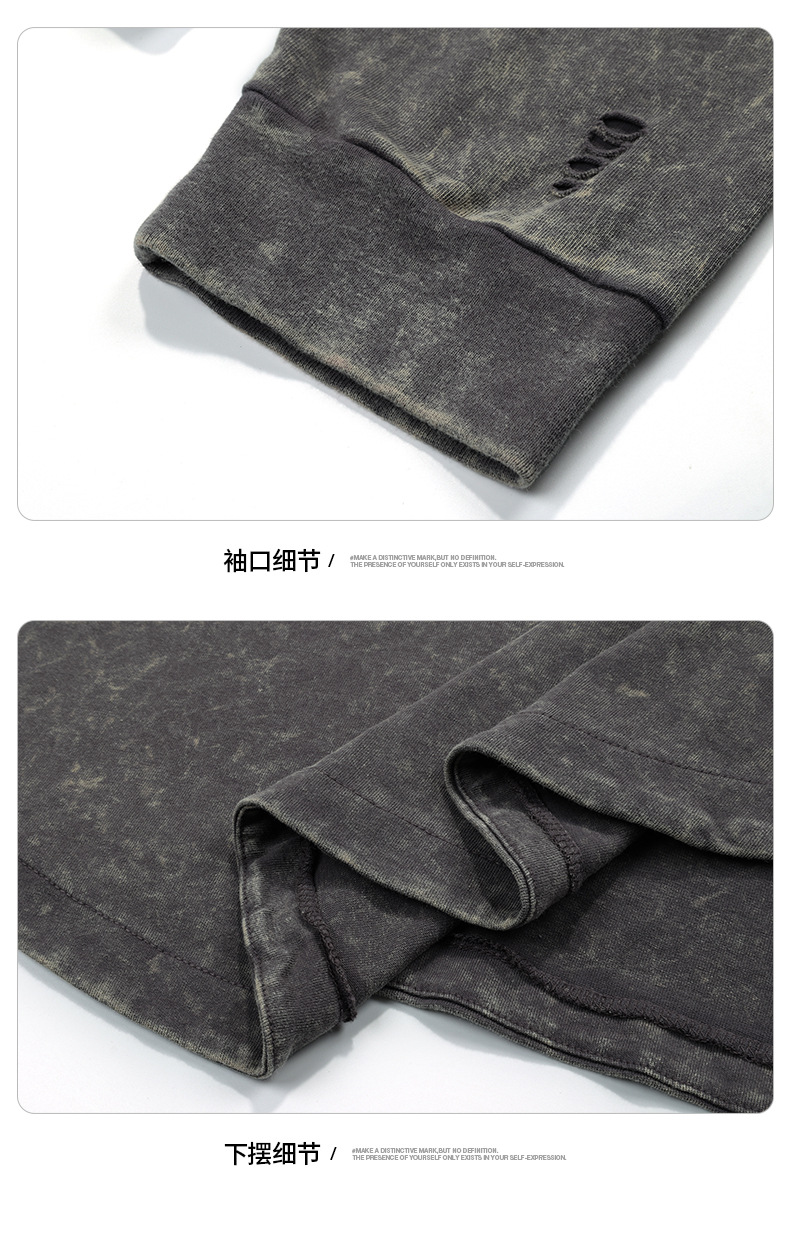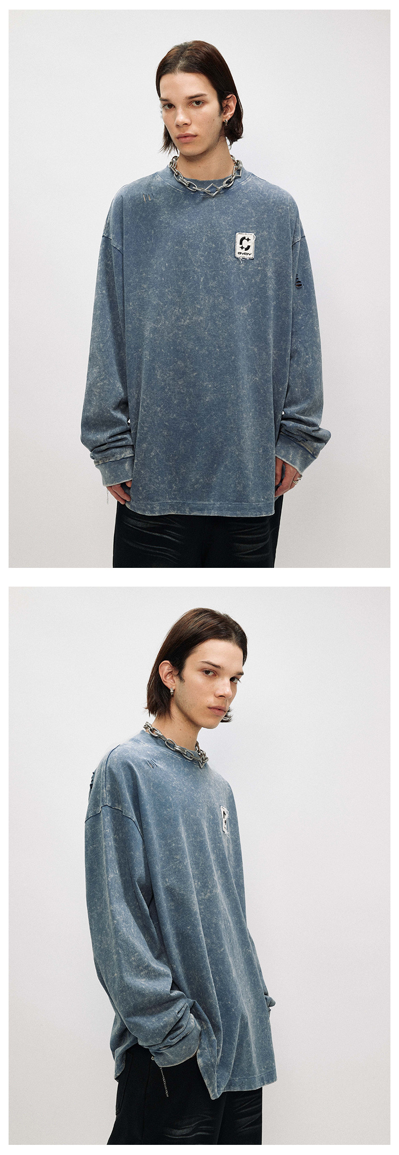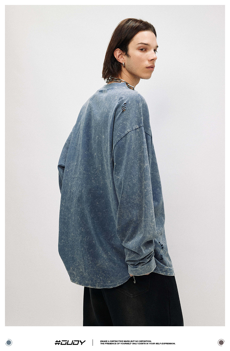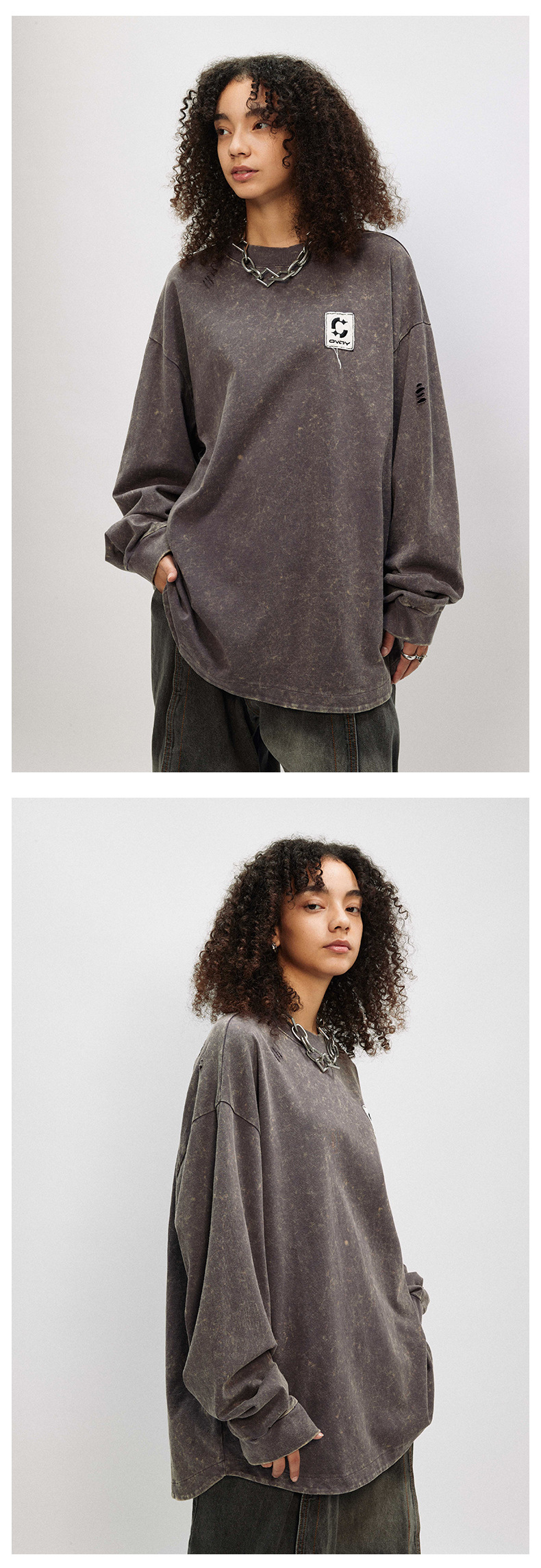 #OVDY Vintage Wash Distressed Ripped Embroidery Long Sleeve Sweatshirt