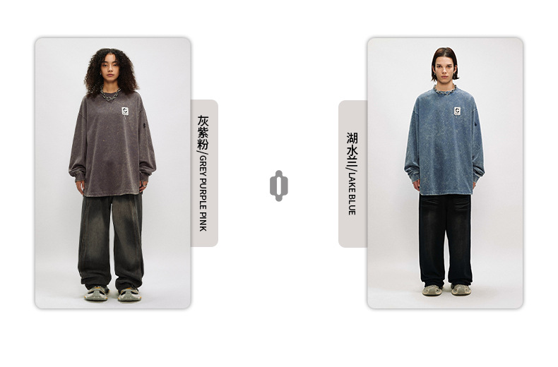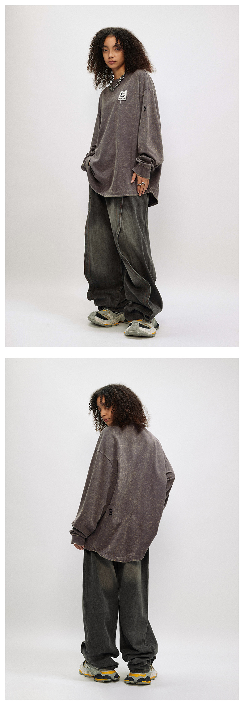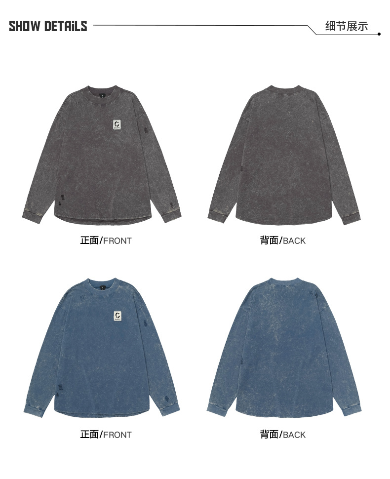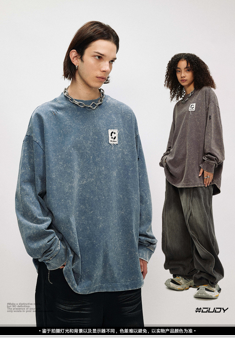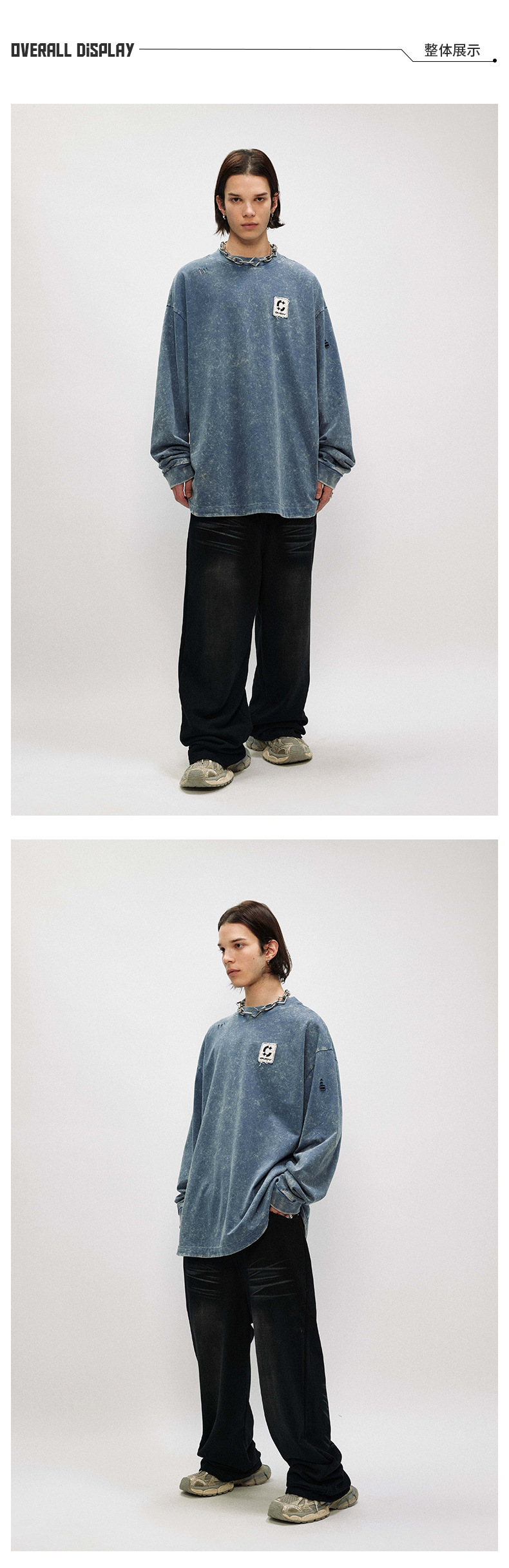 #OVDY Vintage Wash Distressed Ripped Embroidery Long Sleeve Sweatshirt