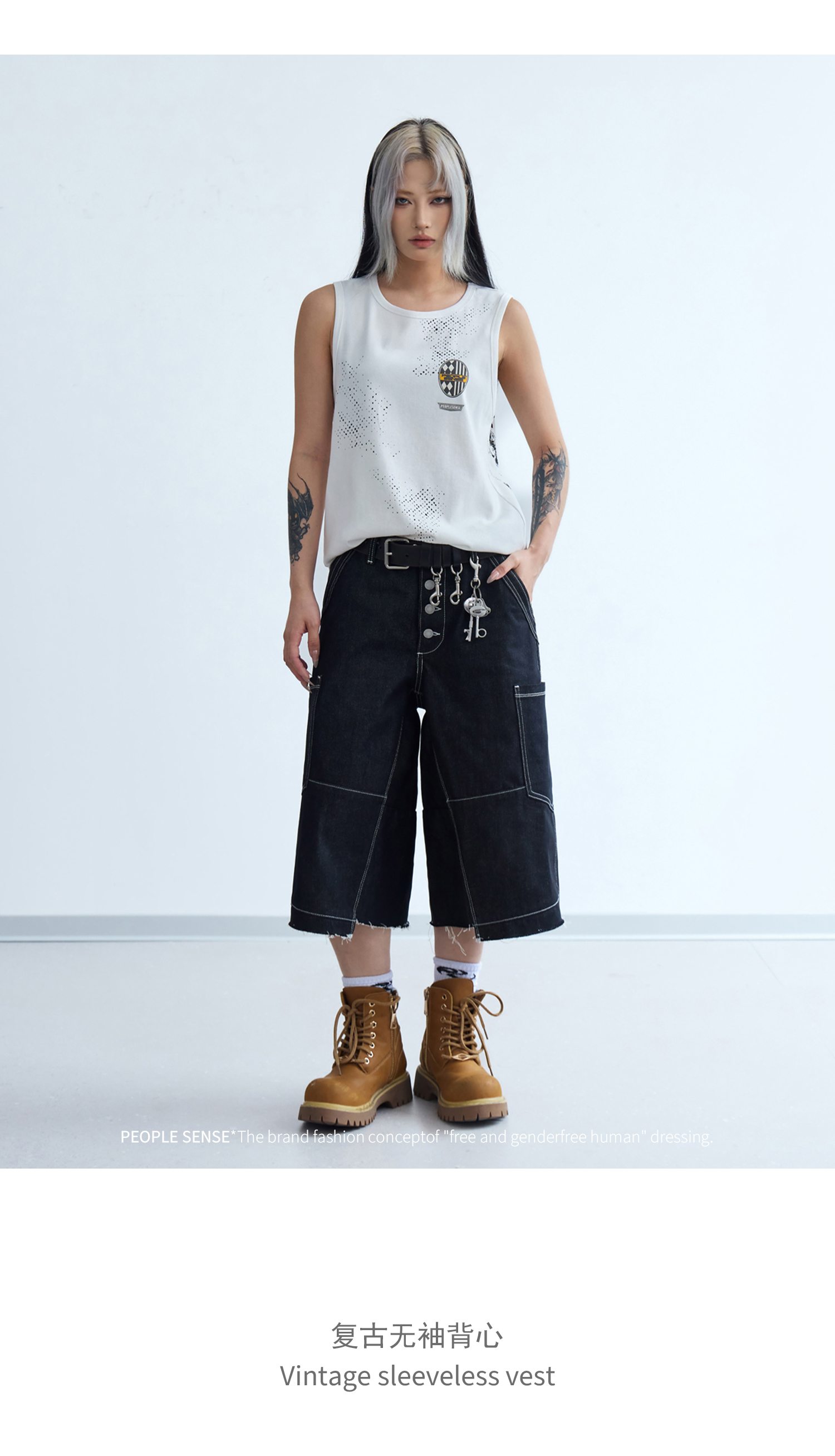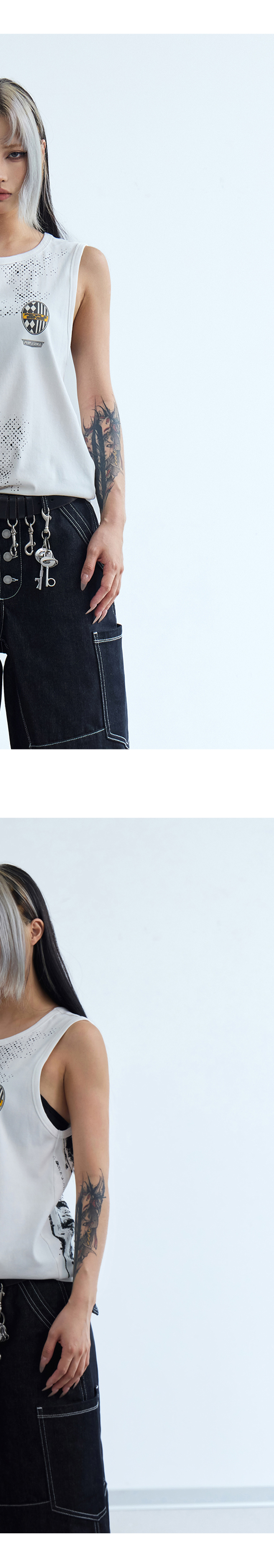 PEOPLESENSE Badge Print Old Primer Sleeveless Vest