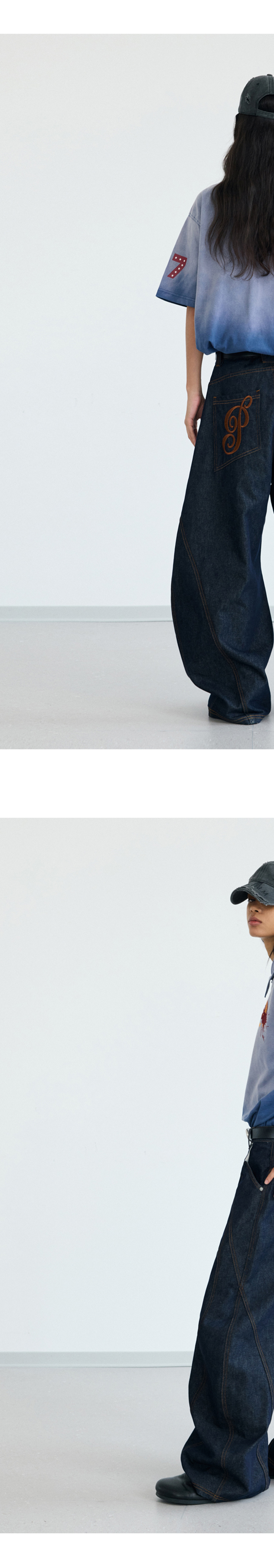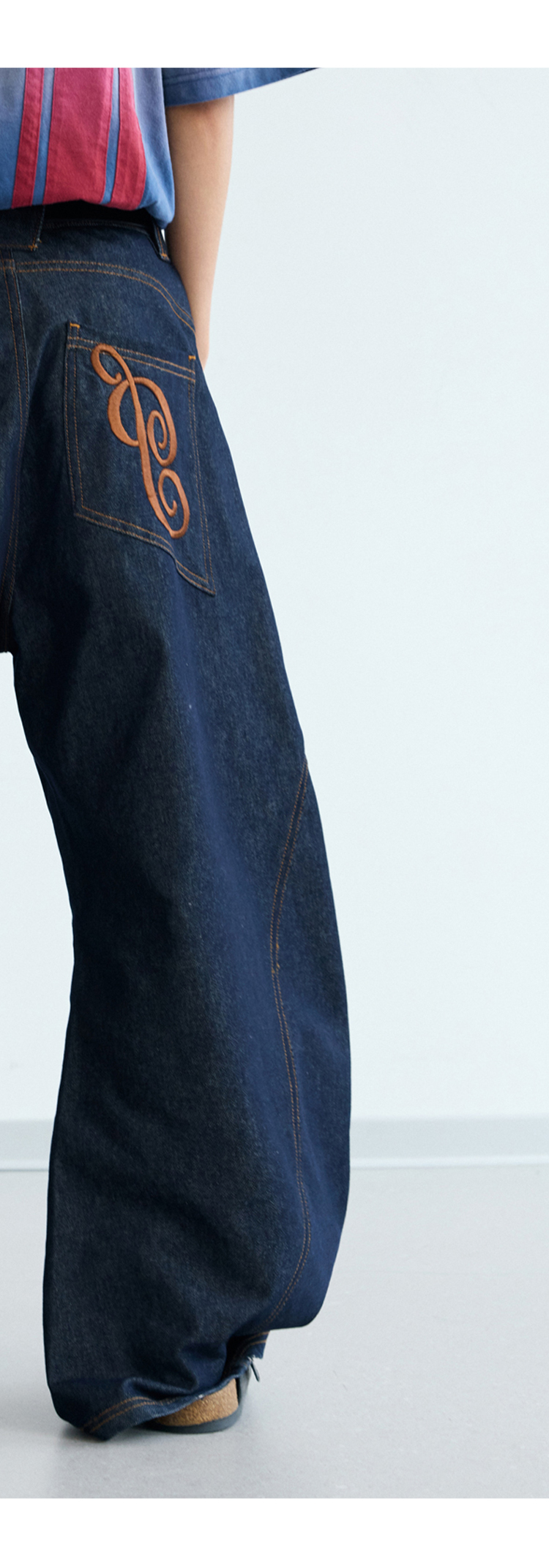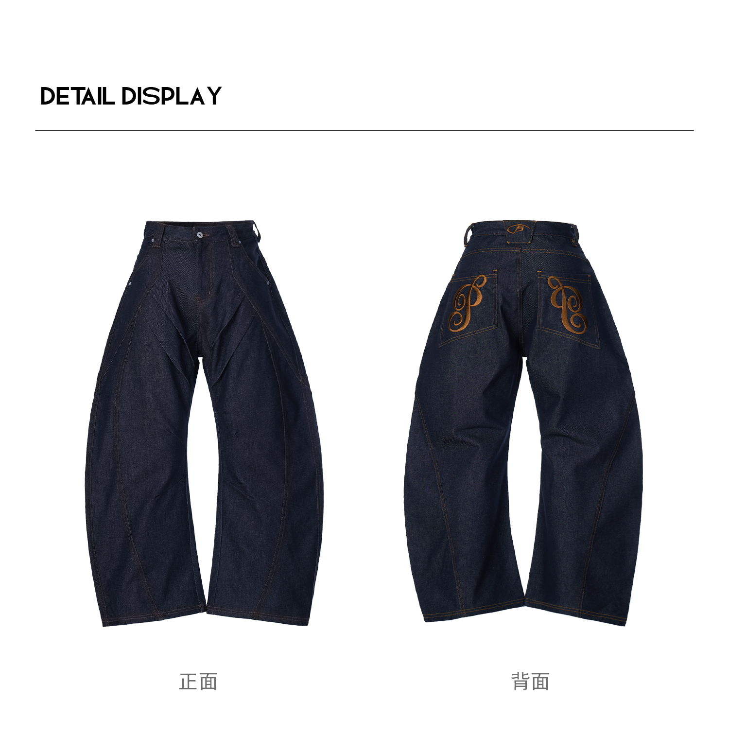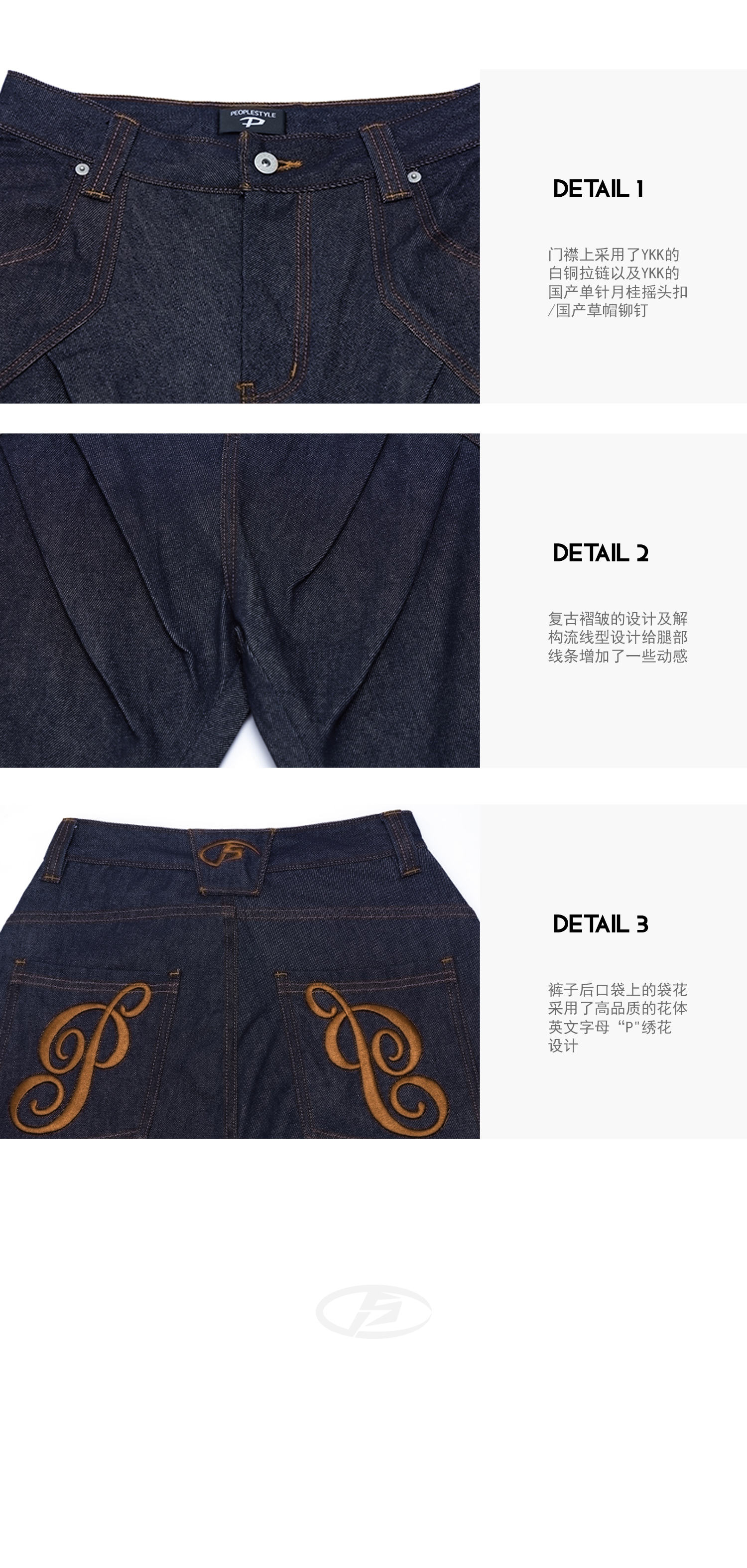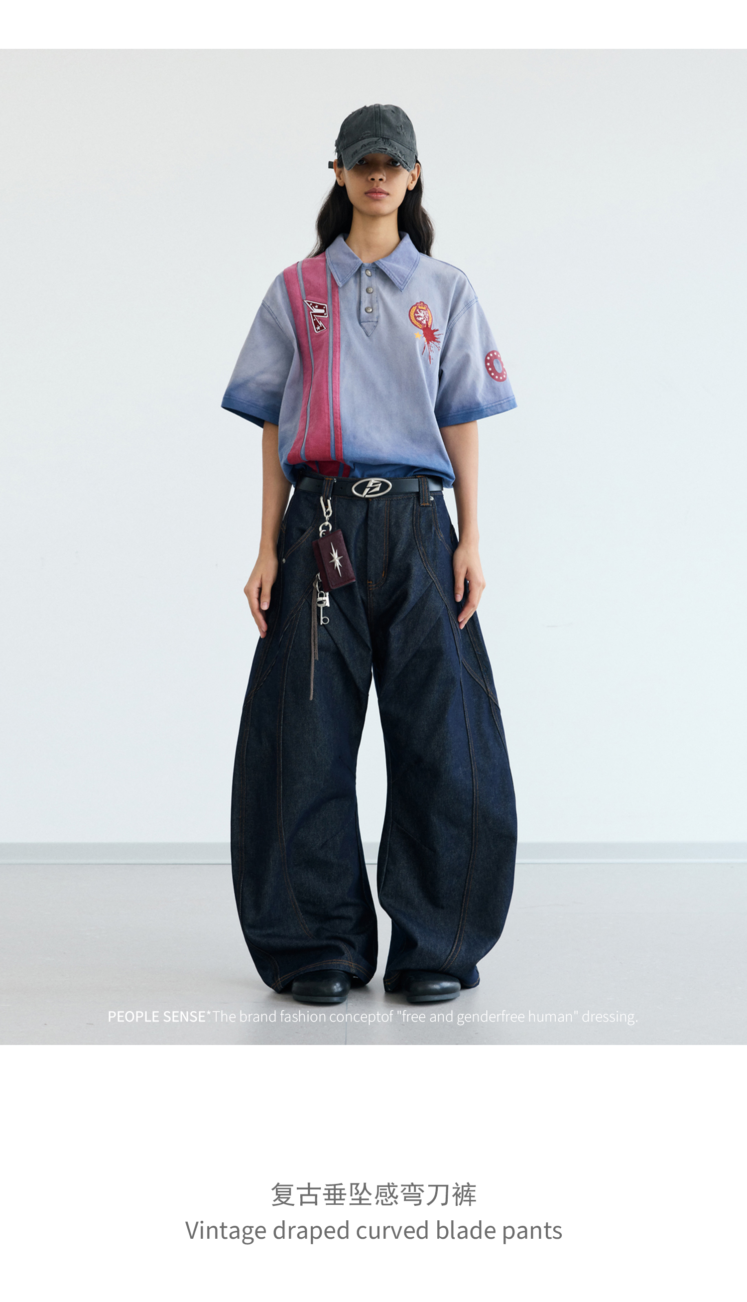 PEOPLESENSE original cow denim deconstruction open line wide-leg jeans retro pendant baggy scimitar pants