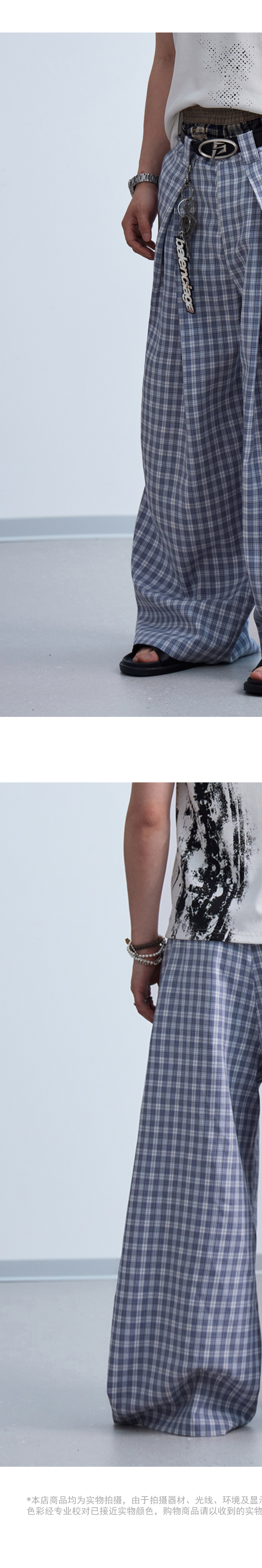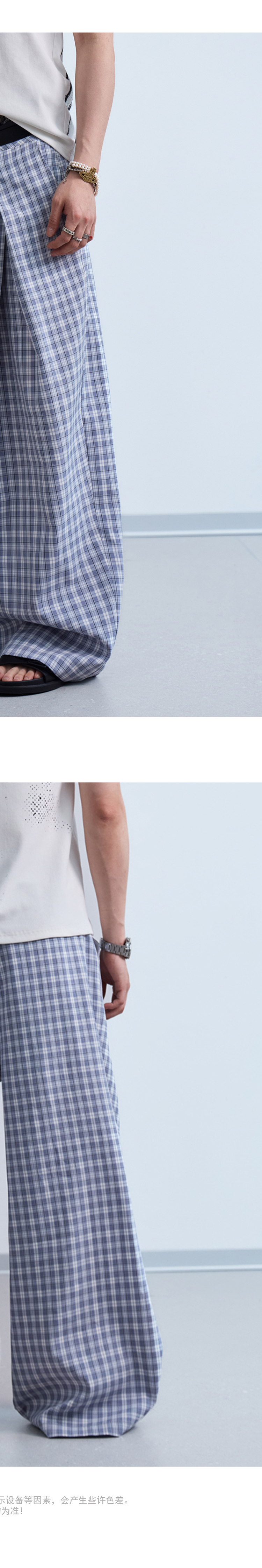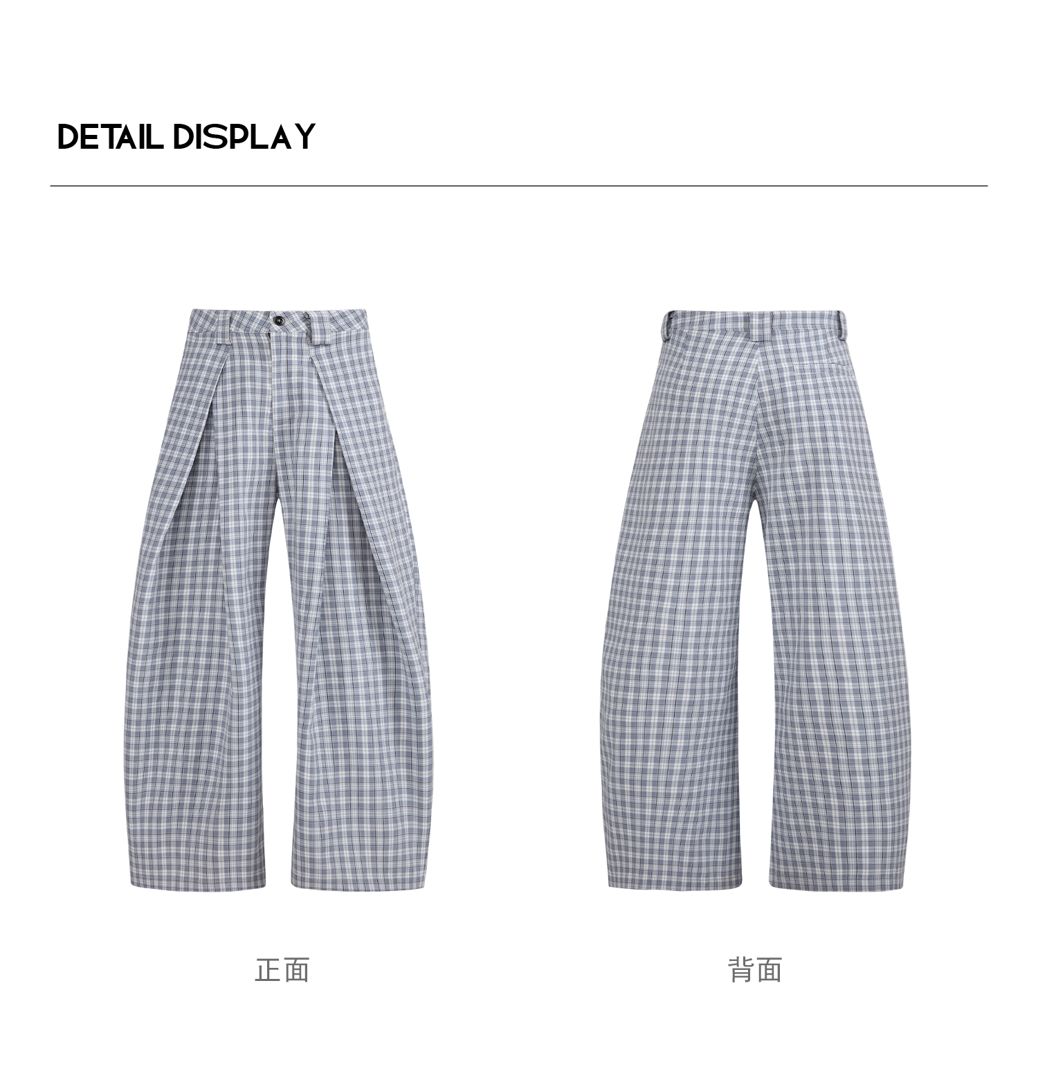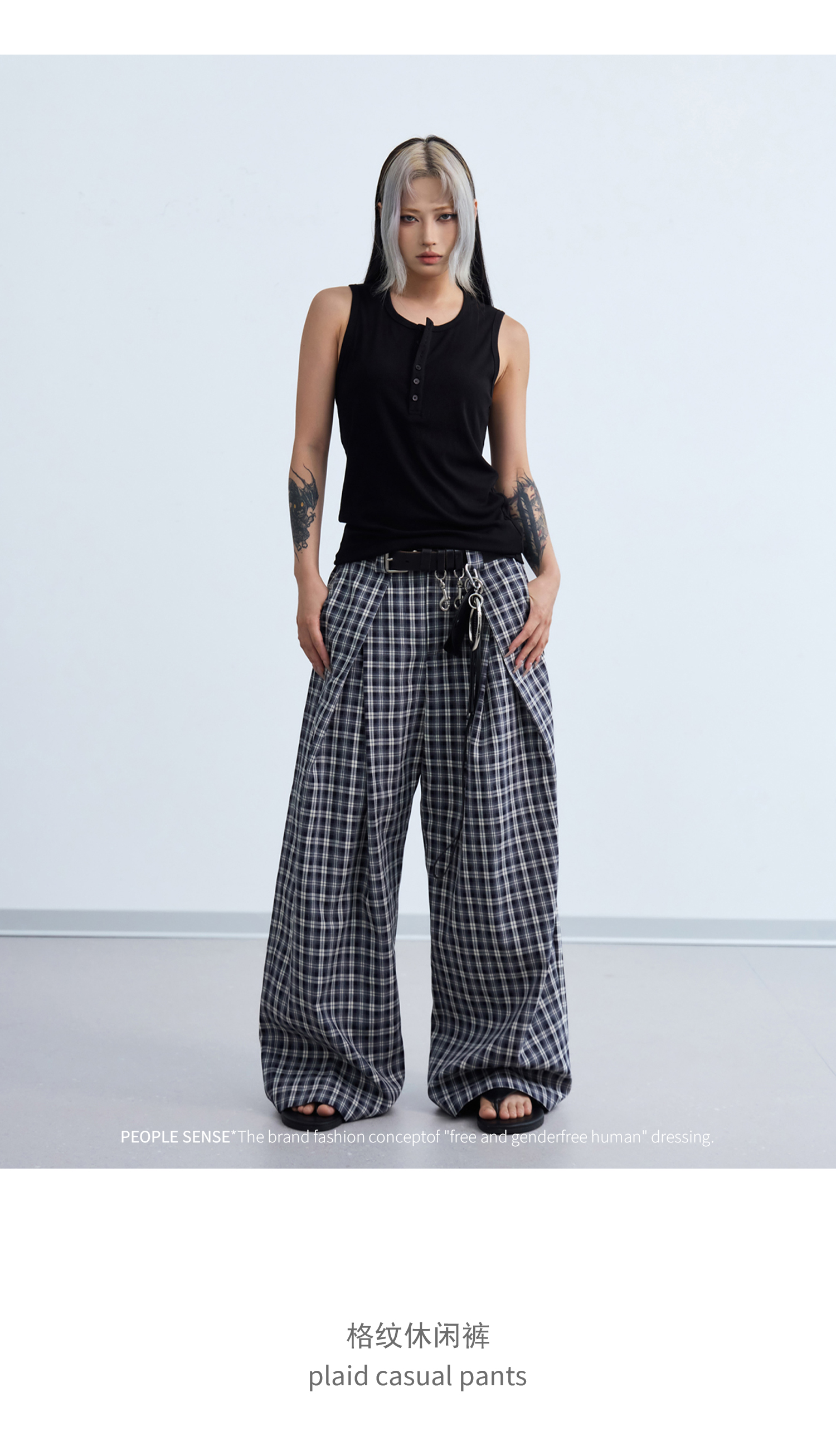 PEOPLESENSE Simple Pleated Three-dimensional Plaid Wide-leg Slacks