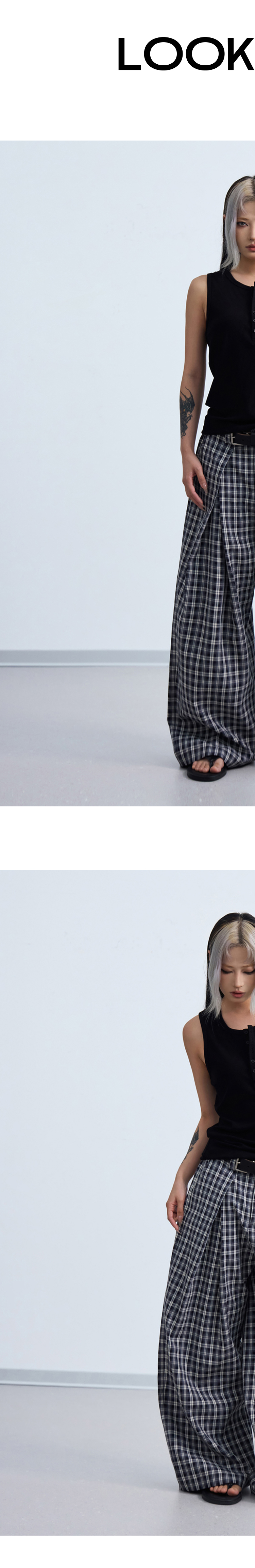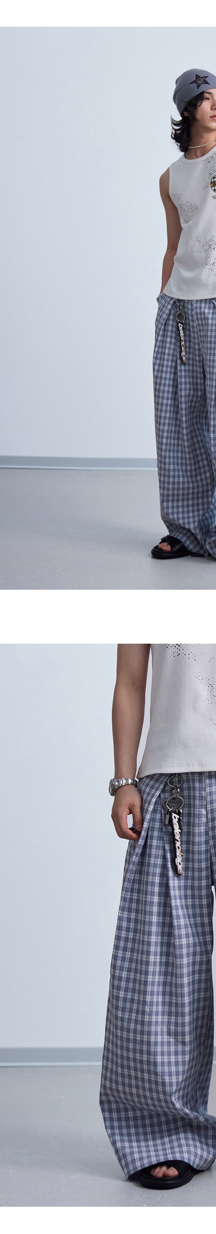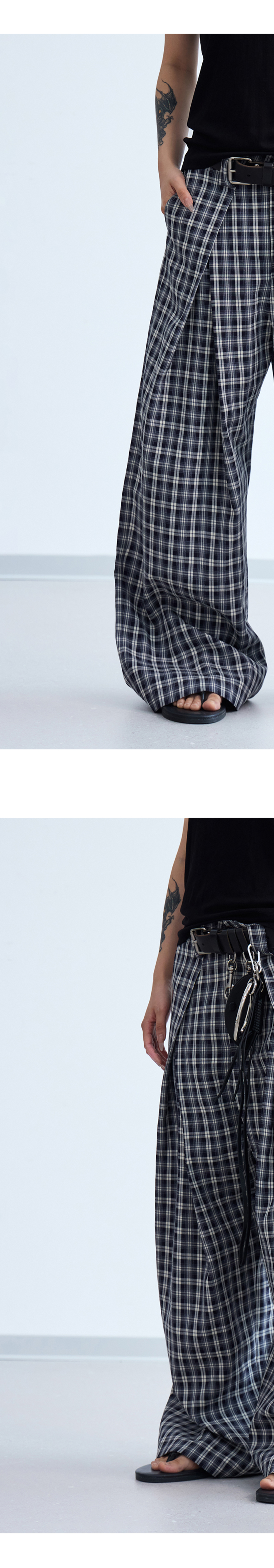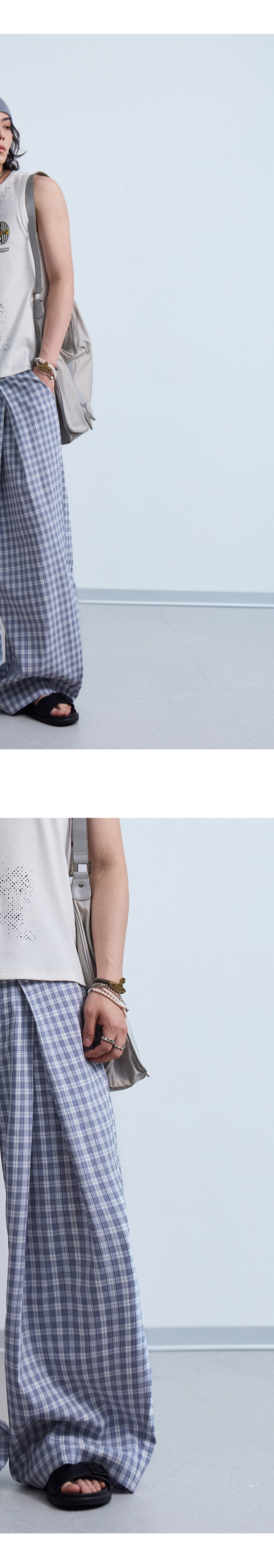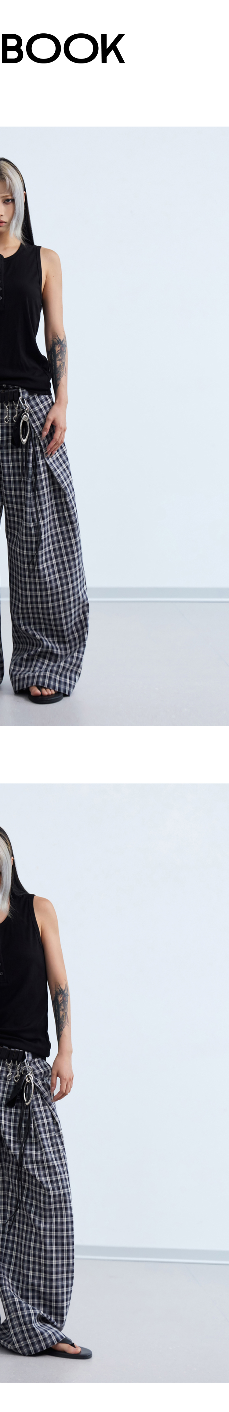 PEOPLESENSE Simple Pleated Three-dimensional Plaid Wide-leg Slacks