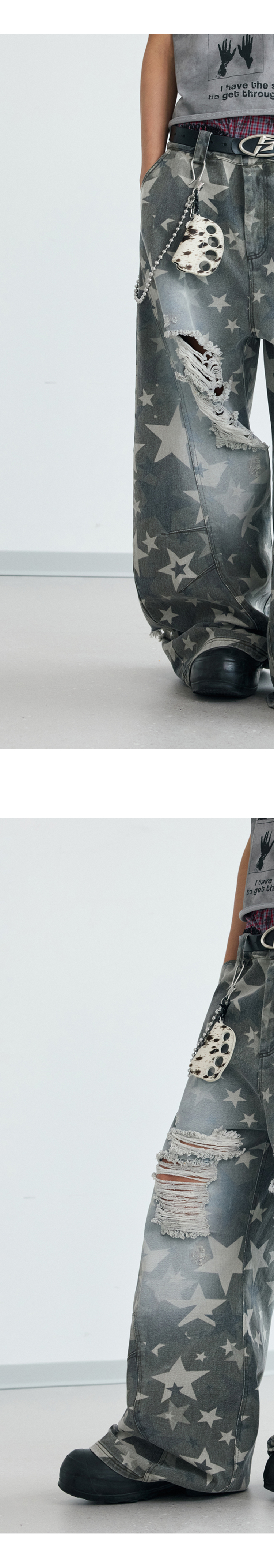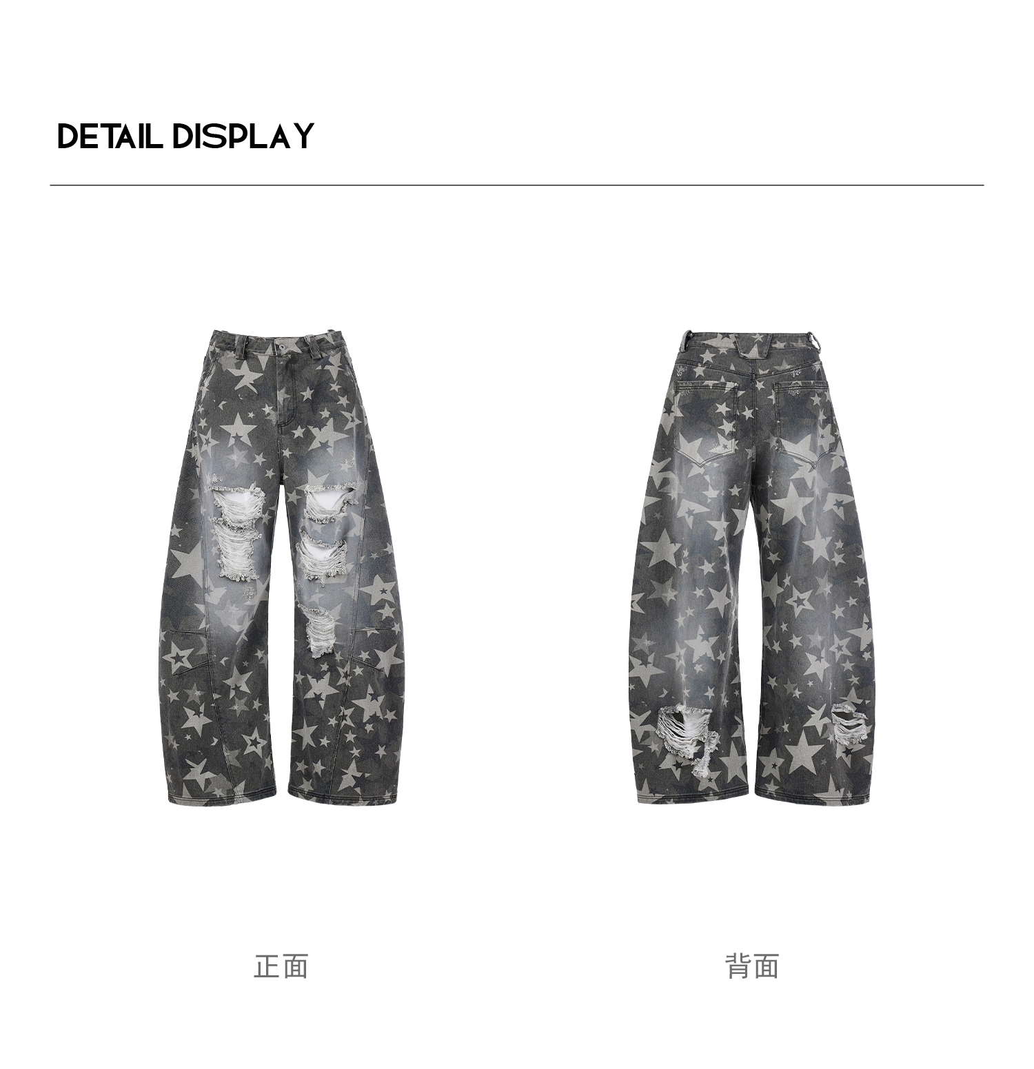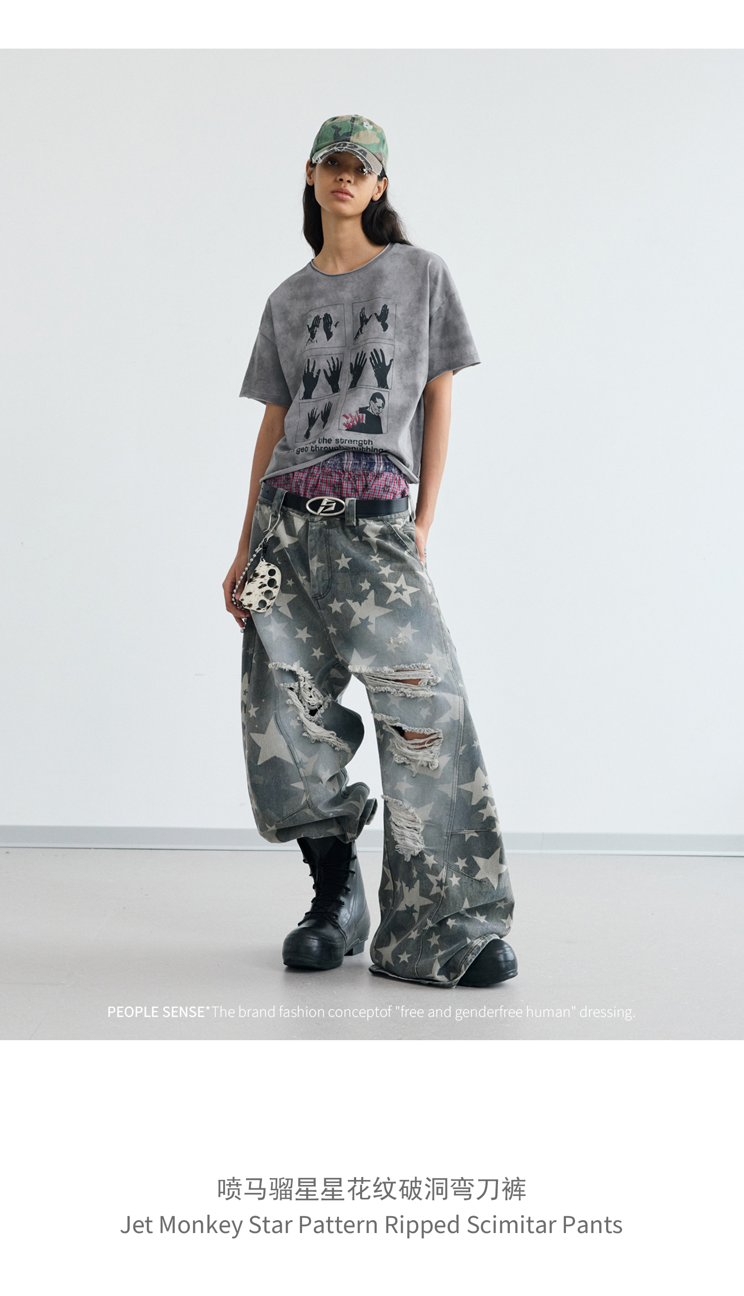 PEOPLESENSE Spray Horse Liu Star Pattern Old Ripped Scimitar Pants