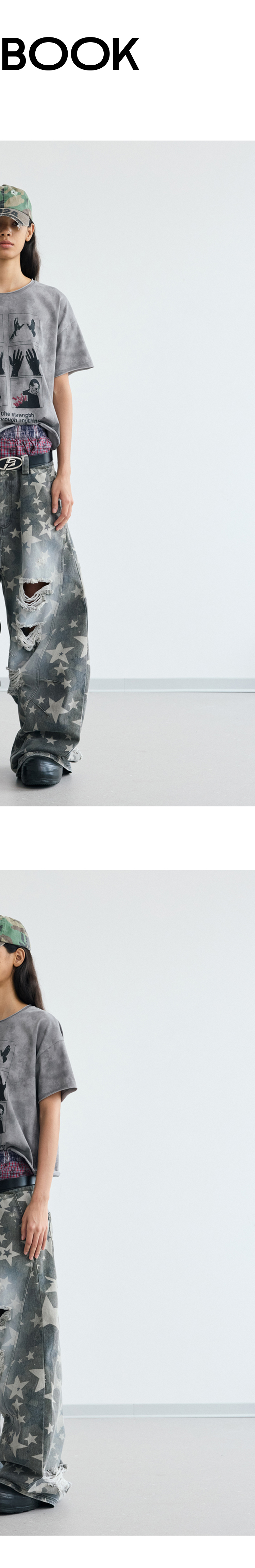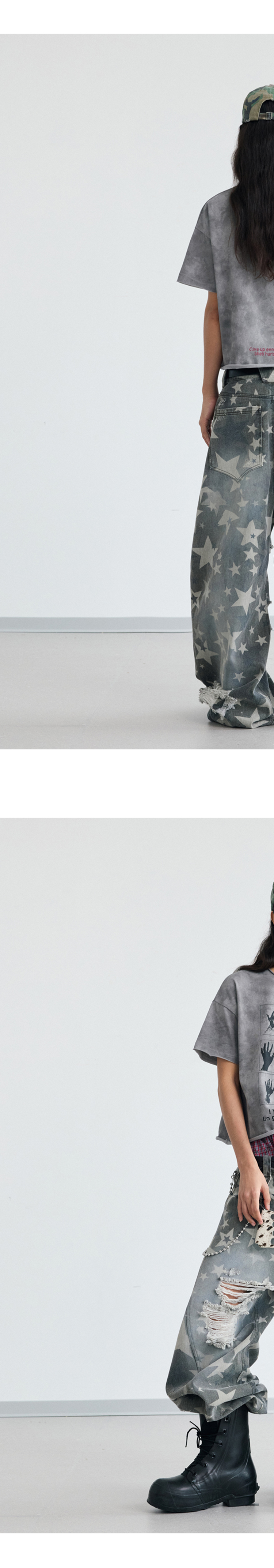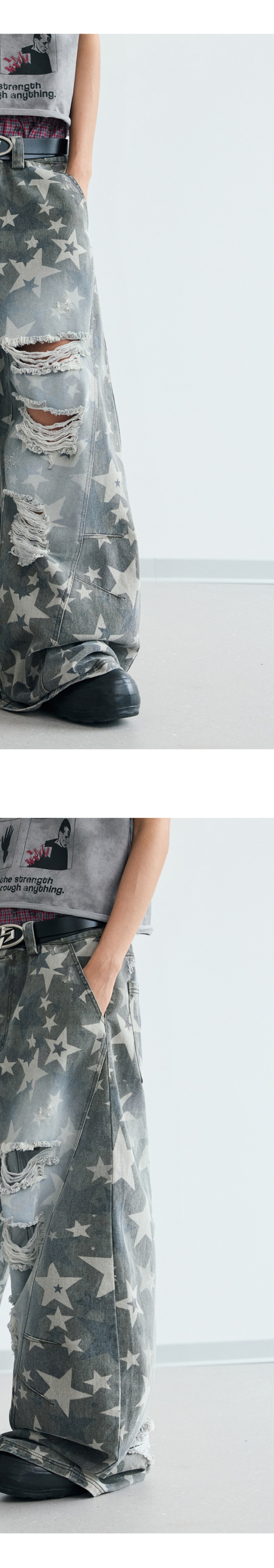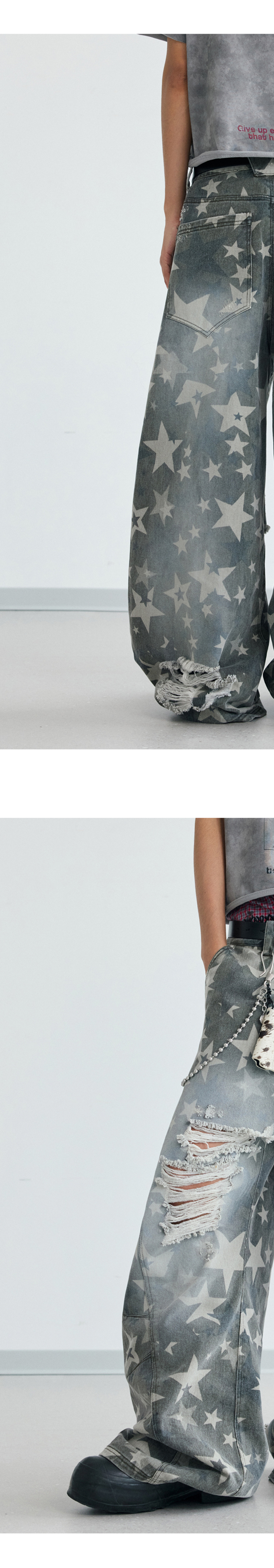 PEOPLESENSE Spray Horse Liu Star Pattern Old Ripped Scimitar Pants