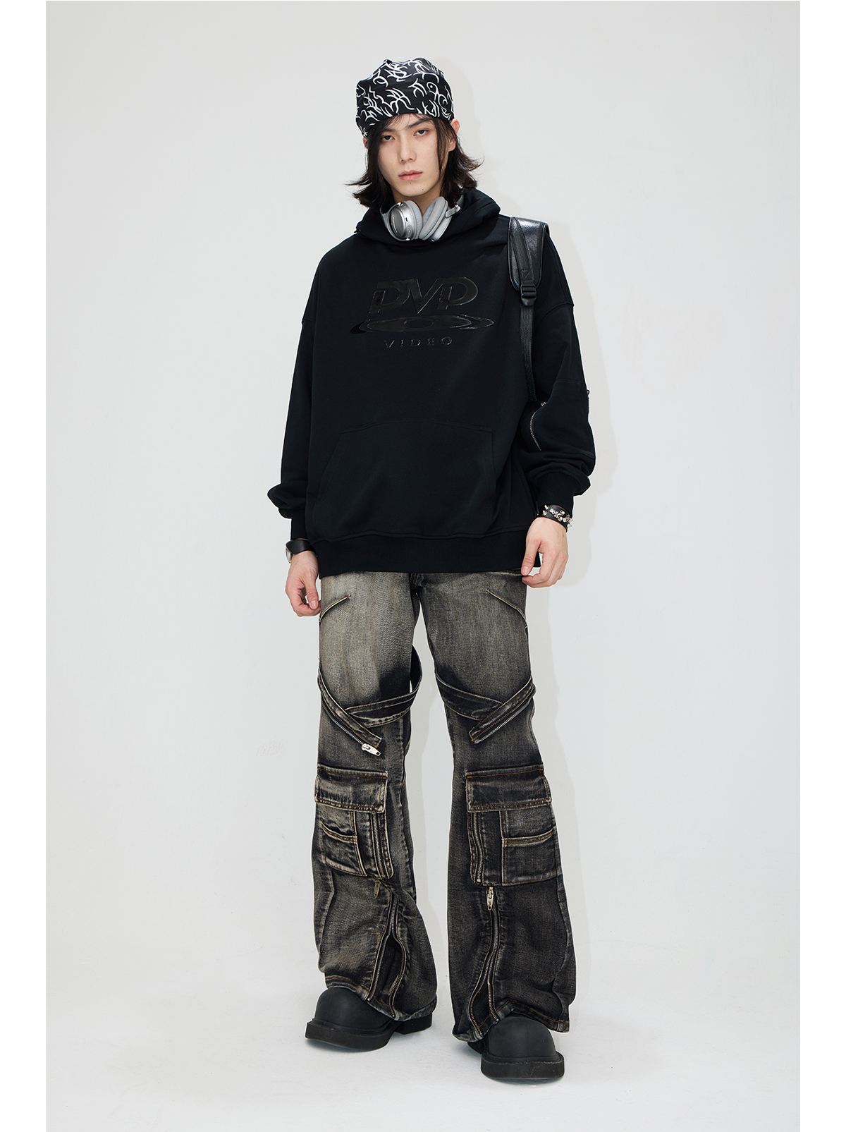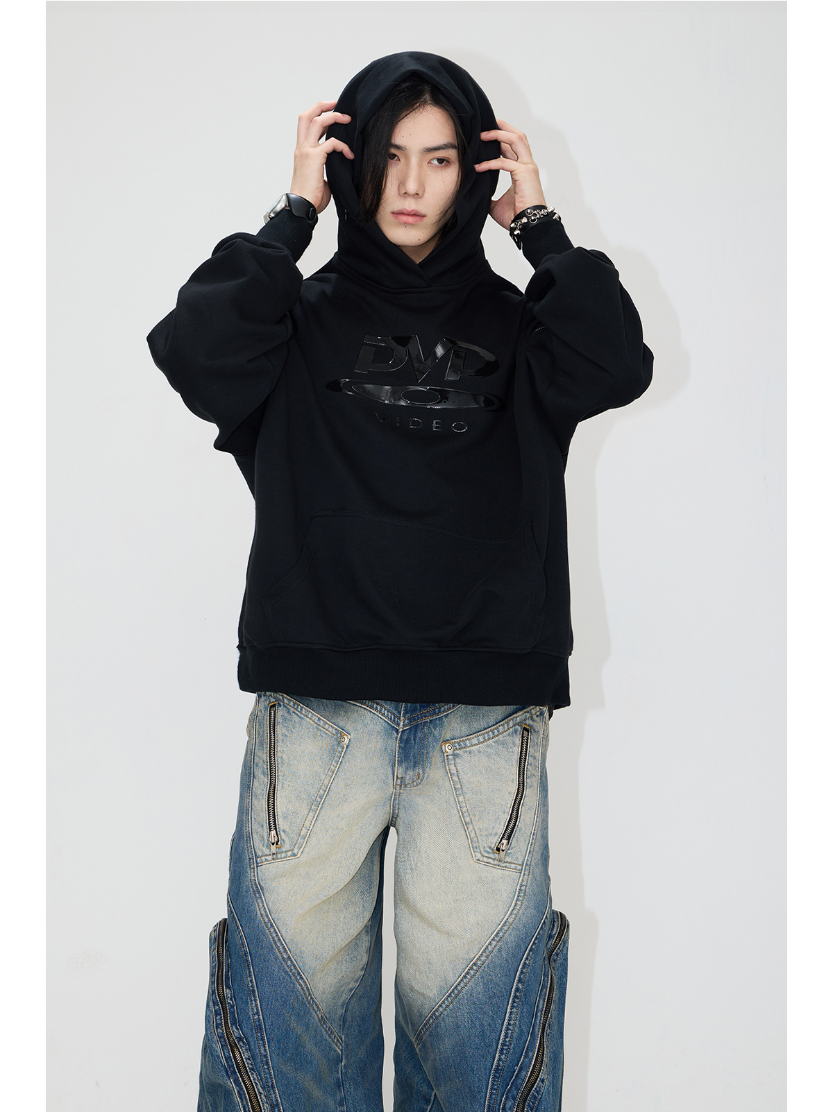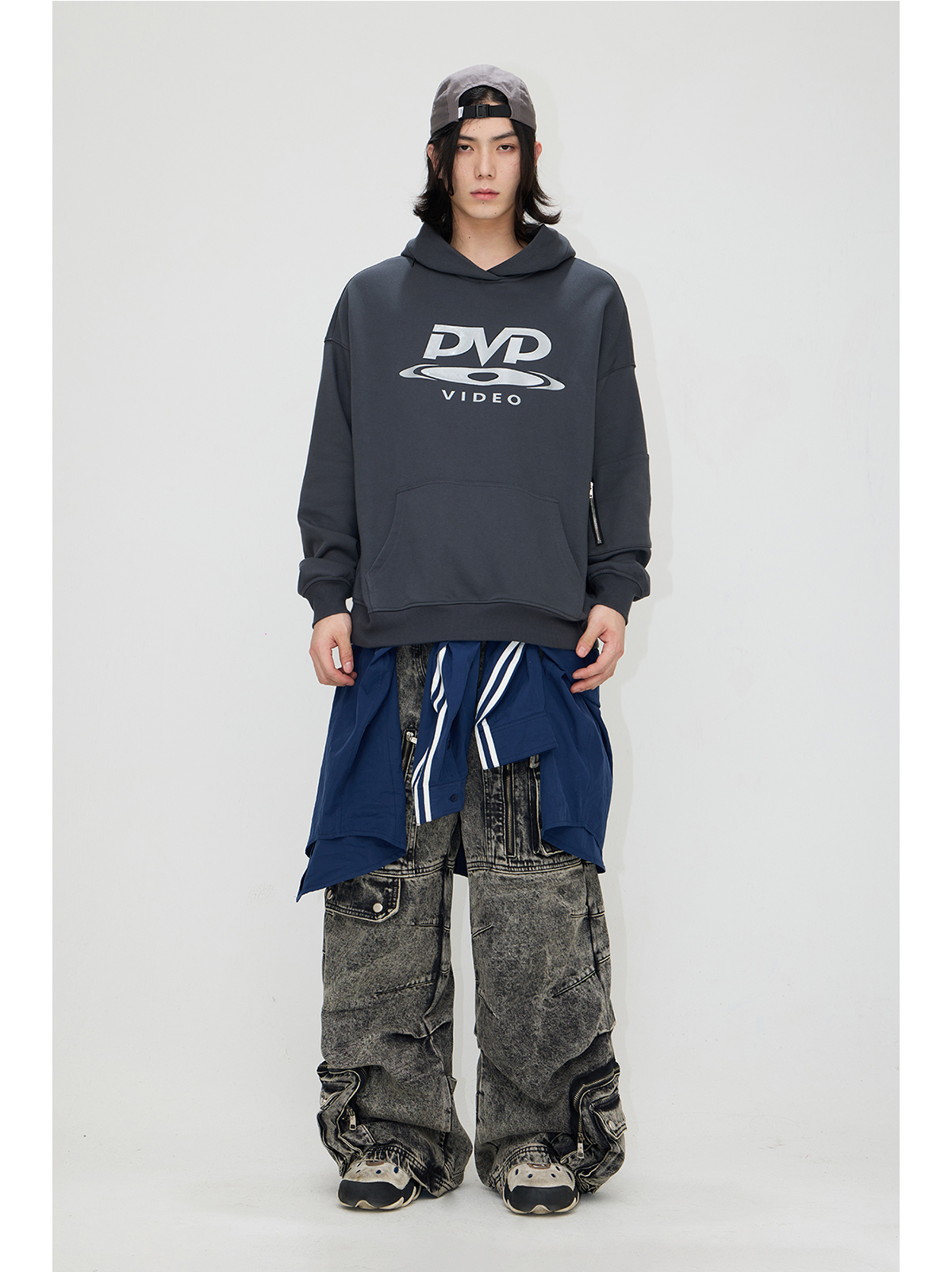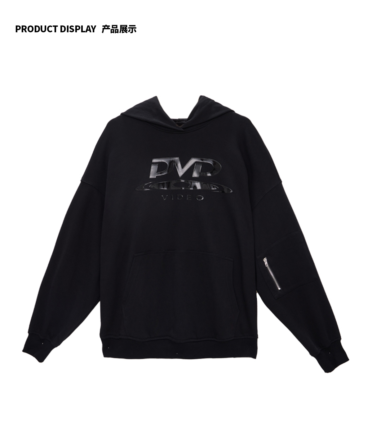 PEOPLESTYLE "DVD" Silicone Print Hidden Zipper Structure Hooded Sweater