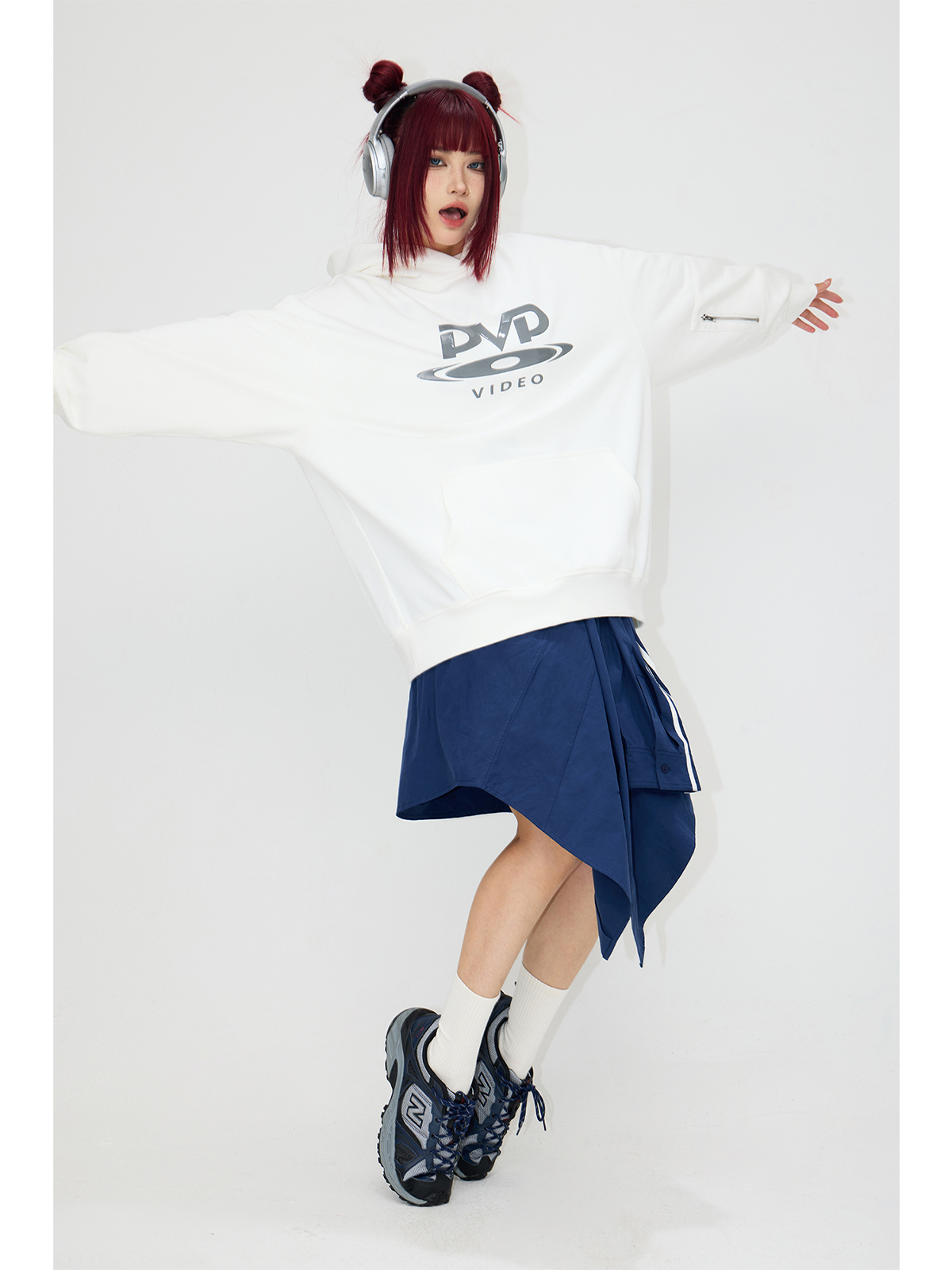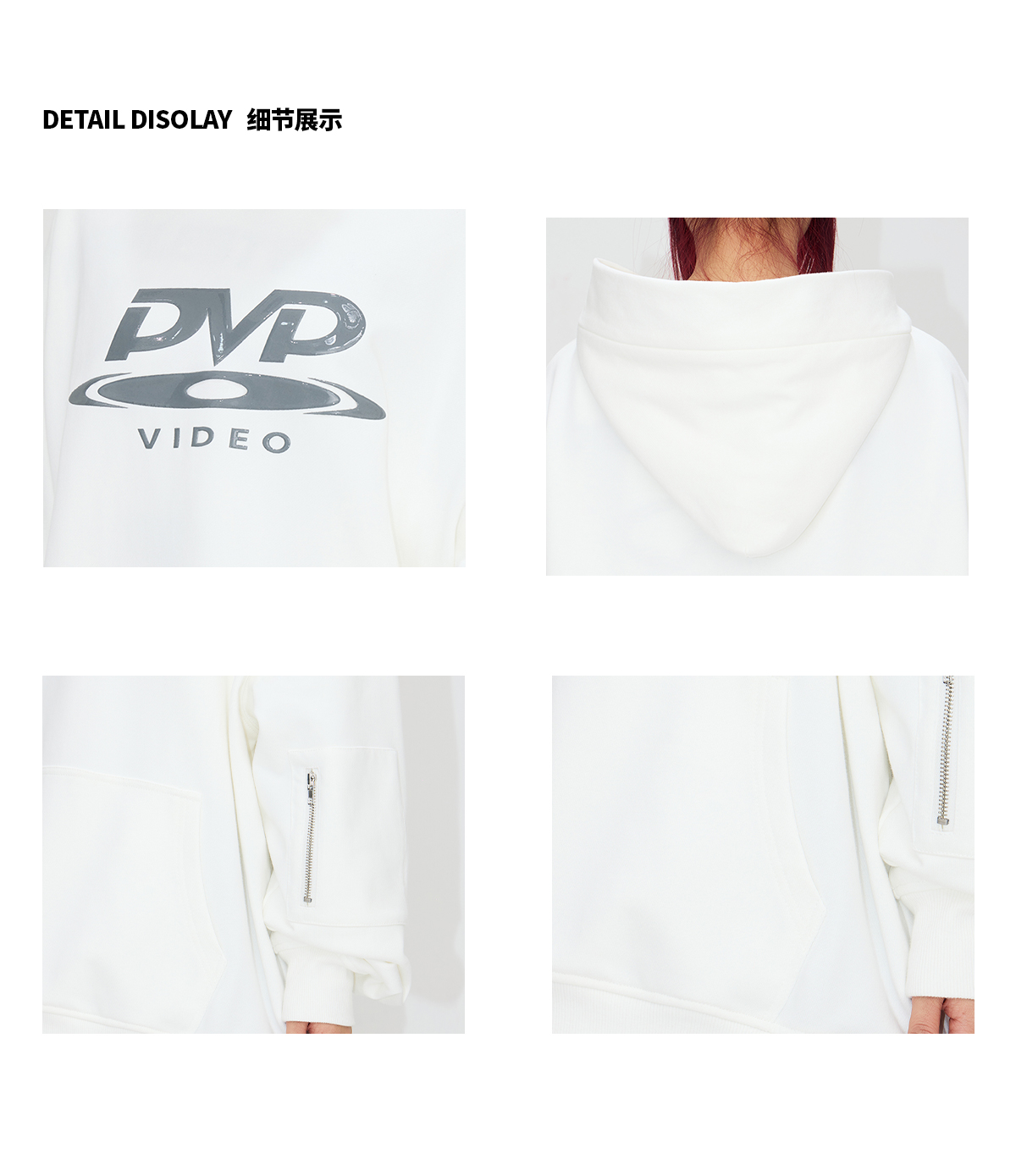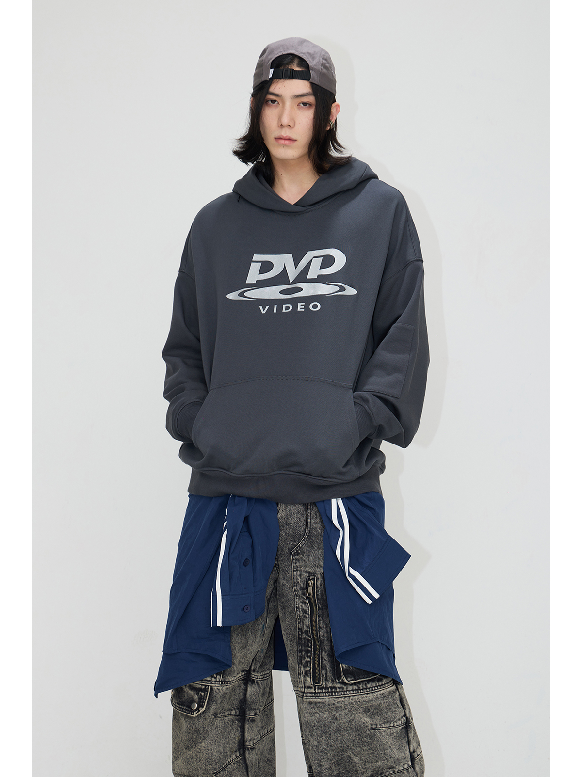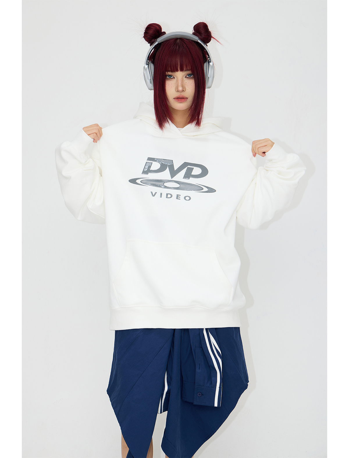 PEOPLESTYLE "DVD" Silicone Print Hidden Zipper Structure Hooded Sweater