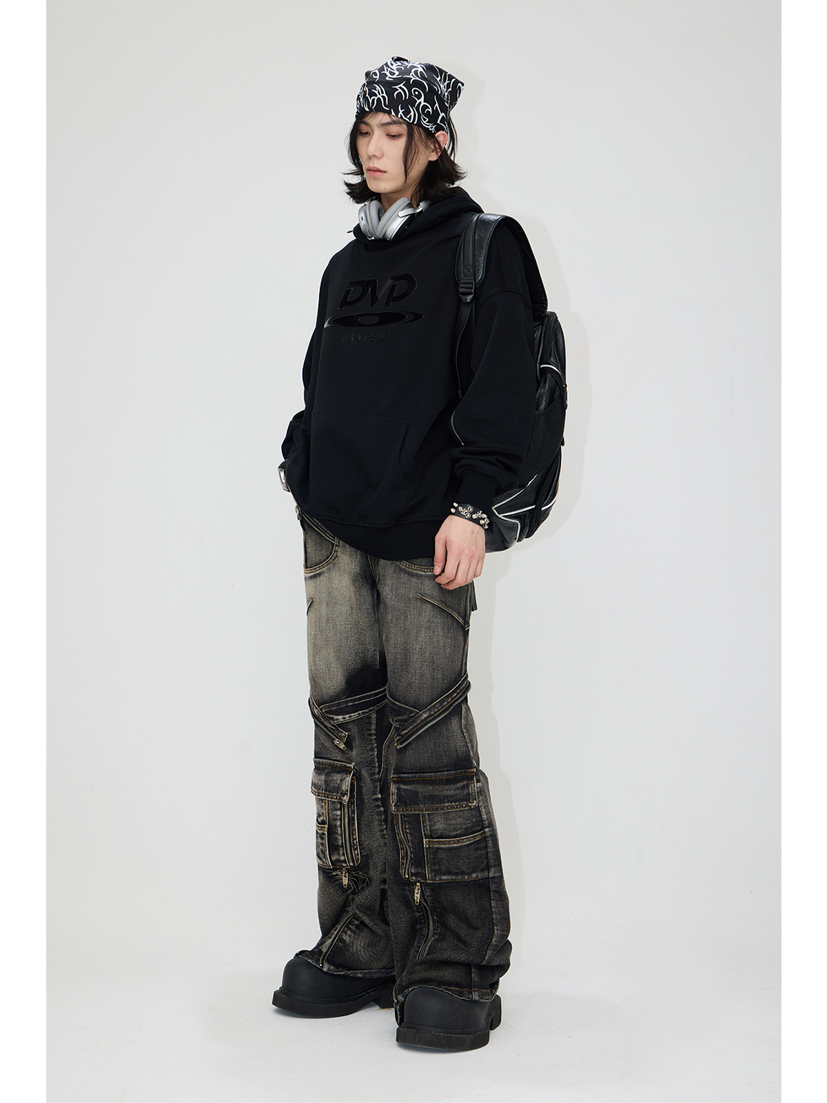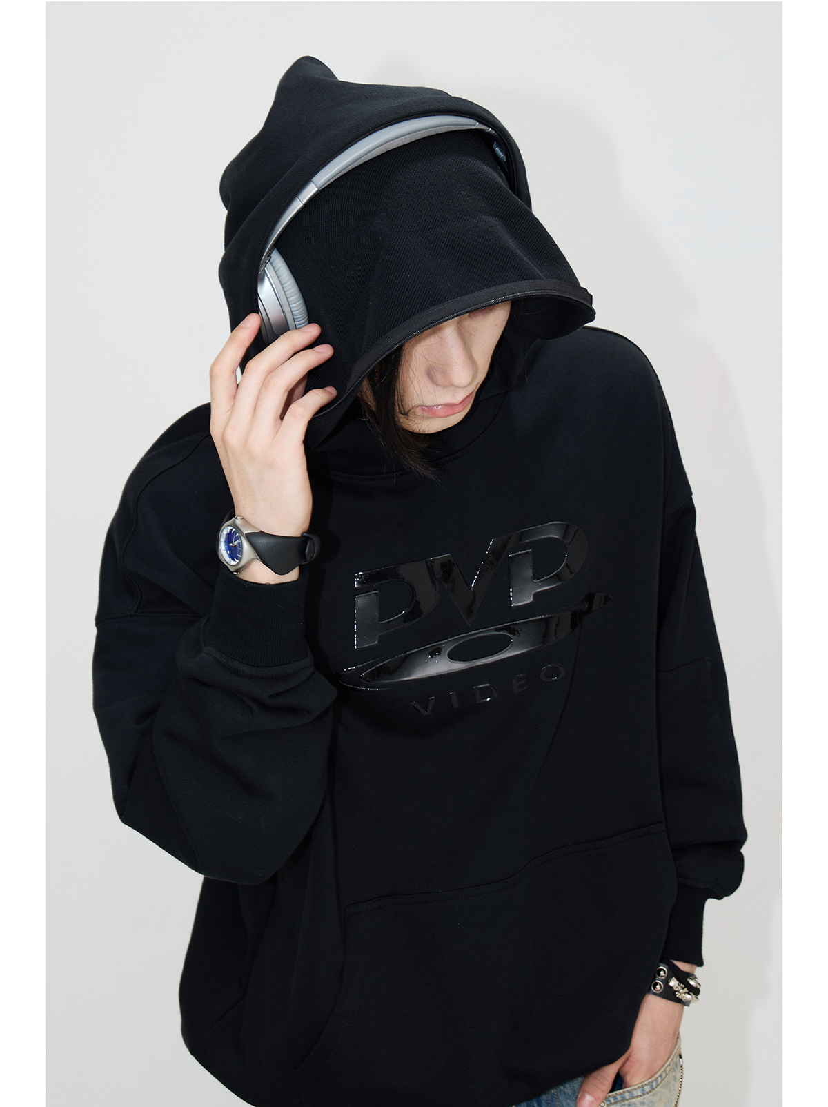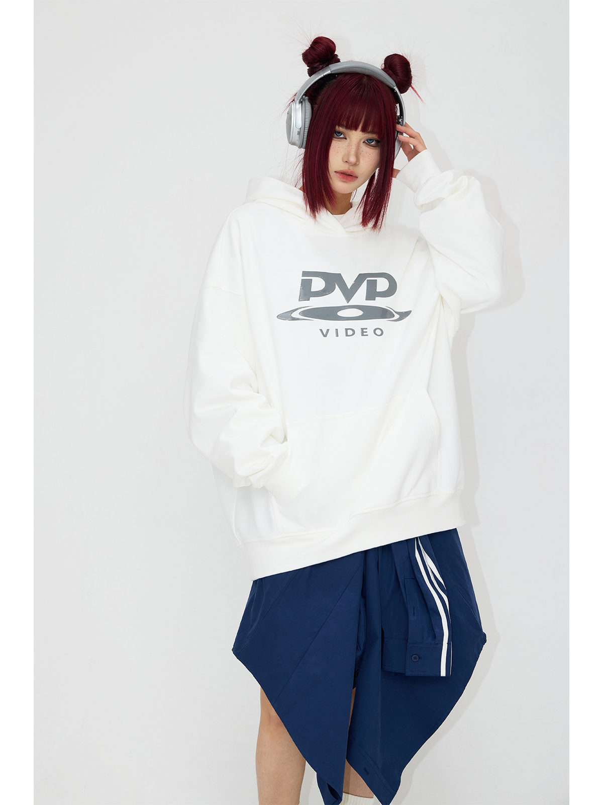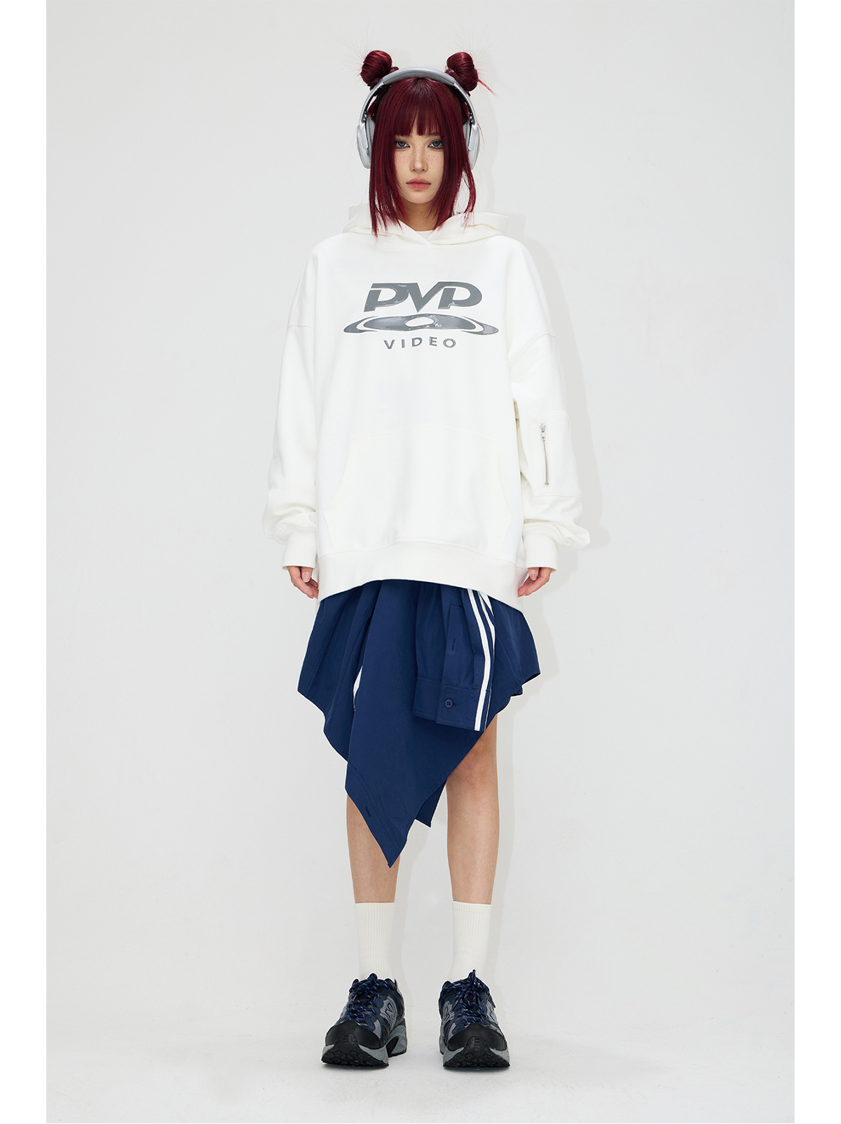 PEOPLESTYLE "DVD" Silicone Print Hidden Zipper Structure Hooded Sweater